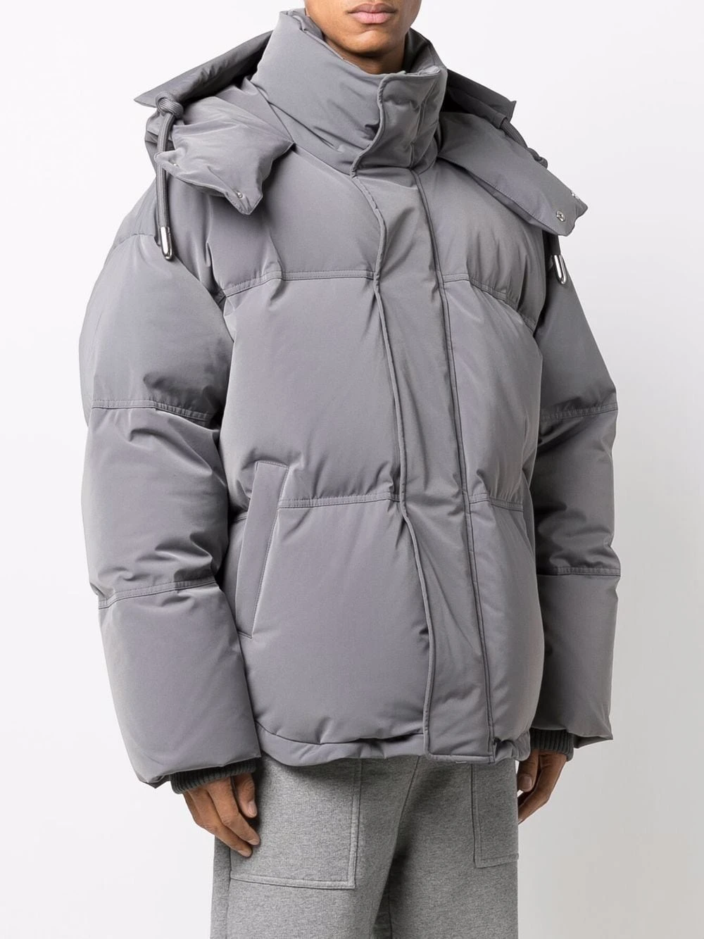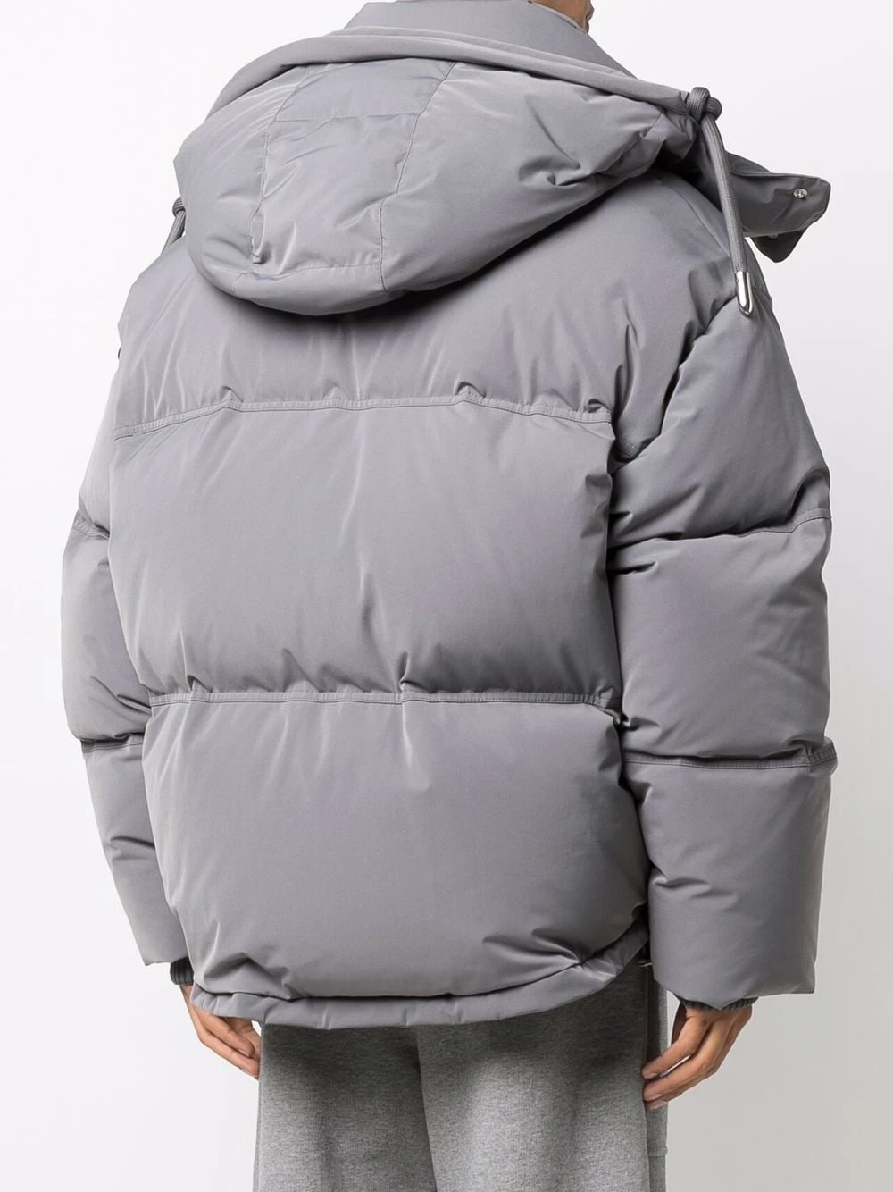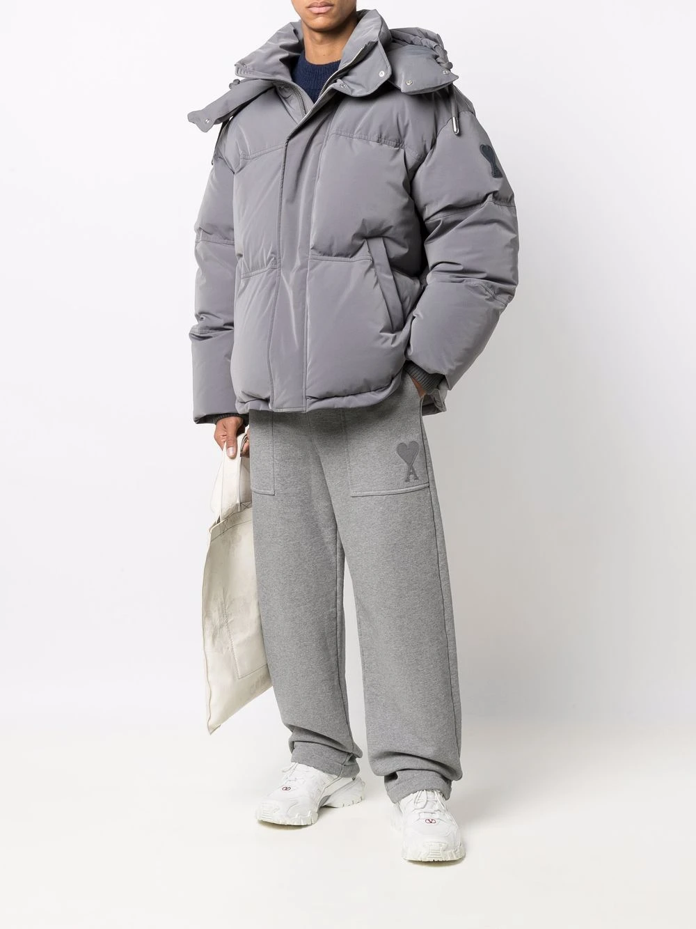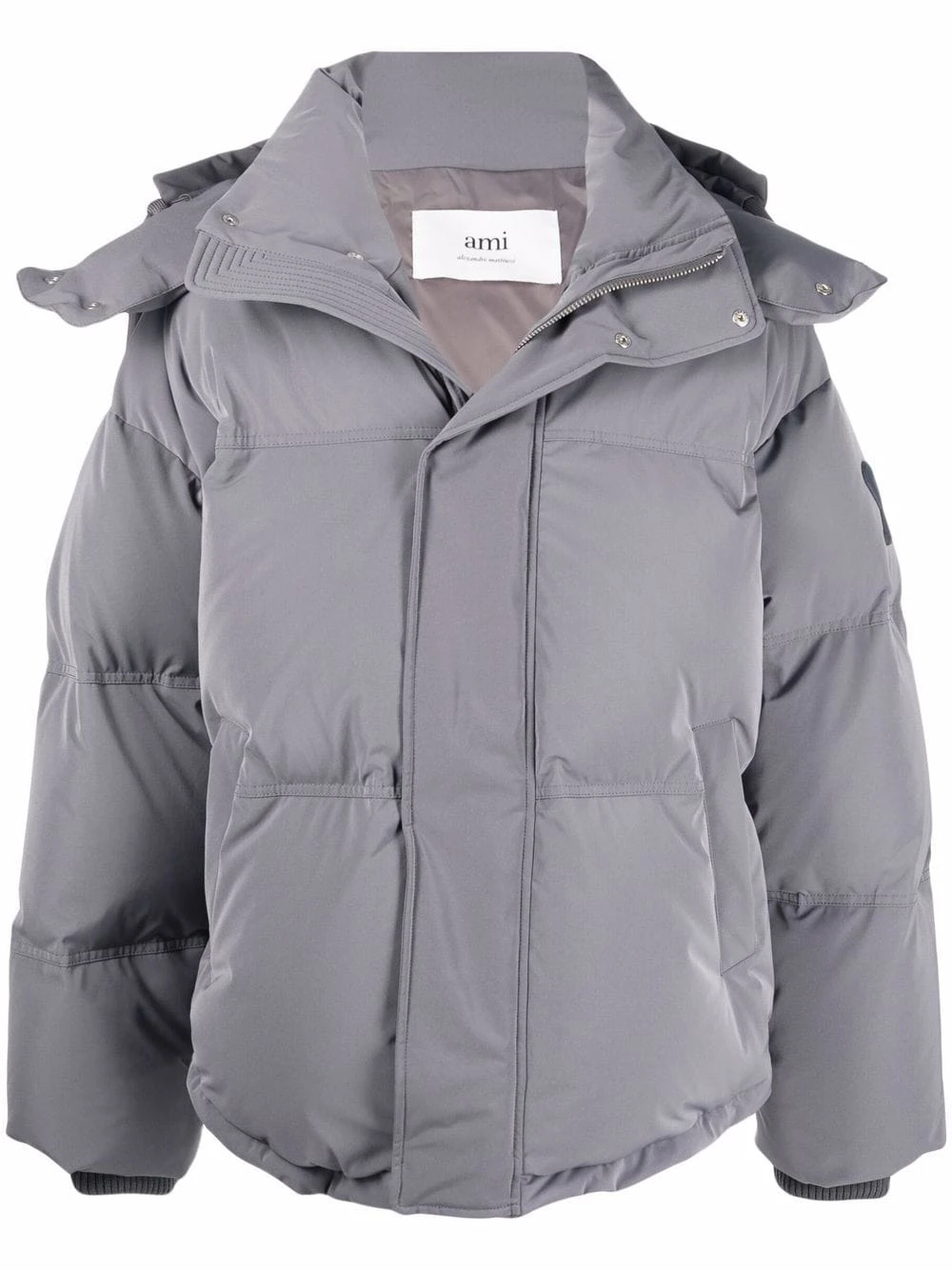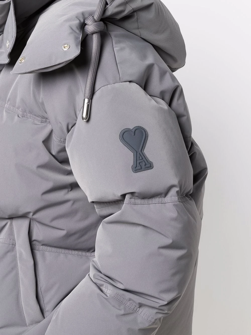 Capuche à lien de resserrage, col montant, fermeture à zip et boutons sur le devant, deux poches latérales fendues, logo Ami de Coeur signature, manches longues. Couleur : gris. Matière : duvet.