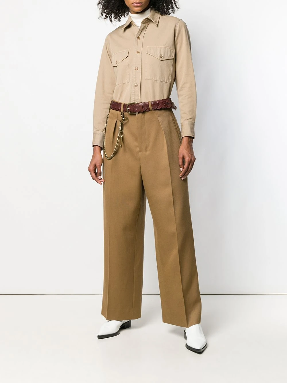 Pantalon ample classique en laine vierge AMI Alexandre Mattiussi avec fermeture devant dissimulée, passants de ceinture, détails plissés, poches latérales et poches arrière à rabat.