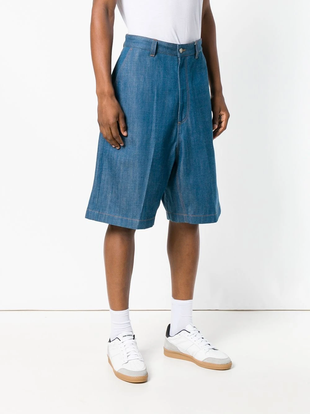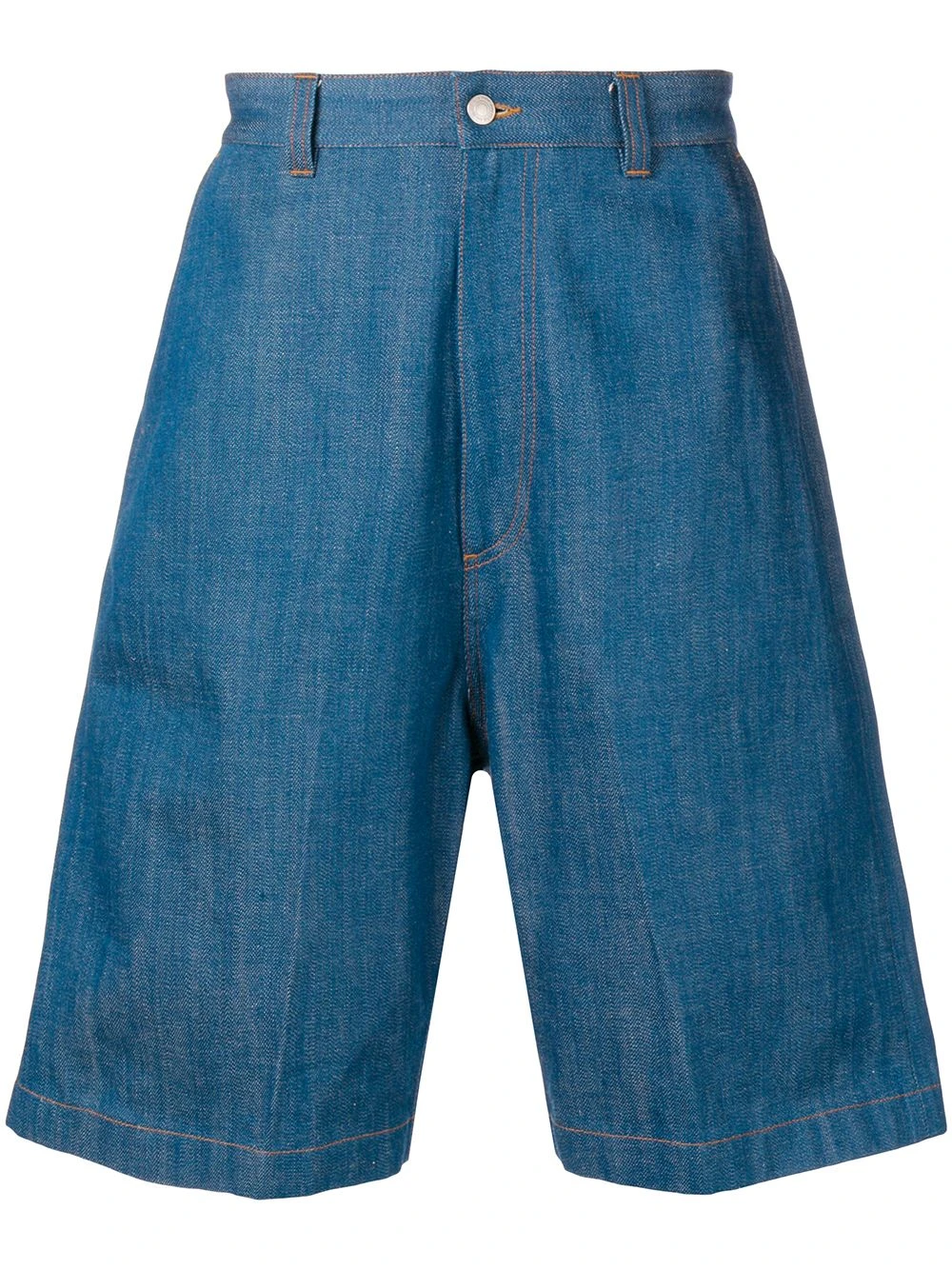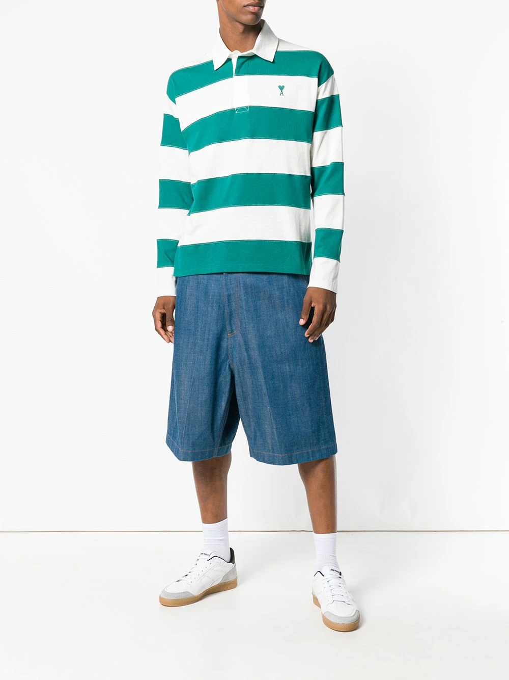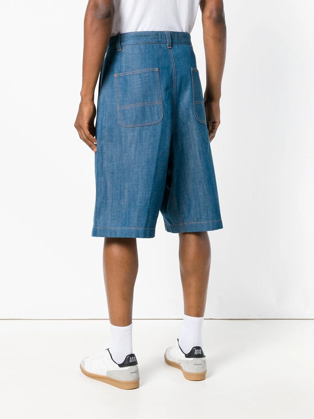 Bermuda large en coton Ami Alexandre Mattiussi avec taille normale, passants de ceinture à la taille, bouton et zip, aspect souple, coupe droite, poches latérales et poches arrière.