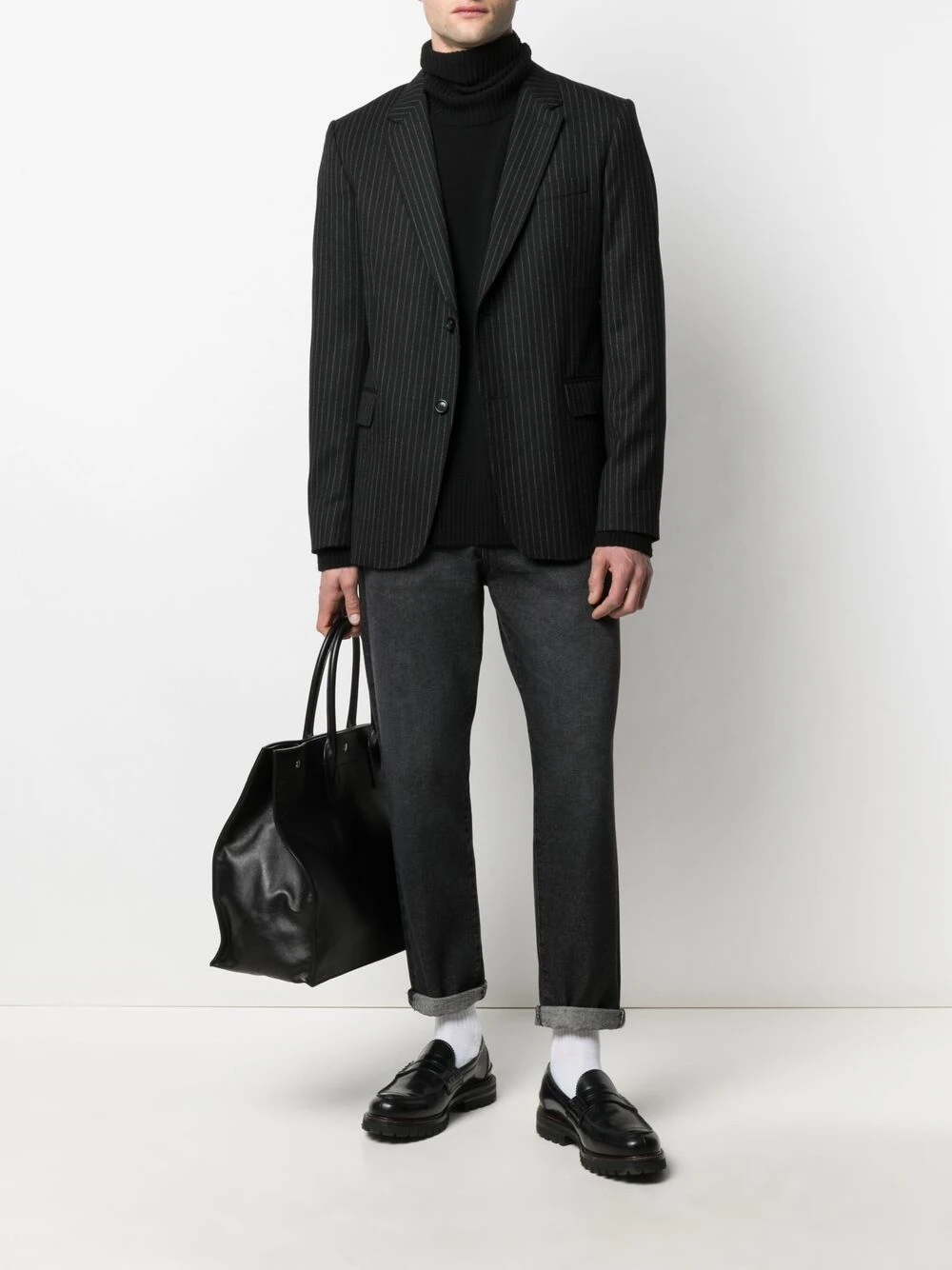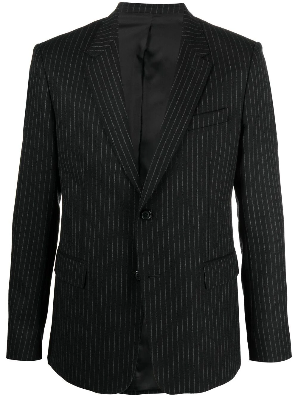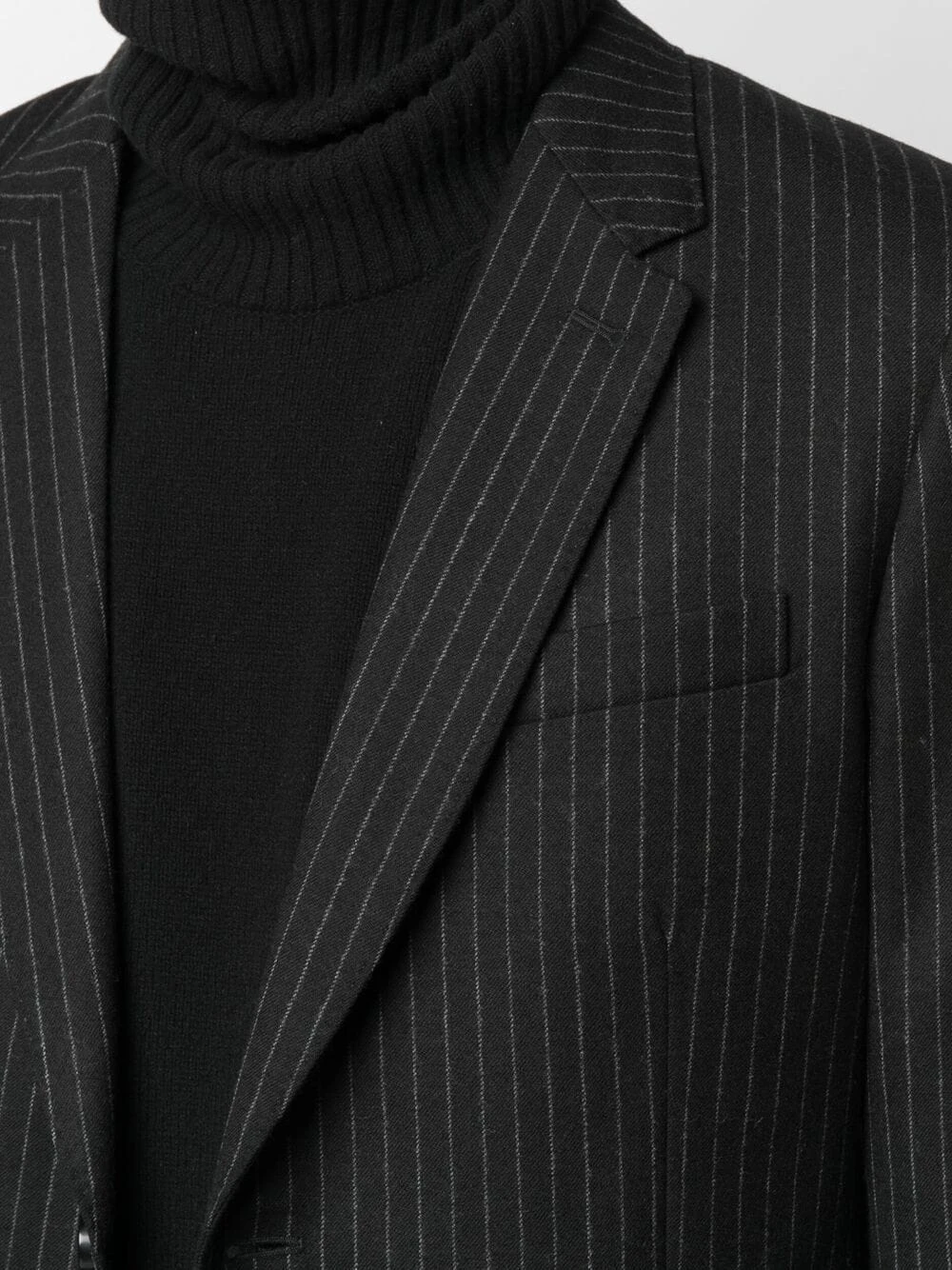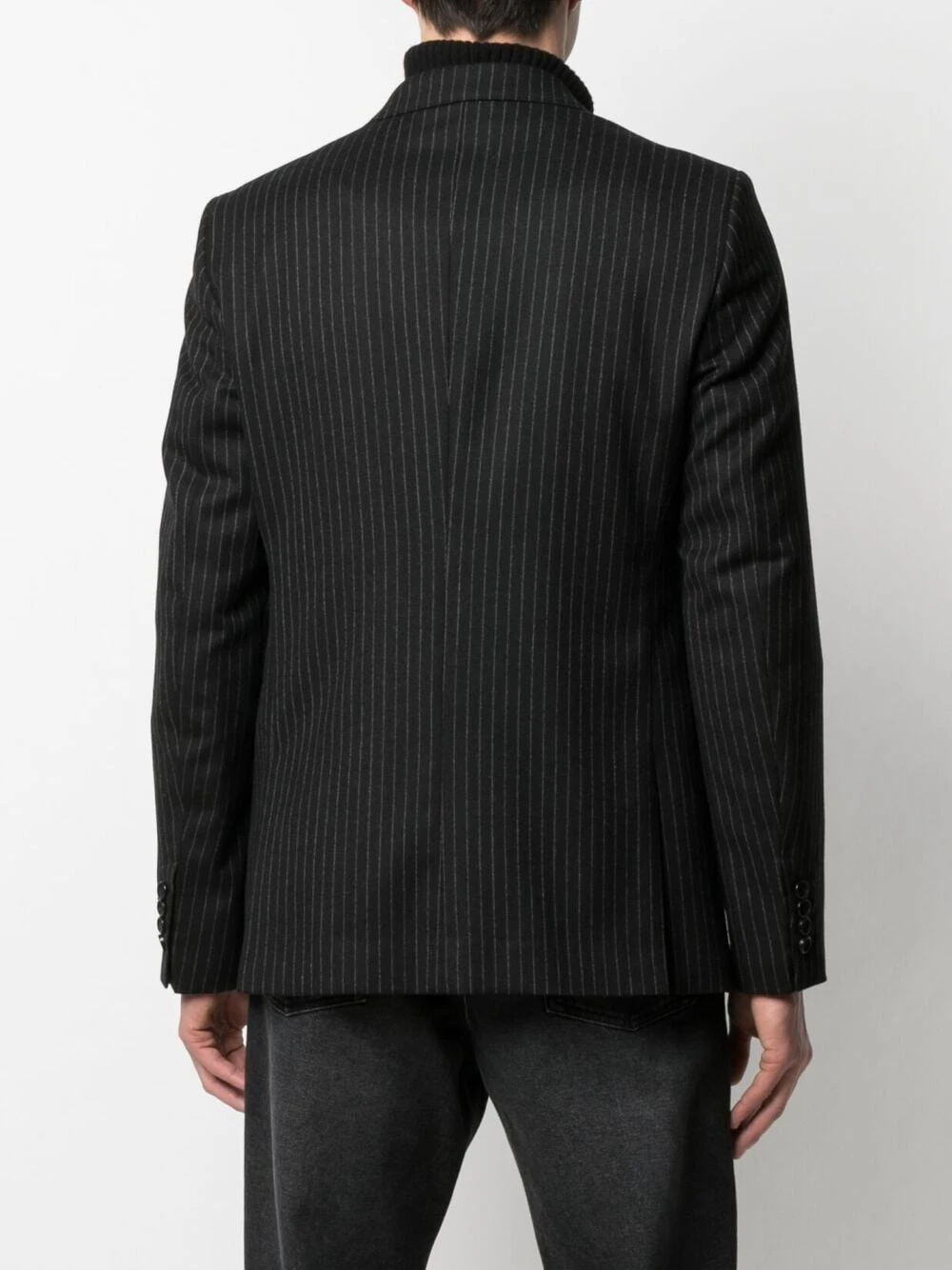 Rayures verticales, revers crantés, boutonnière sur le devant, manches longues, doublure intégrale, double fente arrière. Couleur : noir. Matière : coton.