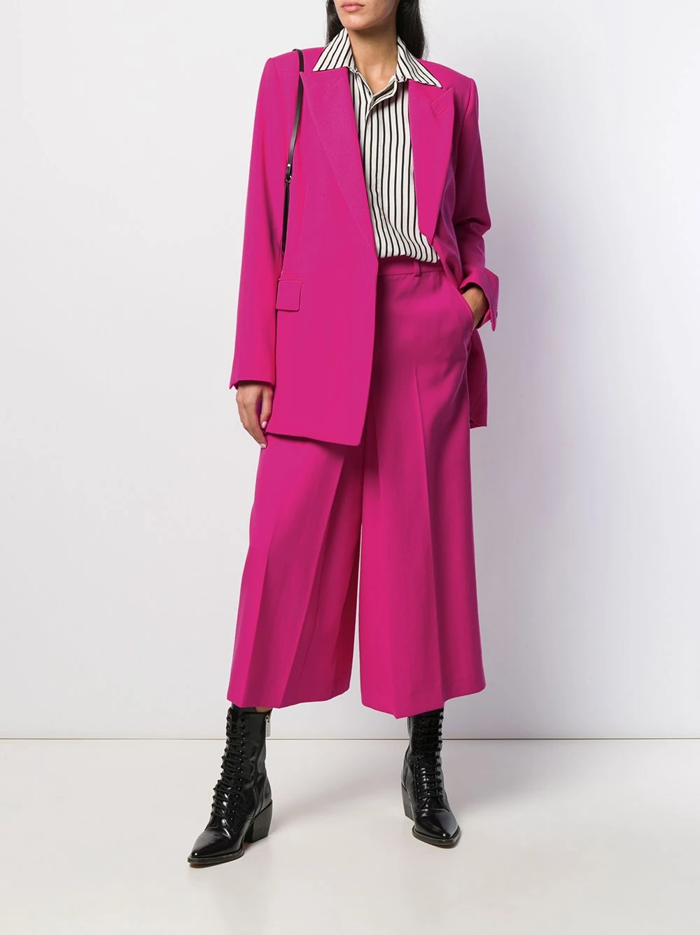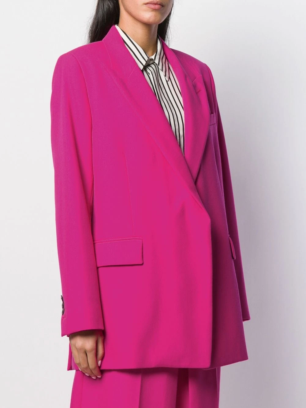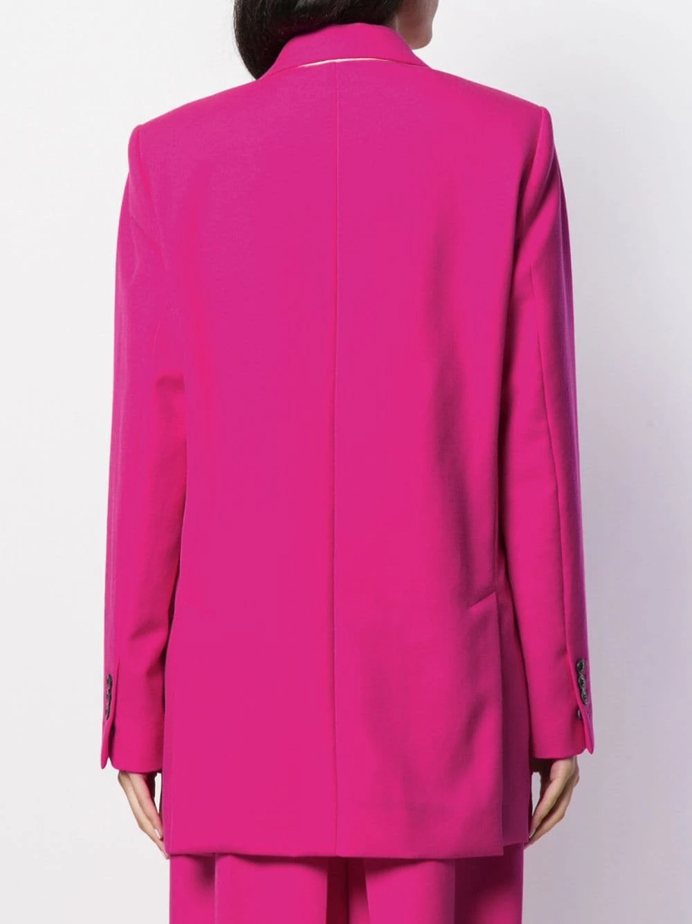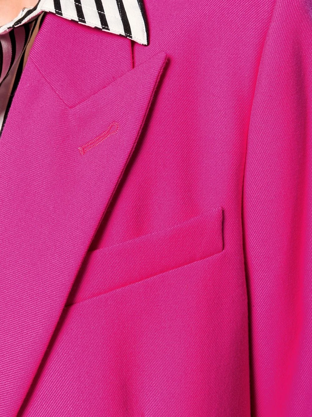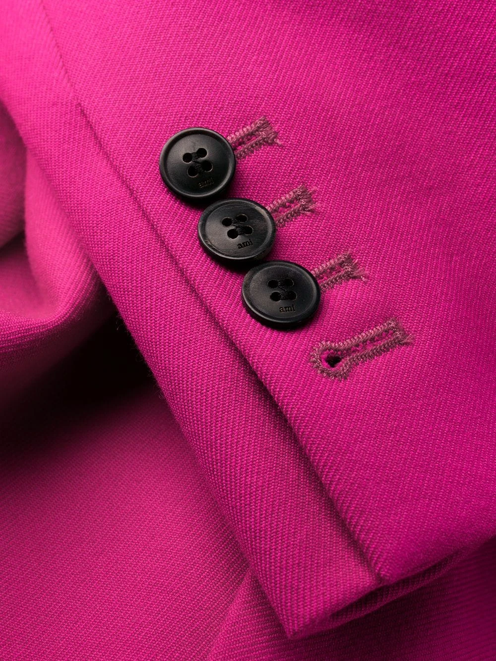 Blazer ample en laine vierge AMI Paris avec revers crantés, boutonnière sur le devant, poche poitrine, manches longues, poches devant à rabat et double fente arrière.