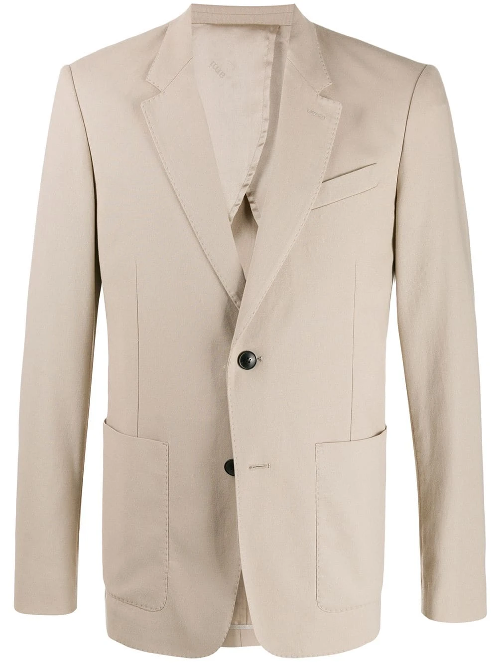 Blazer classique en coton AMI Paris avec revers crantés, boutonnière sur le devant, manches longues, poches devant et ourlet incurvé.