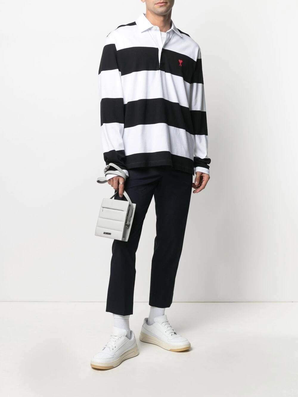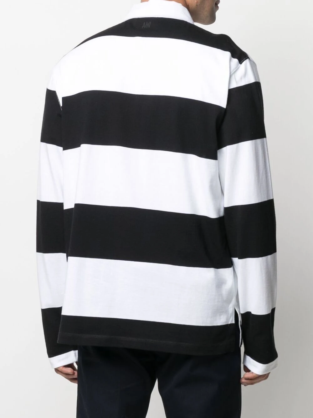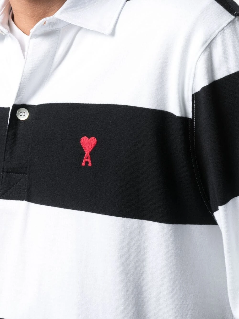 Rayures horizontales, logo brodée sur la poitrine, col classique, patte de boutonnage sur le devant, manches longues, ourlet droit.