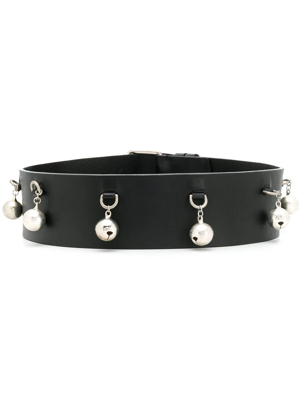 Ceinture à ornements en cuir de veau AMI Paris avec fermeture à boucle et taille ajustable. Couleur : noir.