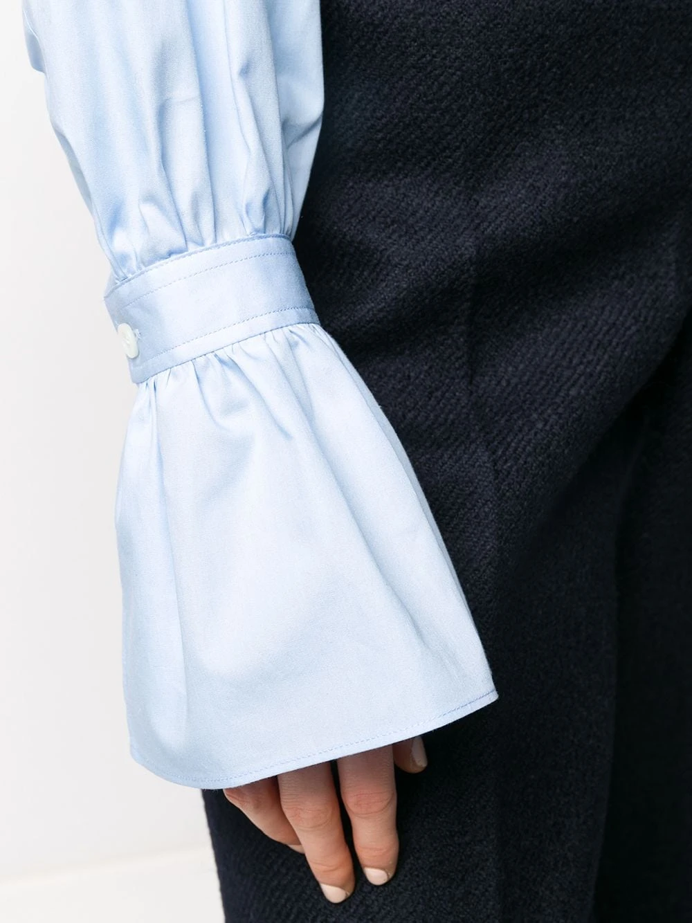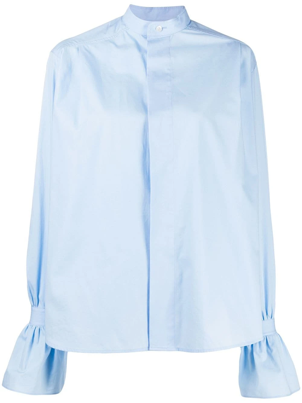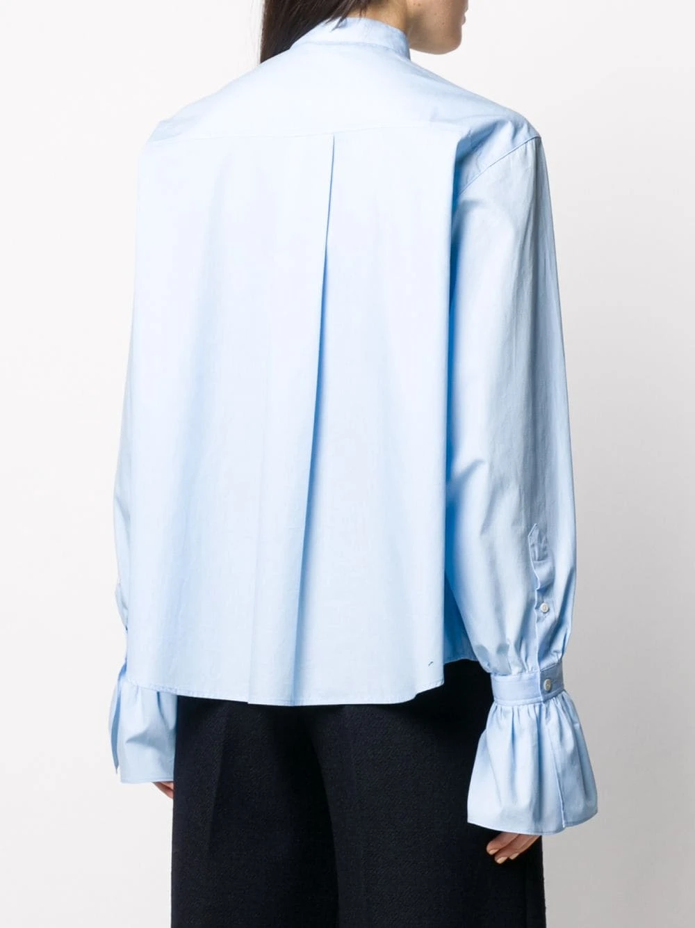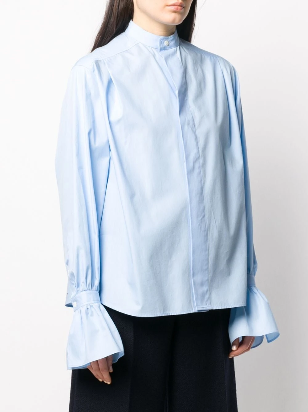Chemise à détail volanté en coton AMI Paris avec col mao, boutonnière dissimulée, détails de plis arrière, manches longues et coupe courte.
