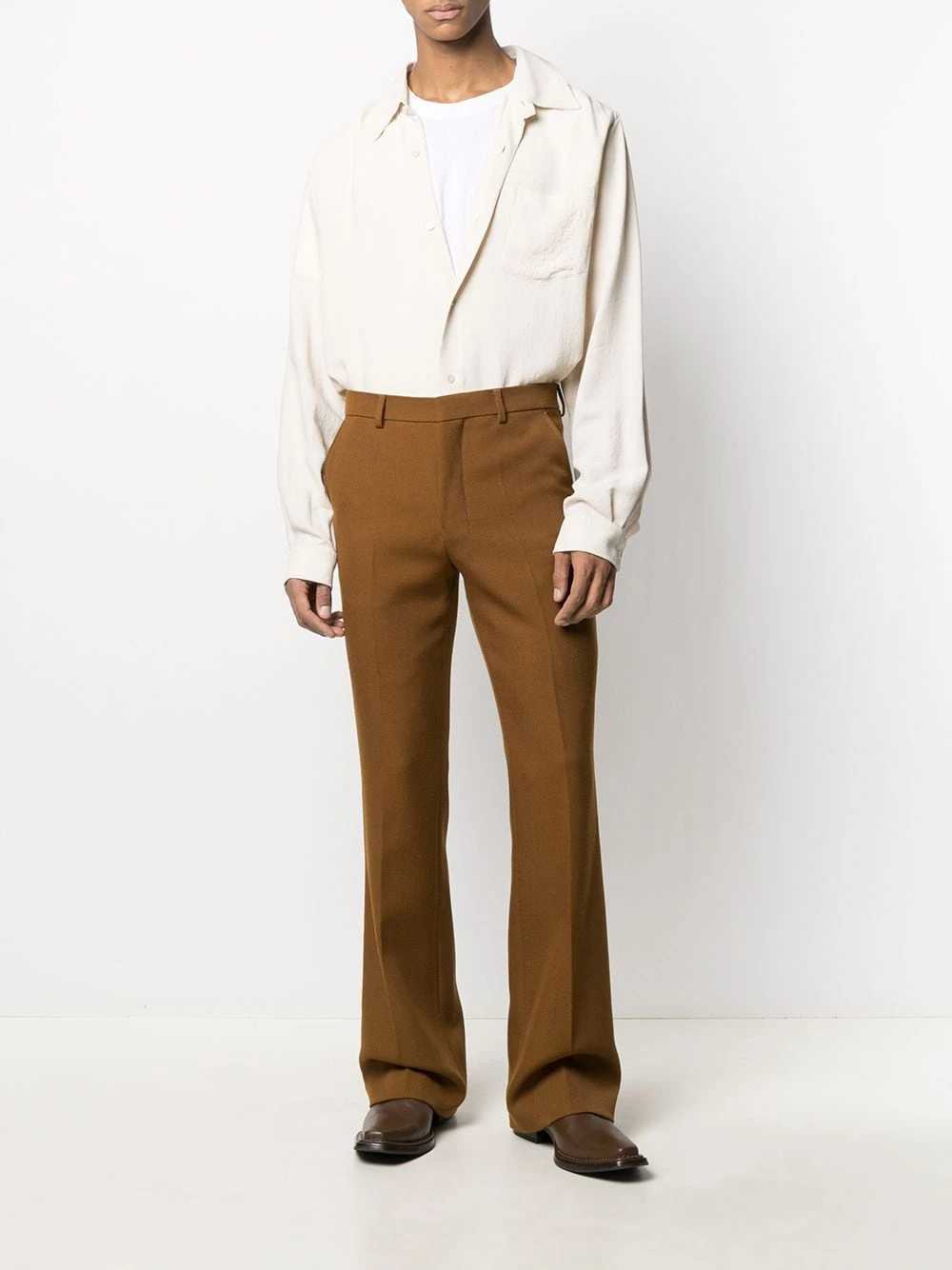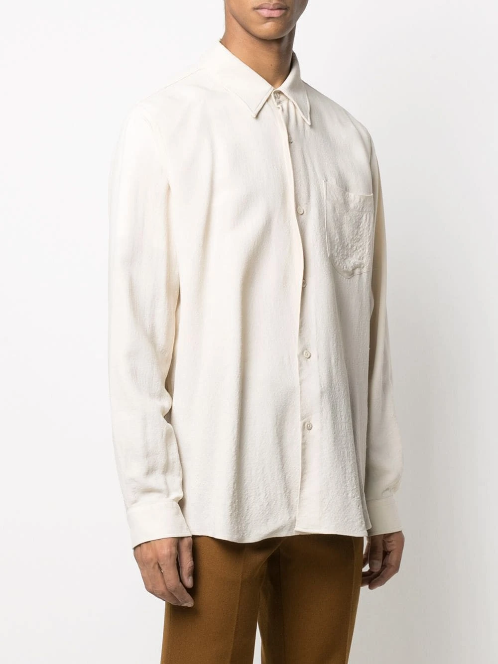 Col classique, boutonnière sur le devant, manches longues, ourlet incurvé, poche poitrine plaquée.