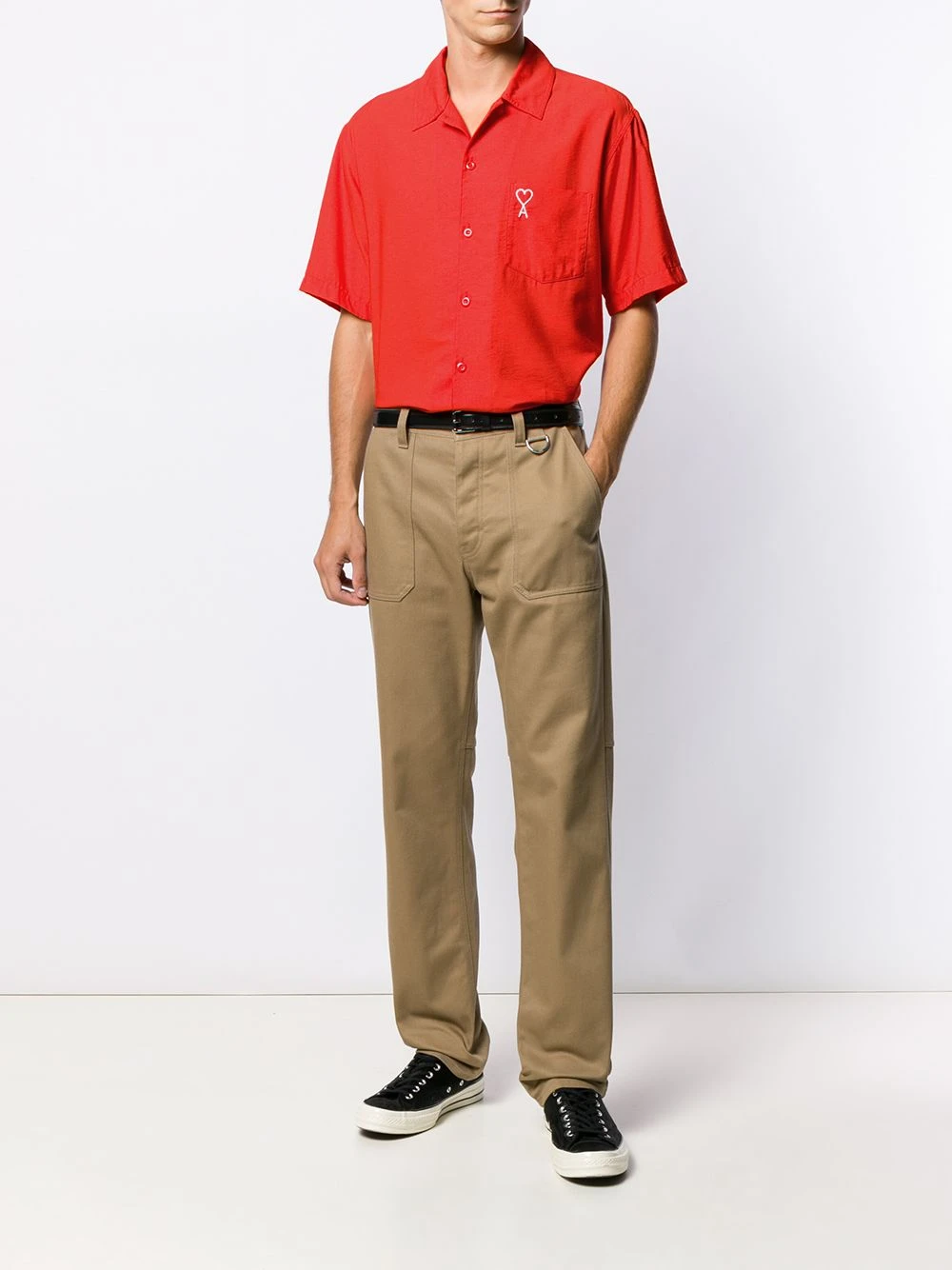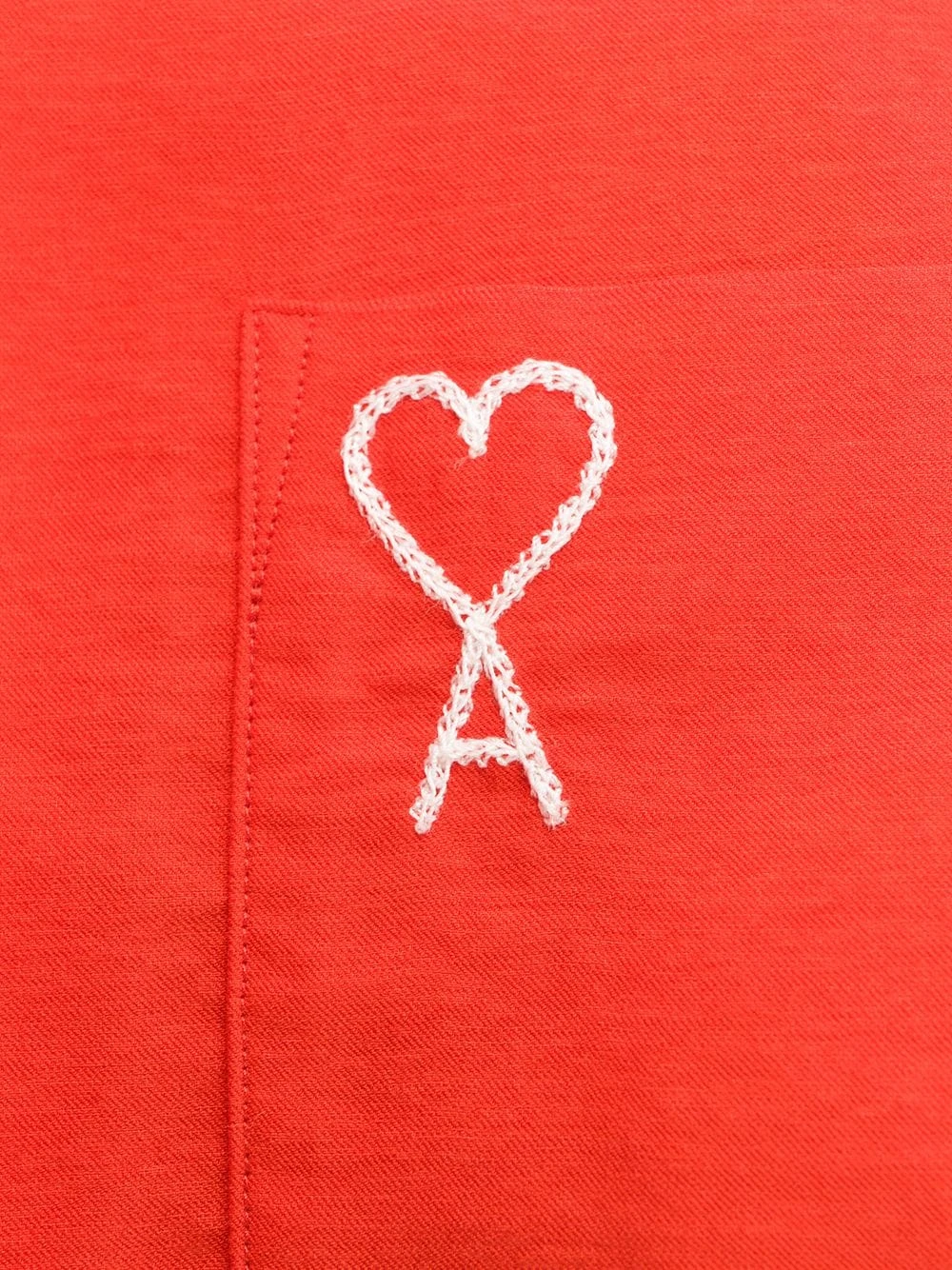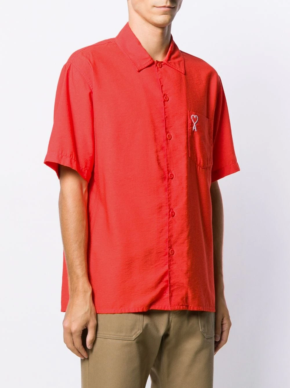 Chemise à manches courtes Ami de Coeur AMI Paris avec patte de boutonnage sur le devant, col classique, manches courtes, poche poitrine plaquée et logo contrastant brodé sur la poitrine.