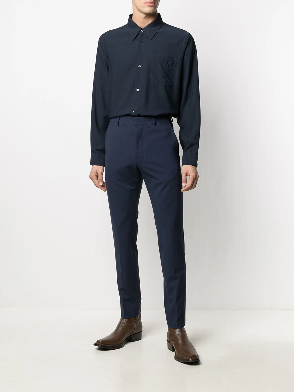 Col classique, fermeture boutonnée, poignets boutonnés, poche poitrine plaquée.