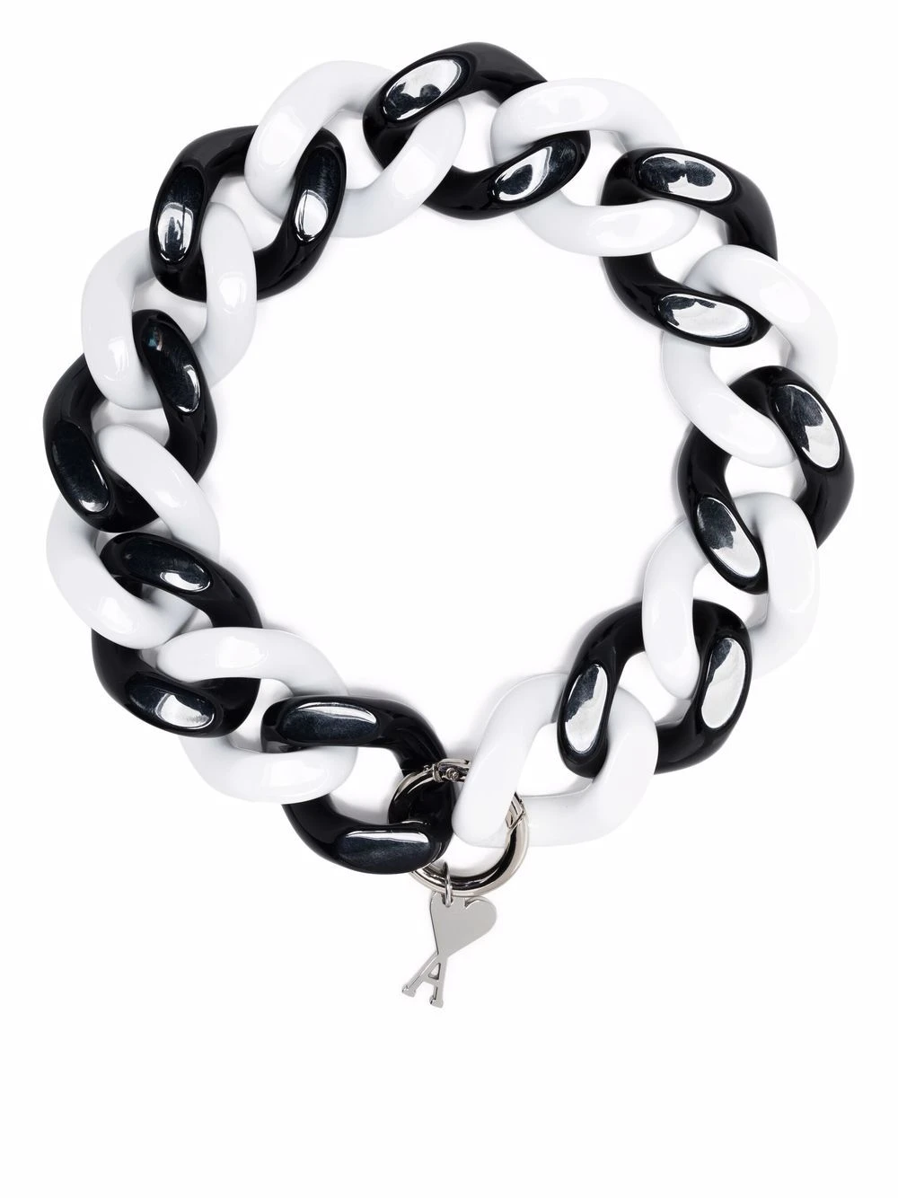 Ornements argentés, logo Ami de Coeur signature, chaîne pendante, fermeture à loquet.