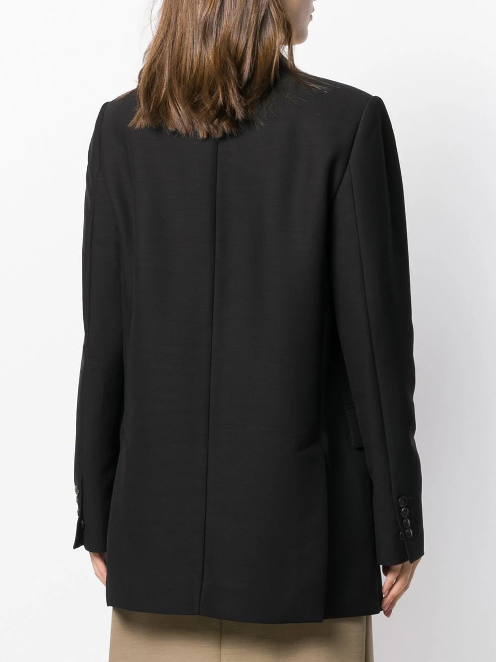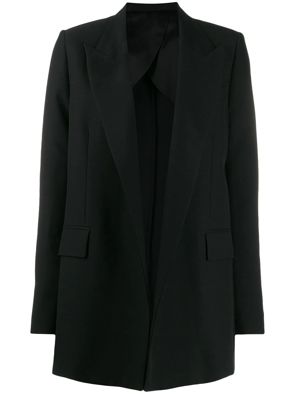 Blazer ample à design ouvert AMI Paris avec poches devant à rabat, poche passepoilée sur la poitrine, poignets boutonnés, doublure monogrammée, double fente arrière et revers pointus. Couleur : noir.