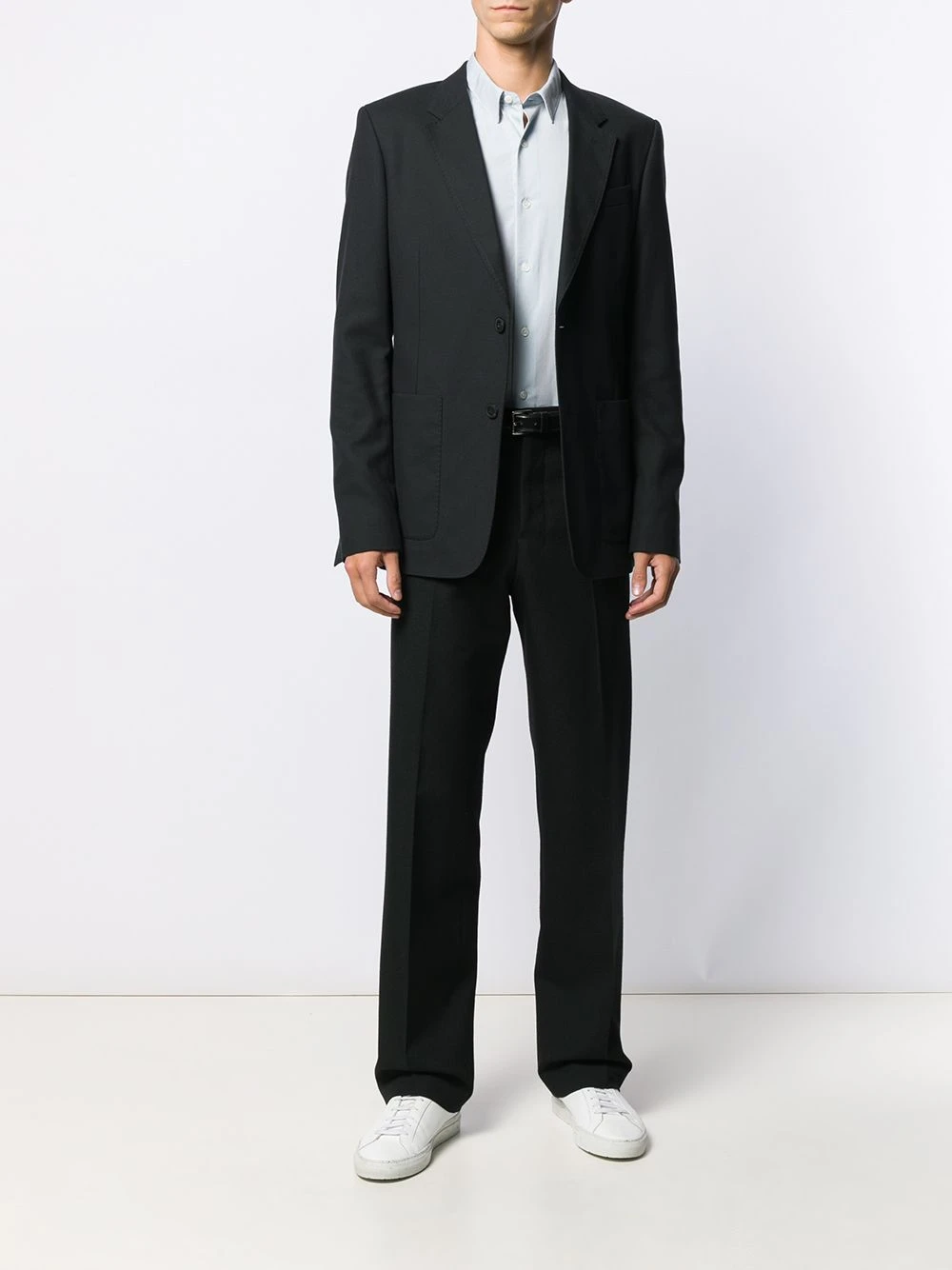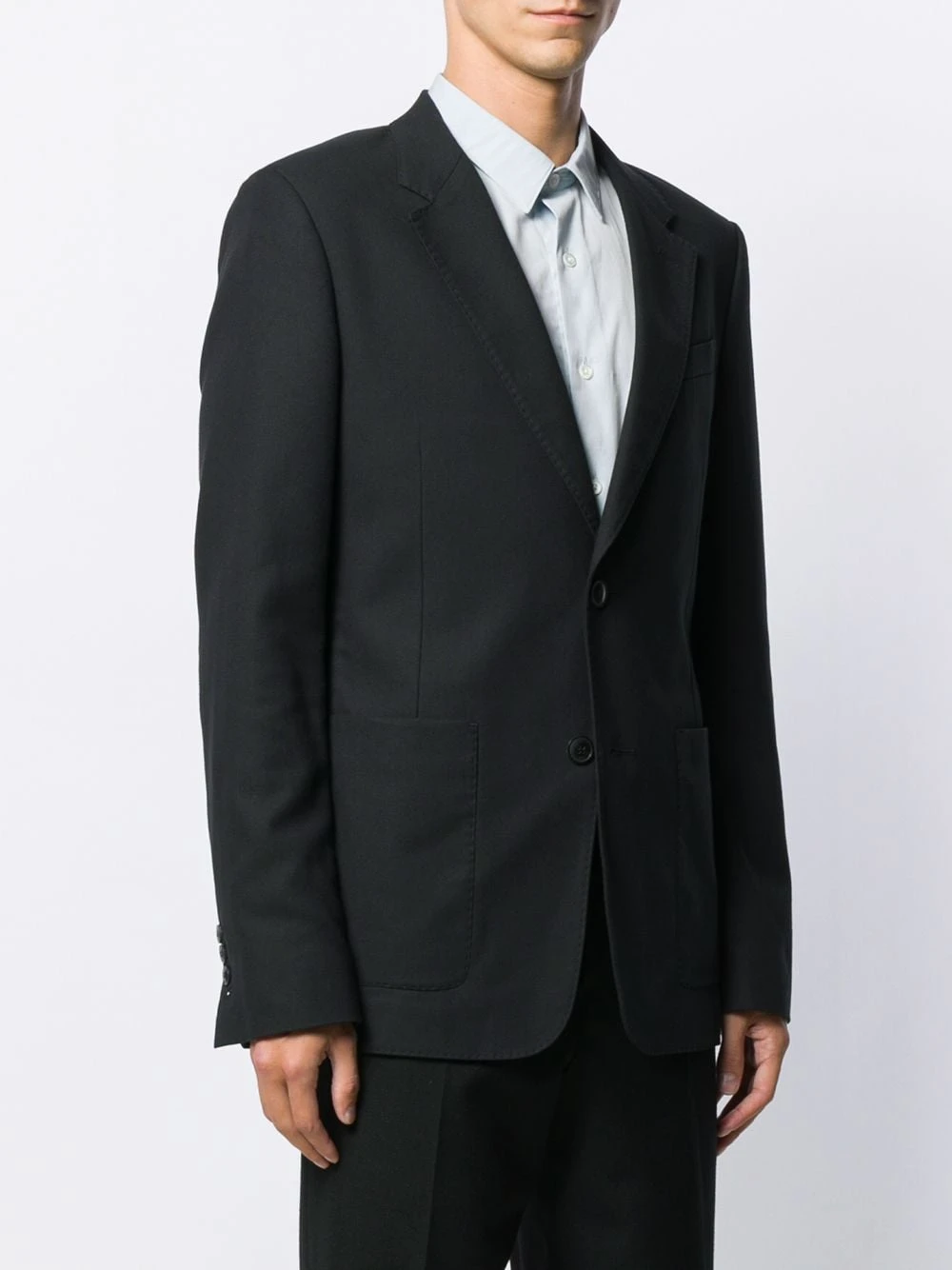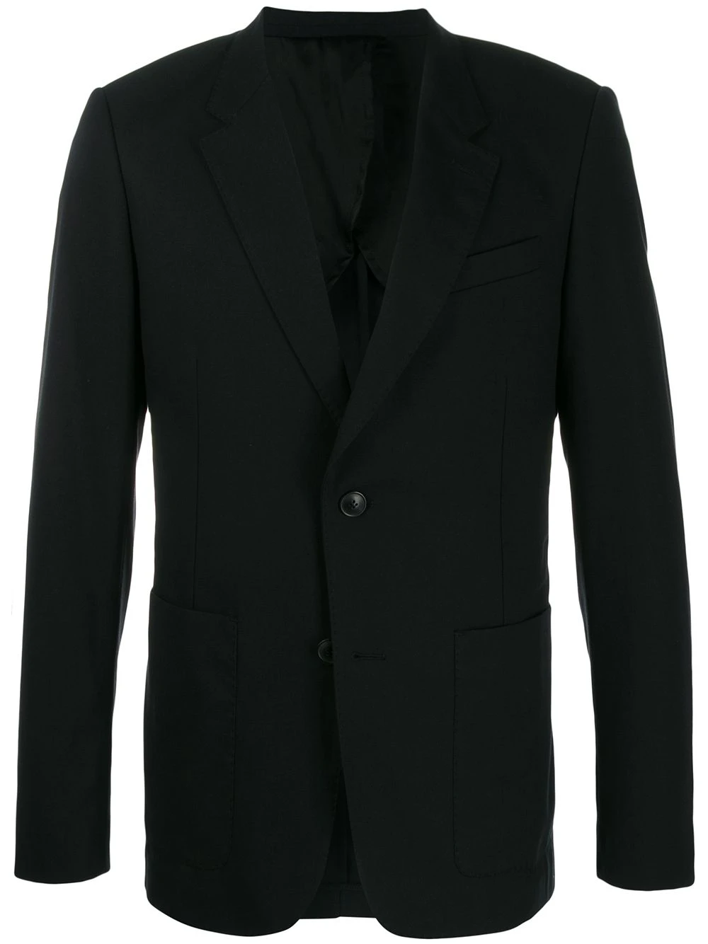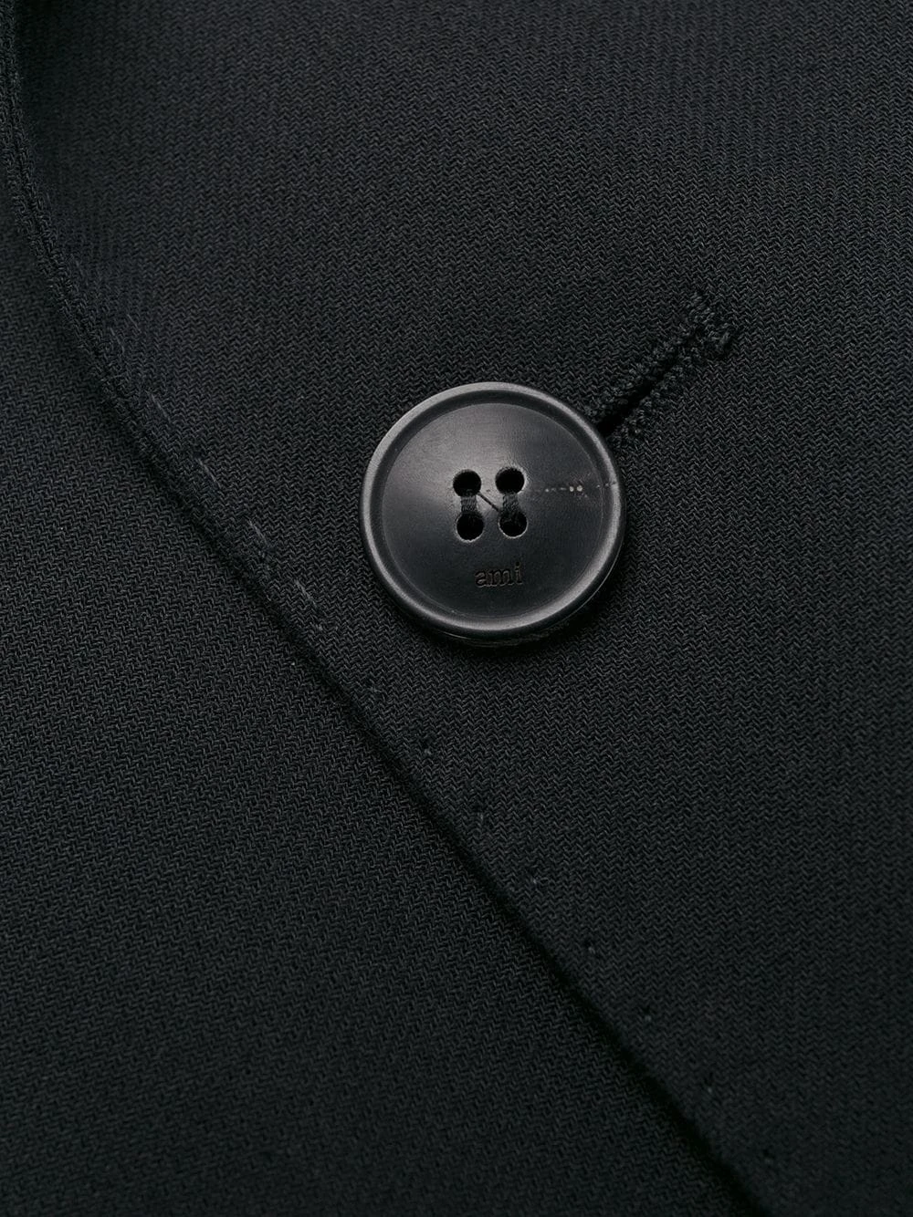 Blazer classique en coton AMI Paris avec revers crantés, boutonnière sur le devant, manches longues, poches devant et ourlet incurvé. Couleur : noir.