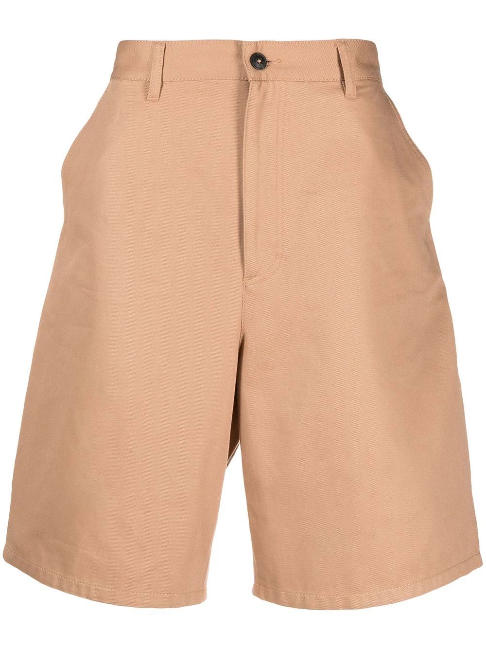 Passants de ceinture, fermeture à zip et boutons sur le devant, poches arrière passepoilées, poches latérales fendues, longueur genou. Matière : coton.