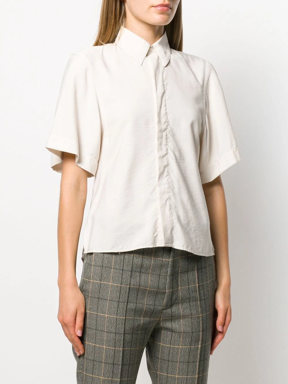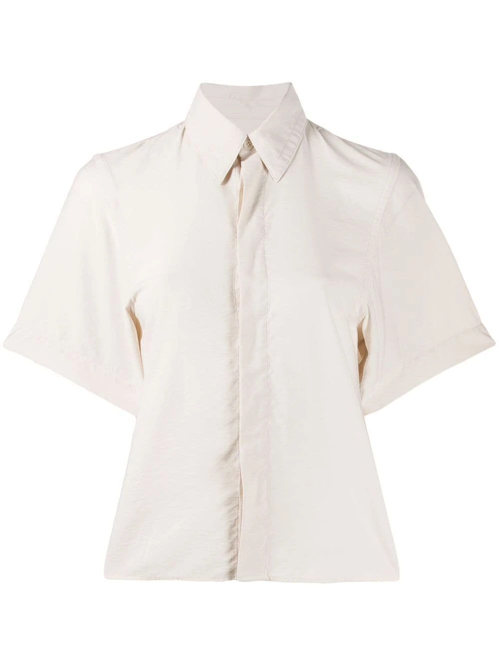 Chemise à fermeture dissimulée AMI Paris avec col classique, fermeture devant dissimulée, manches courtes et fentes latérales.