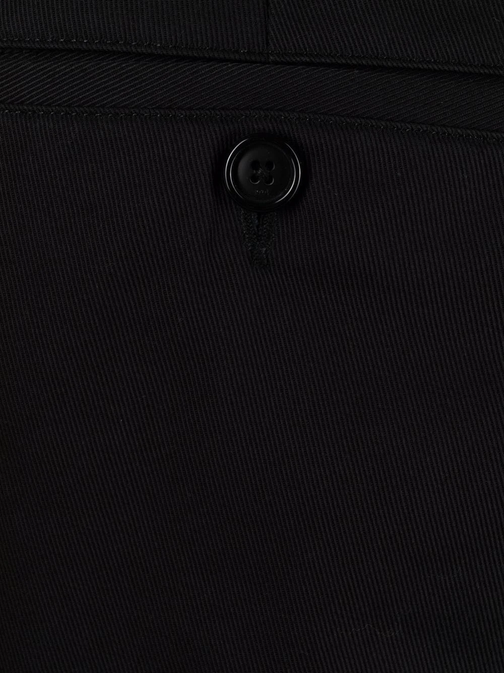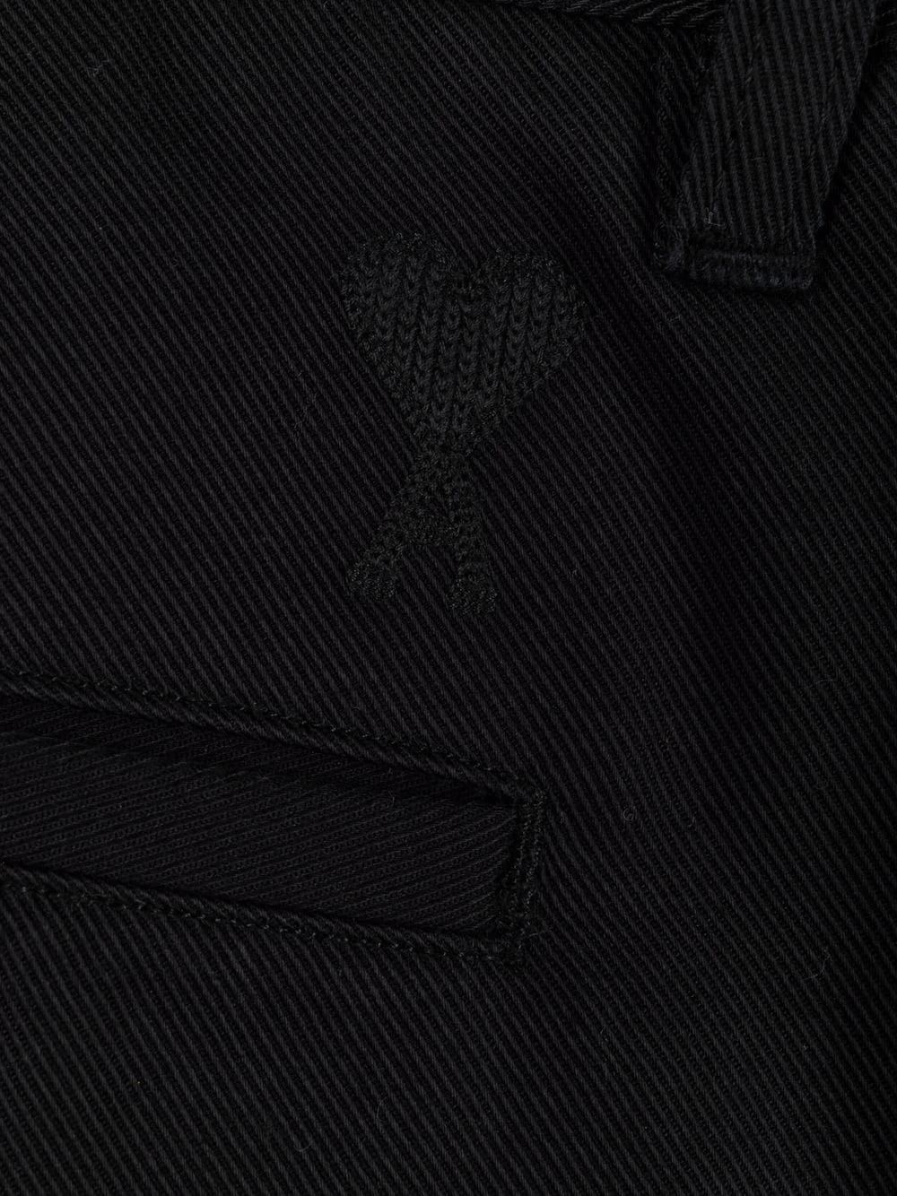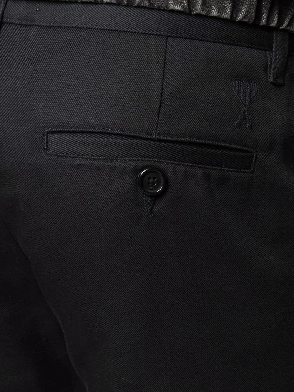 Logo Ami de Coeur signature, passants de ceinture, fermeture à zip et boutons sur le devant, poches latérales fendues, deux poches arrières boutonnées, coupe droite. Couleur : noir. Matière : coton.