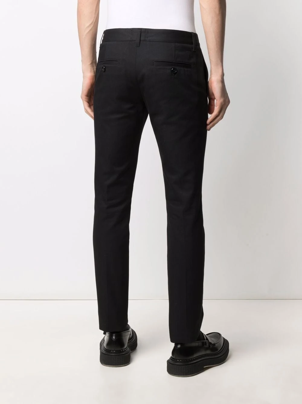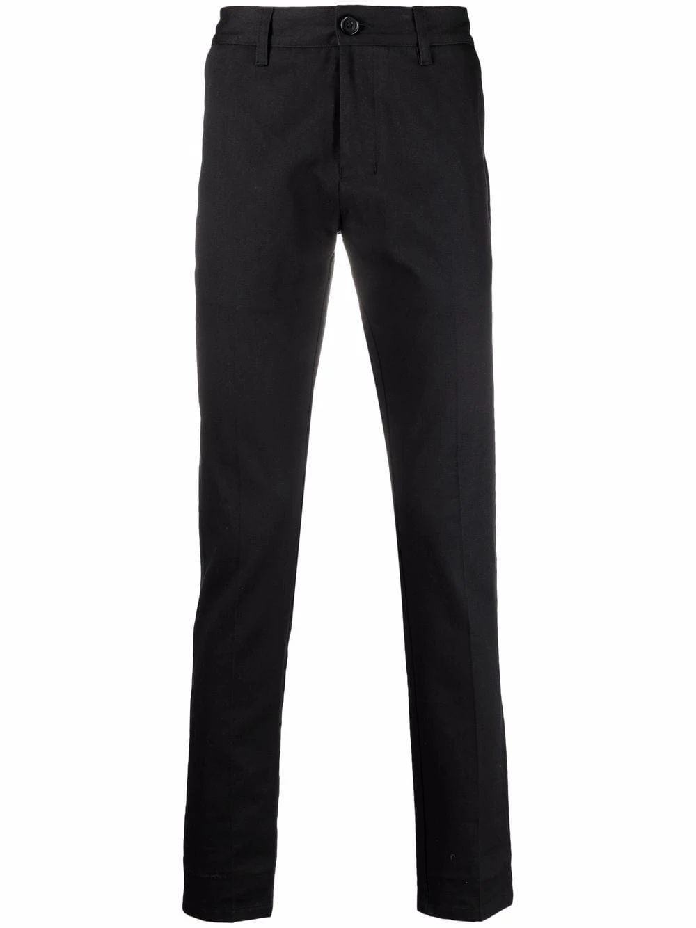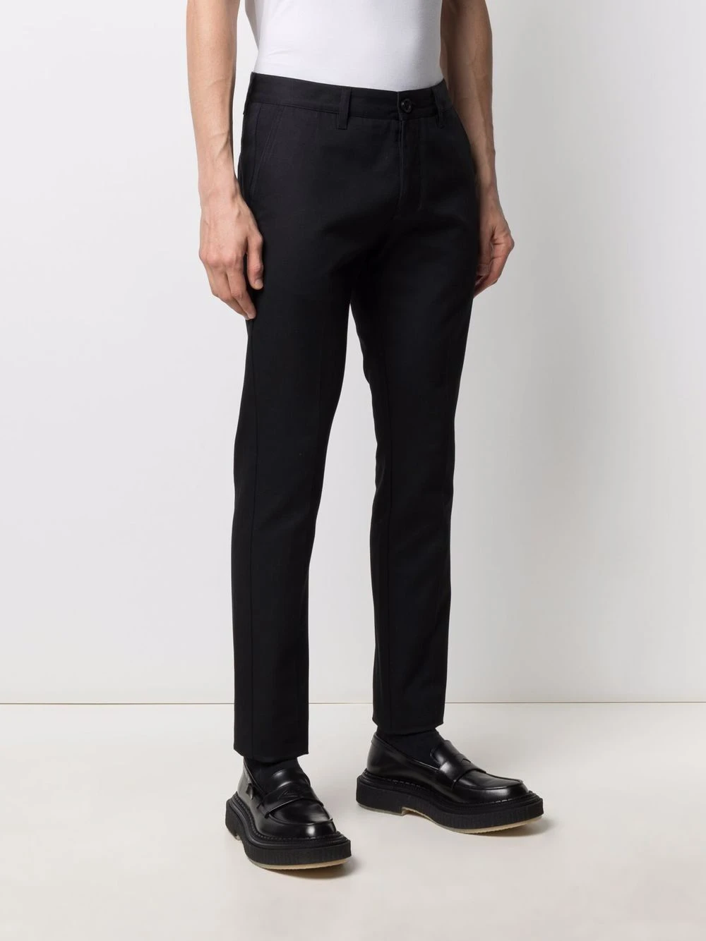 Logo Ami de Coeur signature, passants de ceinture, fermeture à zip et boutons sur le devant, poches latérales fendues, deux poches arrières boutonnées, coupe droite. Couleur : noir. Matière : coton.