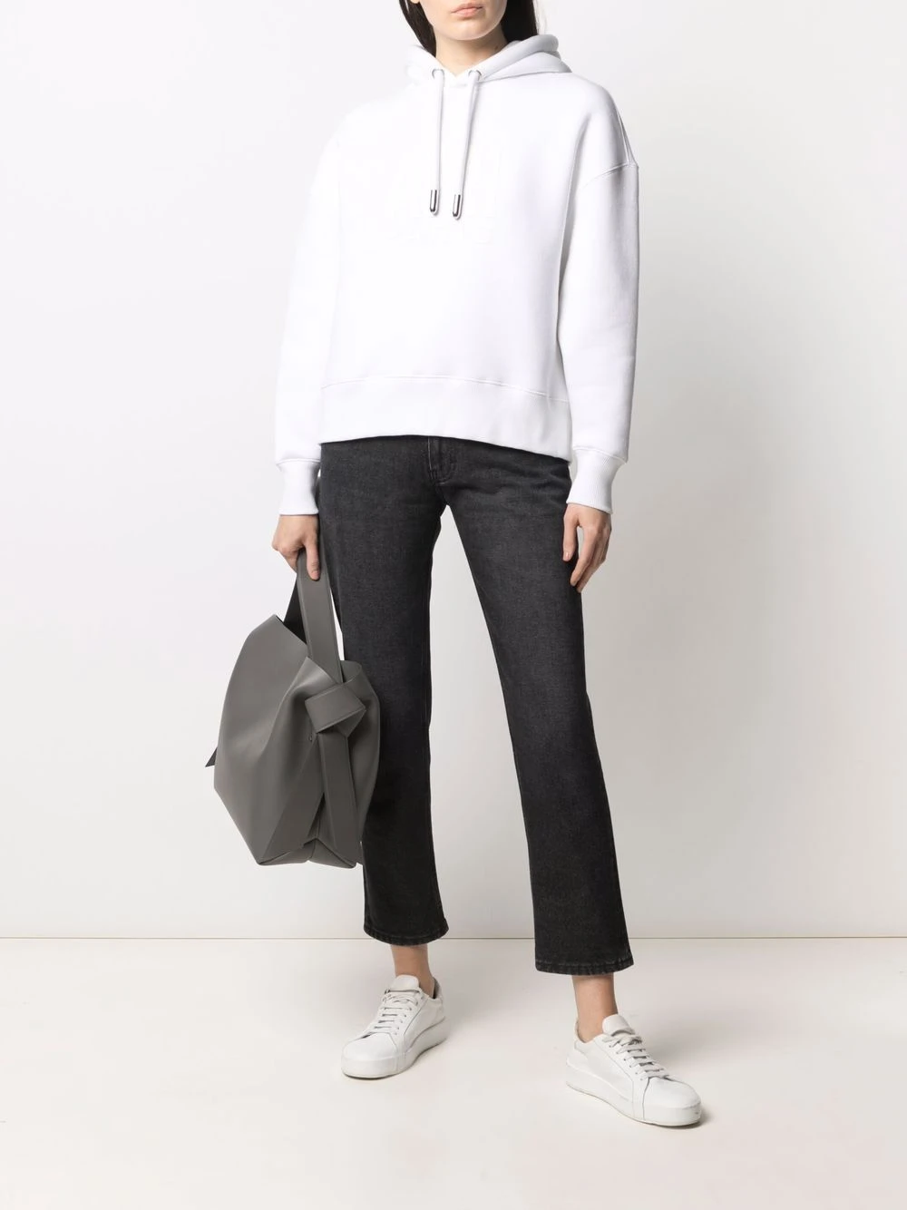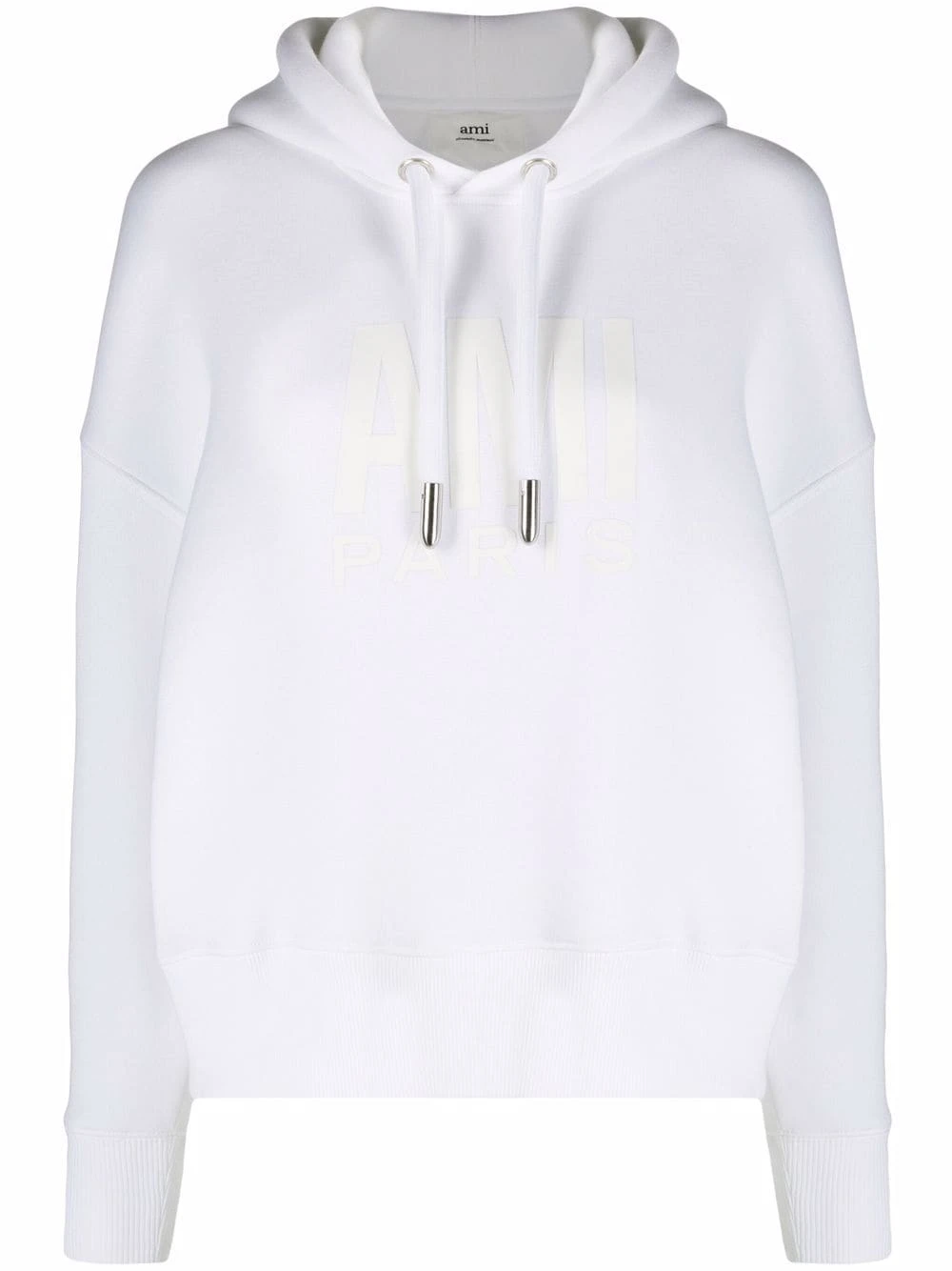 Capuche à lien de resserrage, logo imprimé sur le devant, manches longues, poignets nervurés, ourlet nervuré. Couleur : blanc. Matière : coton.