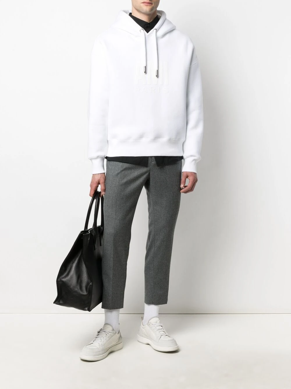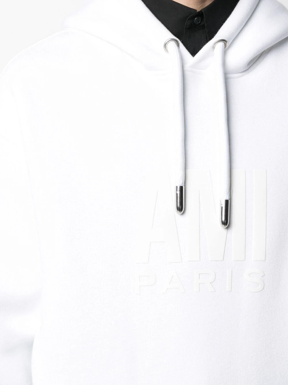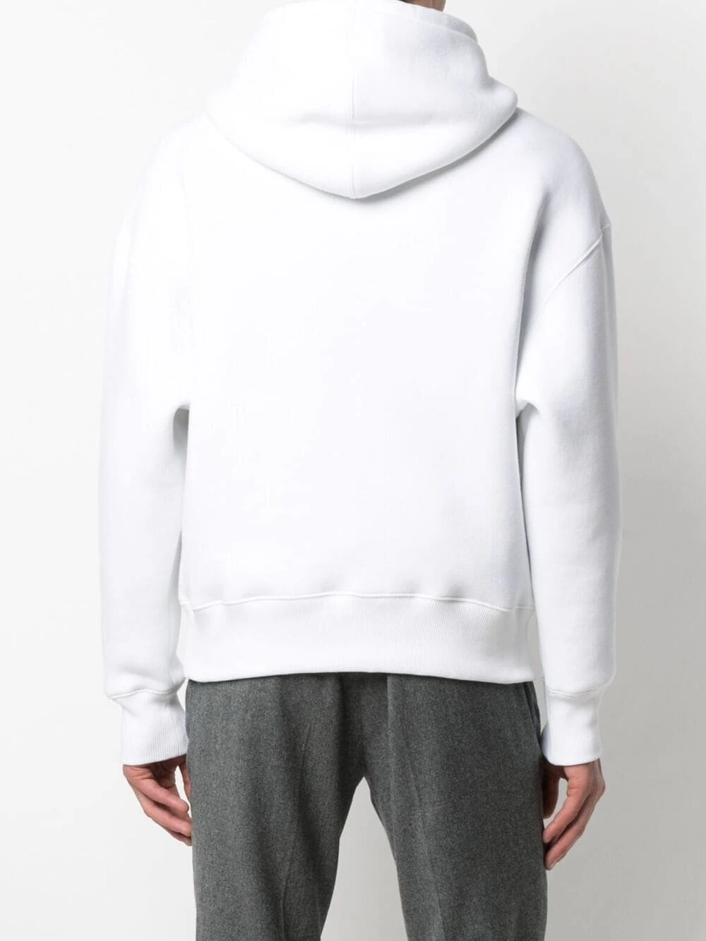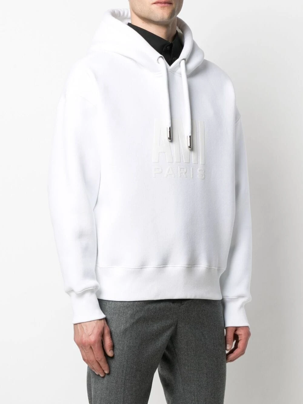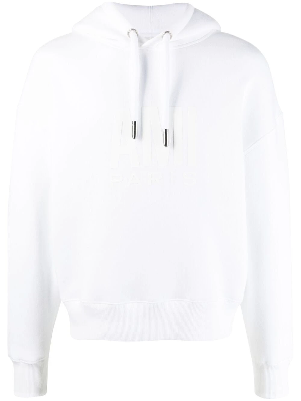 Logo imprimé à la poitrine, capuche classique, effet d’épaules descendues, manches longues, ourlet nervuré. Couleur : blanc.