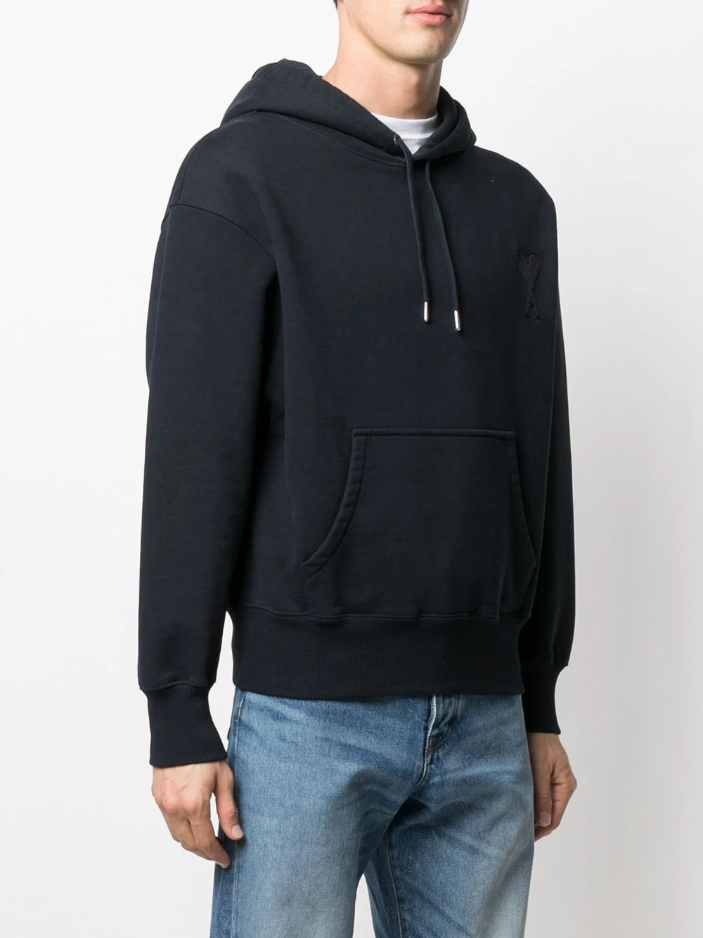Patch logo sur le devant, capuche à lien de resserrage, effet d’épaules descendues, manches longues, poche plaquée. Couleur : noir. Matière : coton.