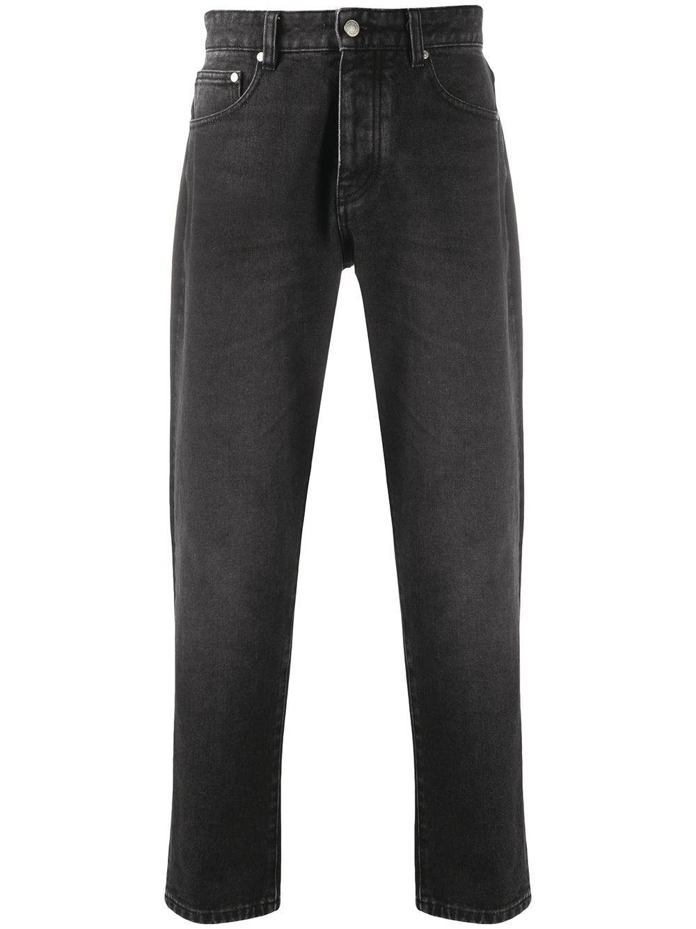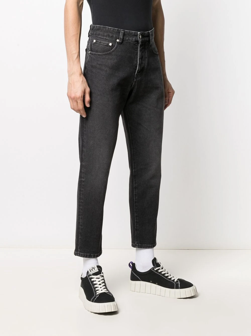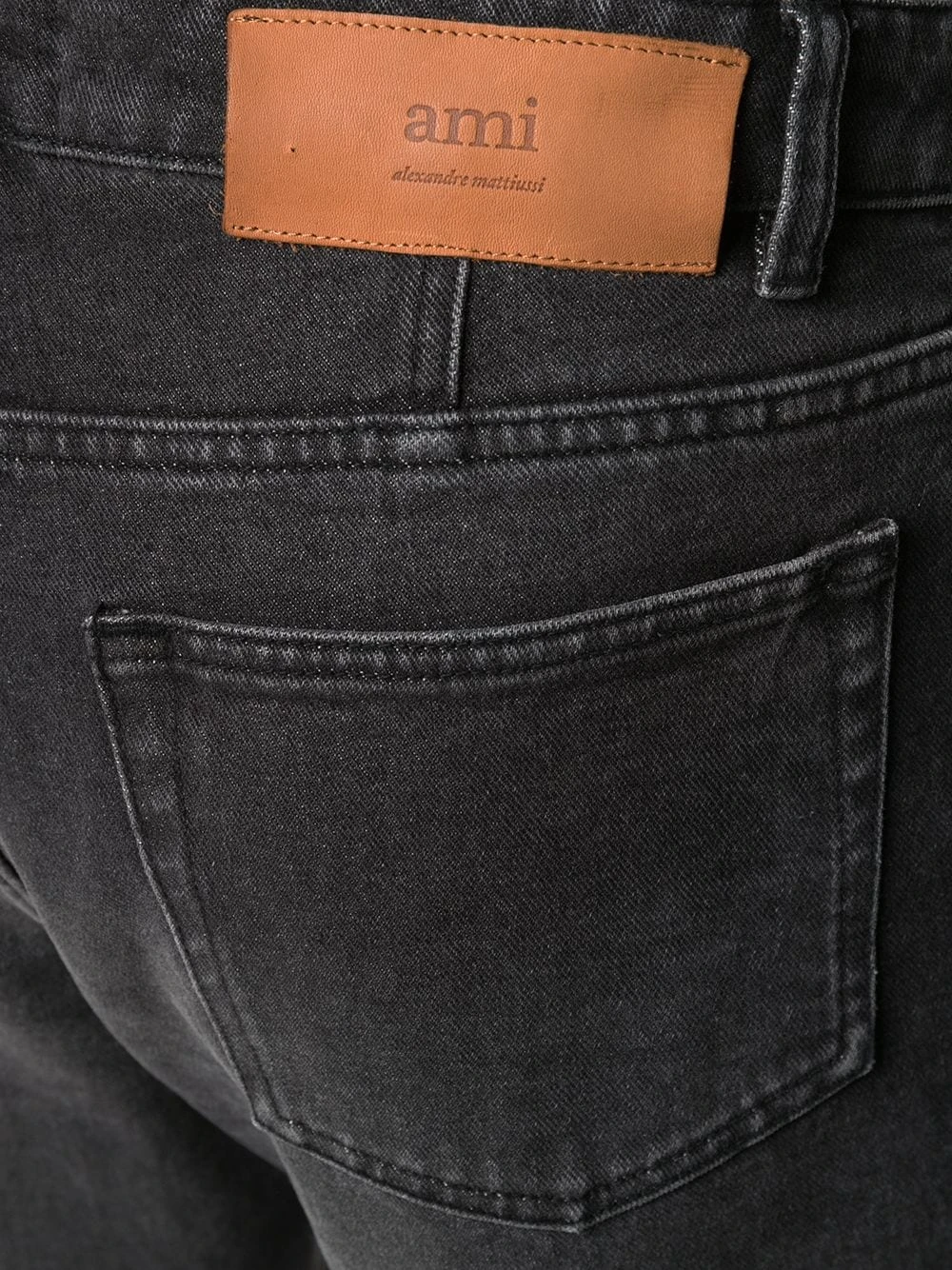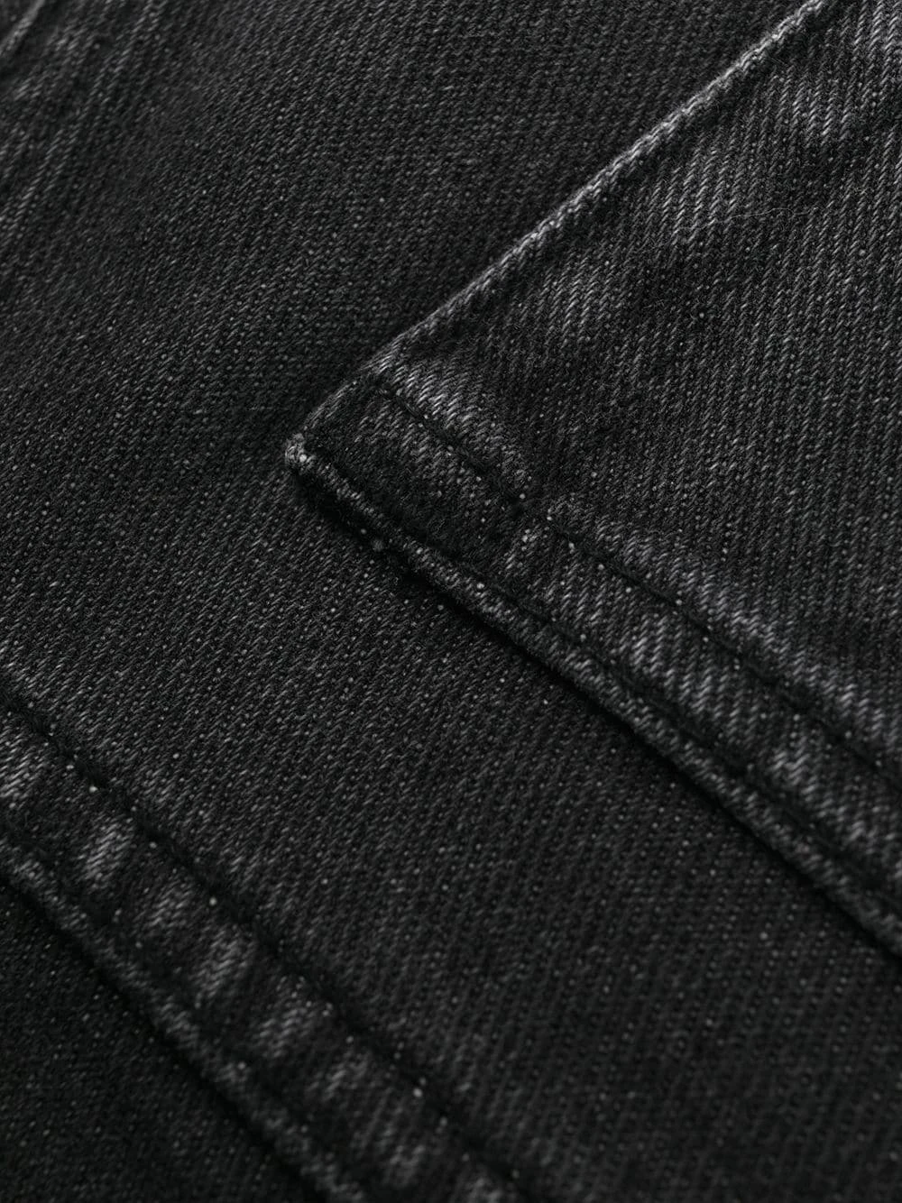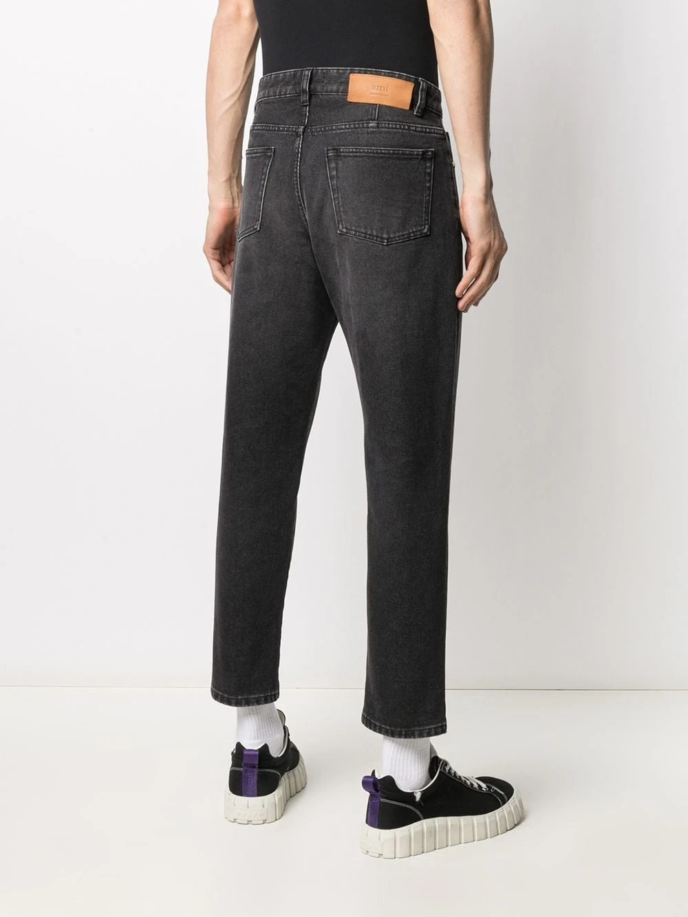 Patch logo sur l’arrière, coupe ajustée, longueur crop, boutonnière sur le devant, 5 poches classiques. Matière : coton.