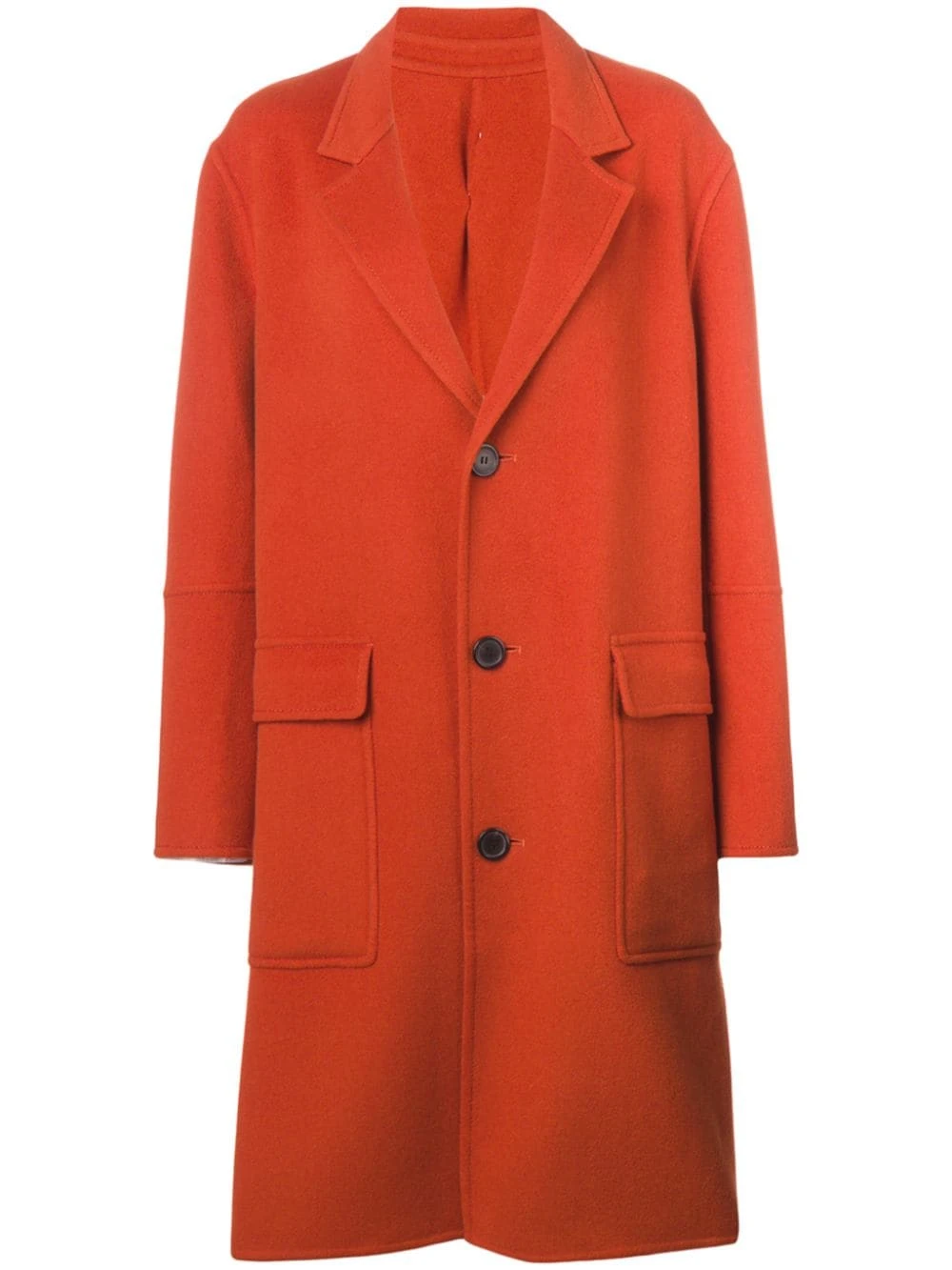 Manteau à boutonnière devant en laine AMI Alexandre Mattiussi avec manches longues et col classique. Couleur : orange.