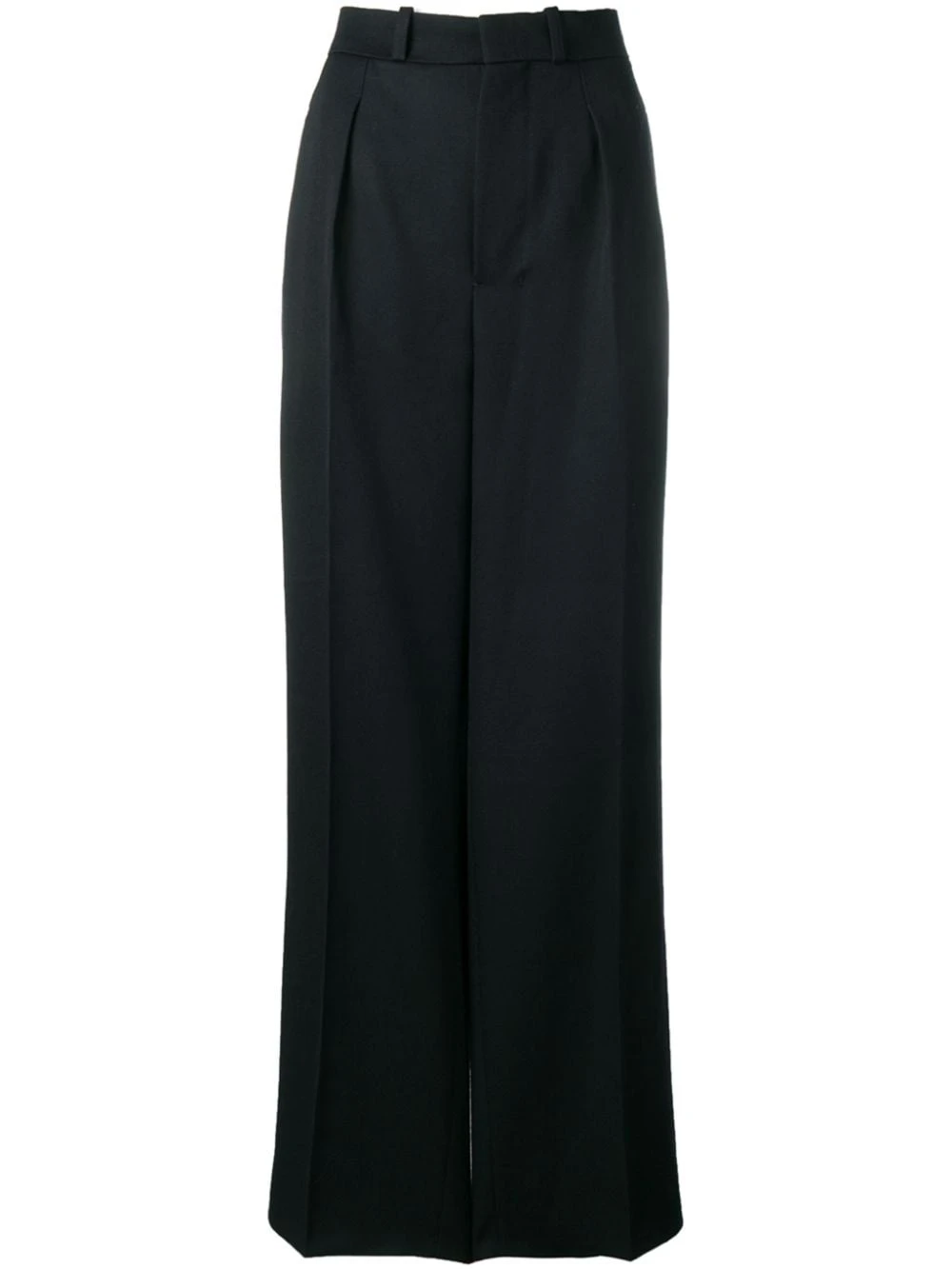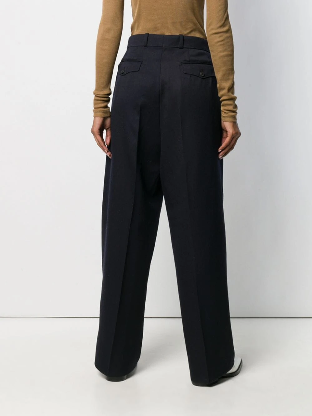 PANTALON COUPE LARGE en Laine AMI Alexandre Mattiussi avec fermeture devant à agrafes, poches latérales fendues, passants de ceinture, taille haute et coupe ample. Couleur: navy.