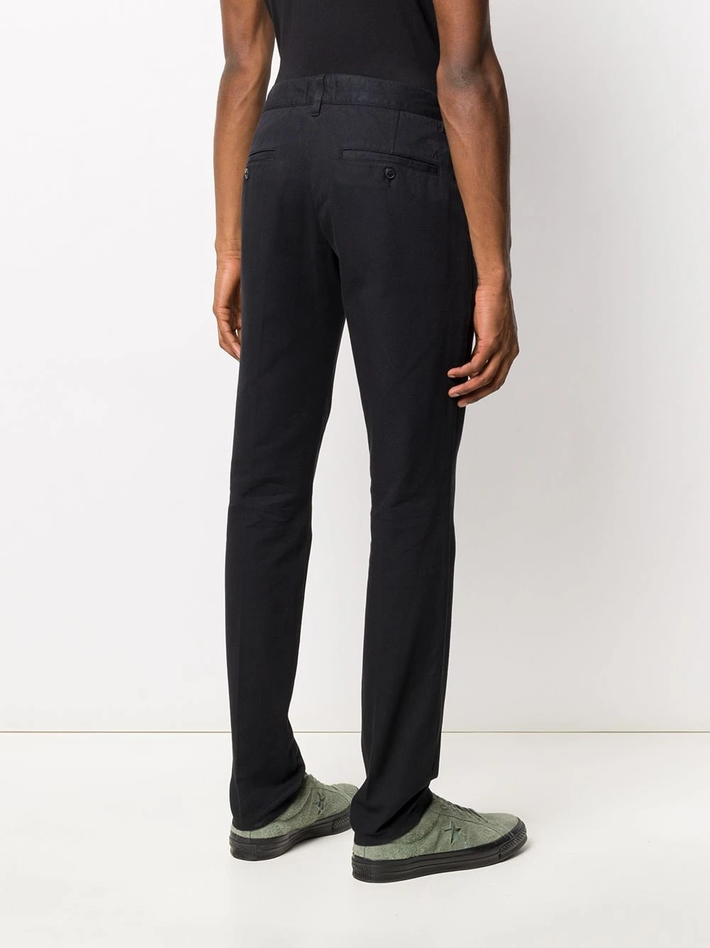 Pantalon chino droit en coton AMI Paris avec passants de ceinture, boutonnière sur le devant, poches latérales, deux poches arrière passepoilées et boutonnées et longueur classique. Couleur : noir.
