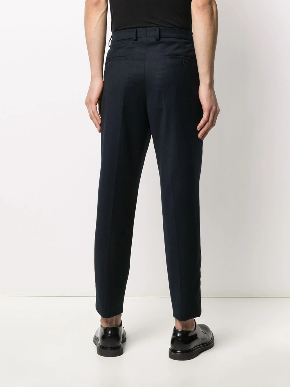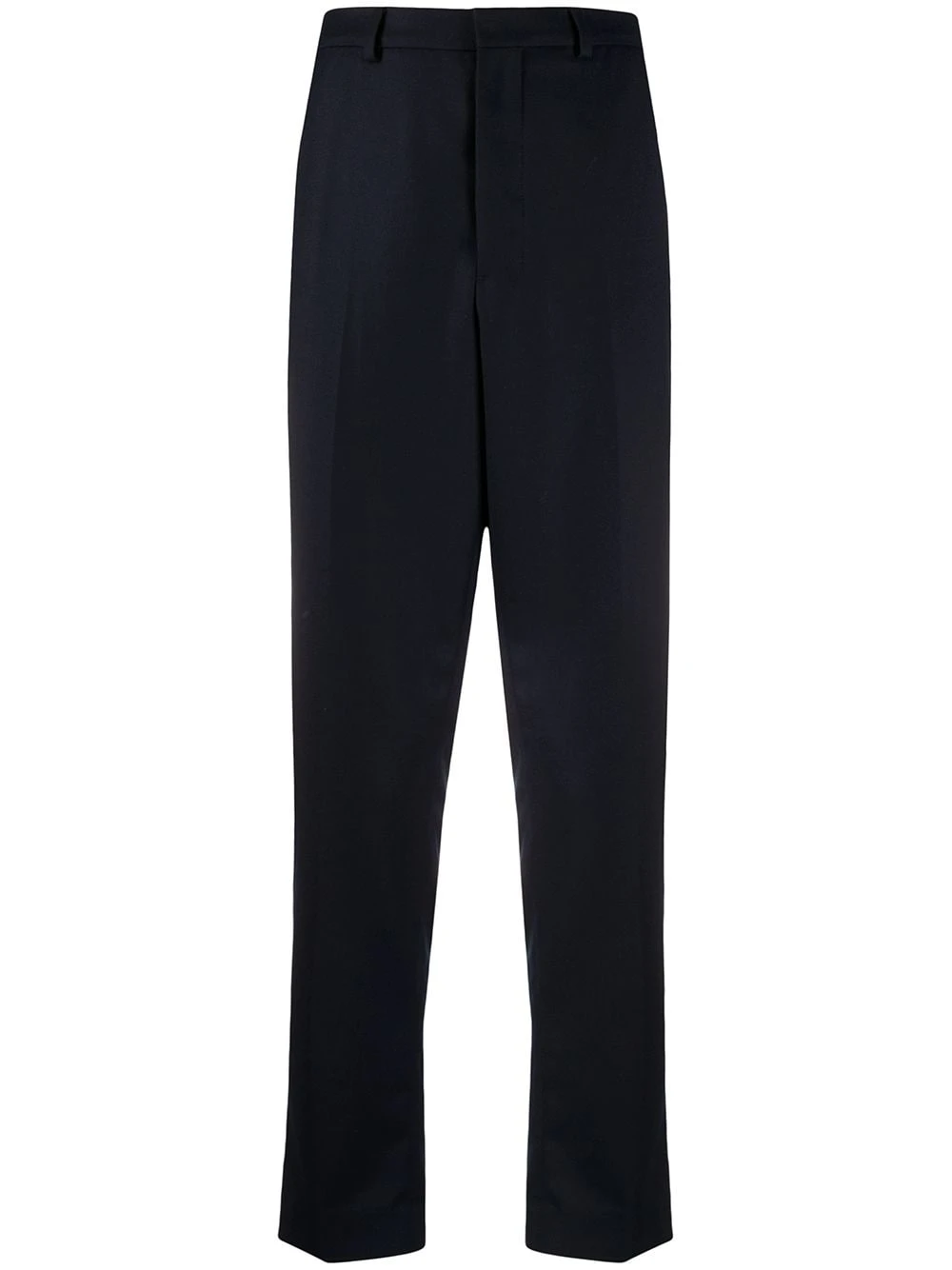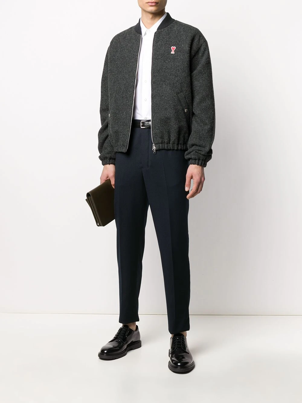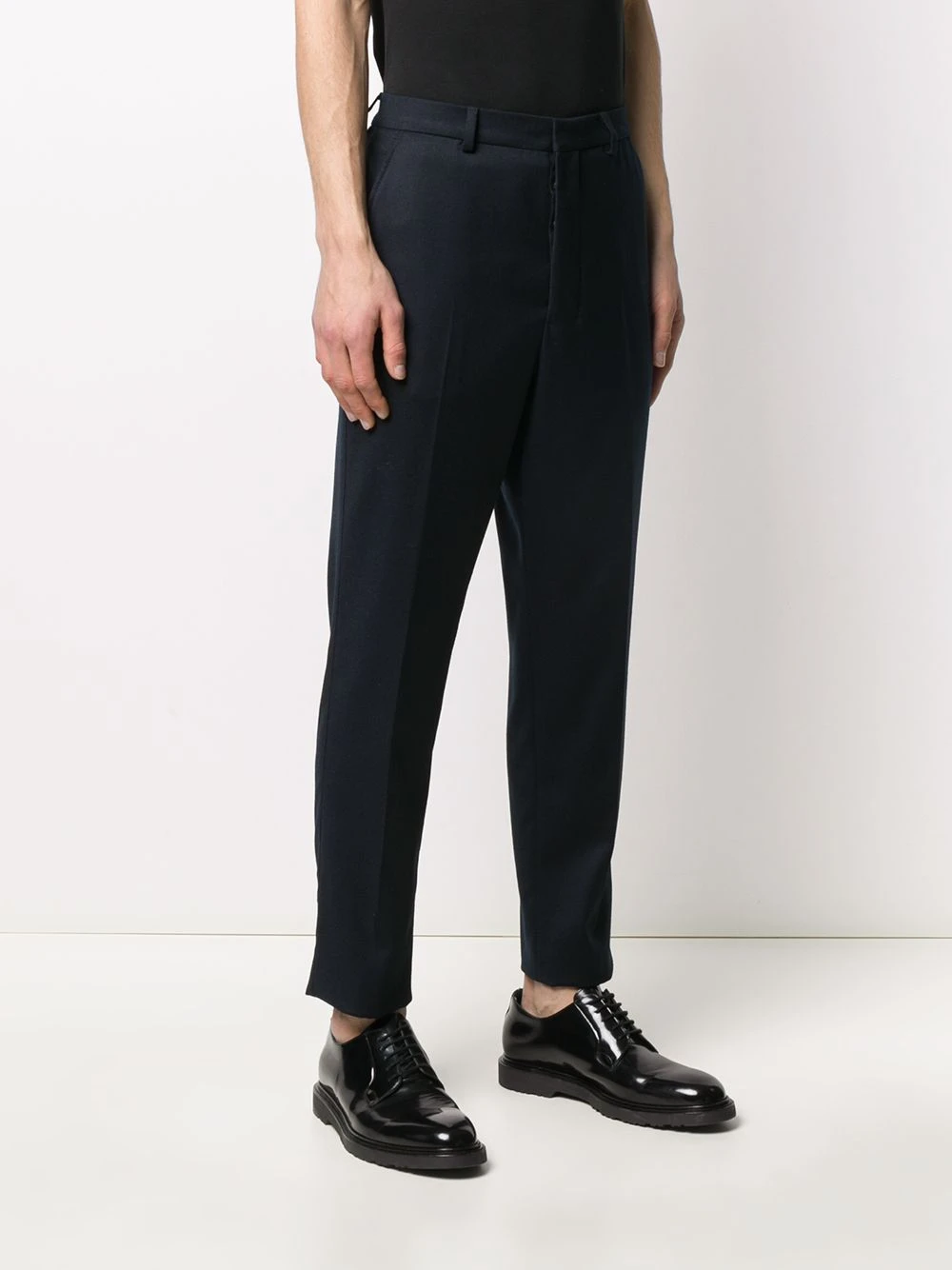 Pantalon de costume fuselé en laine vierge AMI Paris avec design ajusté, fermeture devant dissimulée, passants de ceinture, deux poches arrière passepoilées et boutonnées, poches latérales fendues et pinces à la taille.