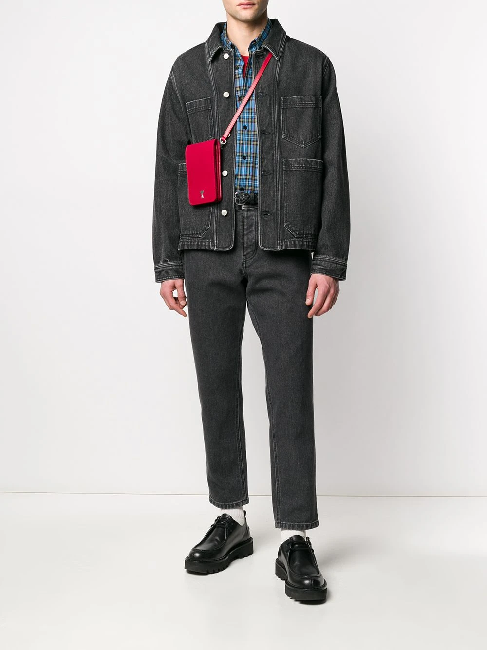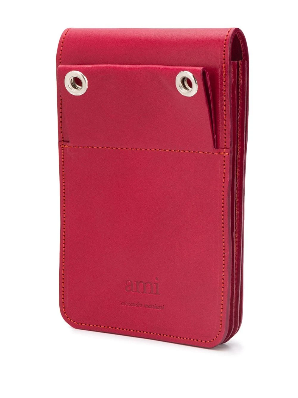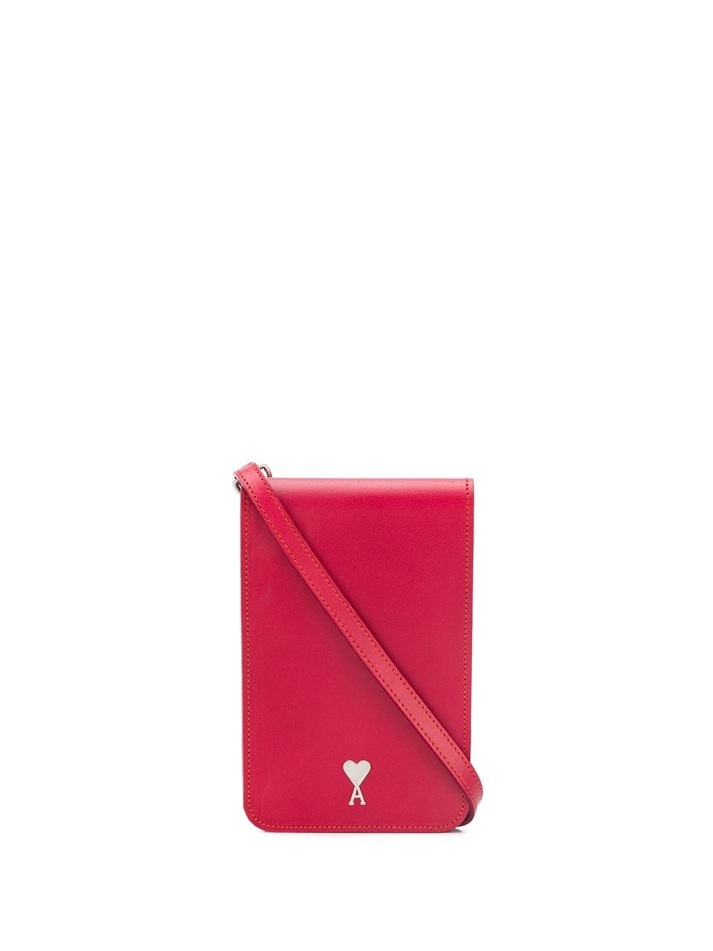 Mini sac à bandoulière Accordion en cuir de veau AMI Paris avec bride portée épaule détachable, plaque logo sur le devant, fermeture magnétique, compartiment intérieur et logo embossé. Couleur : rouge.
