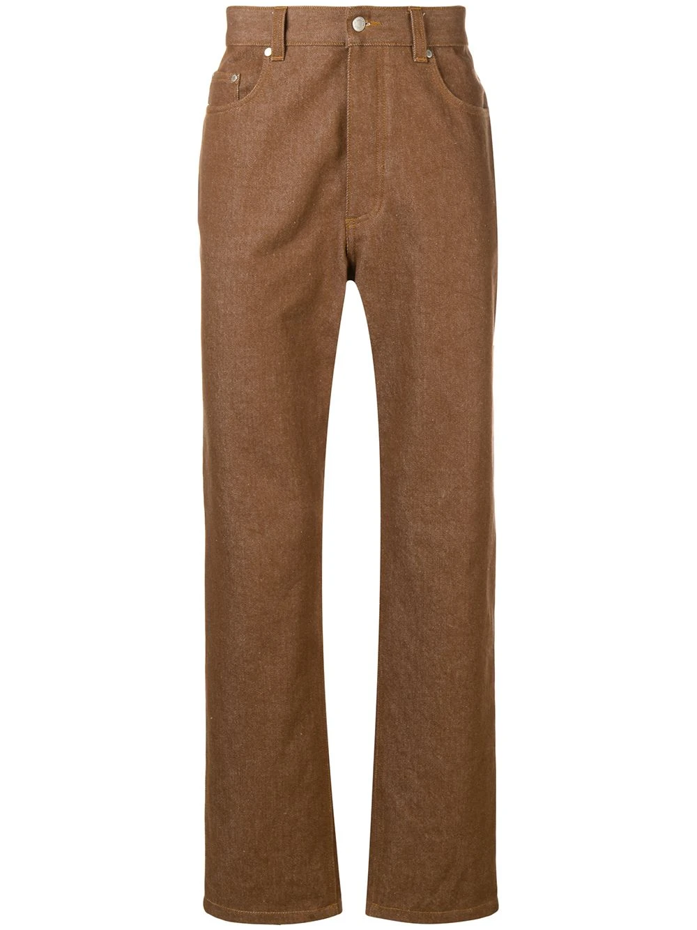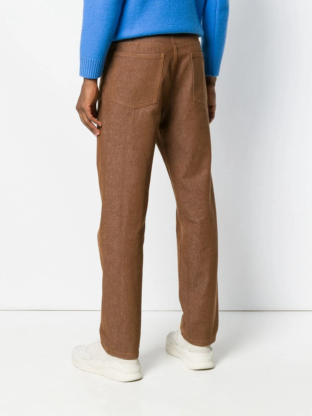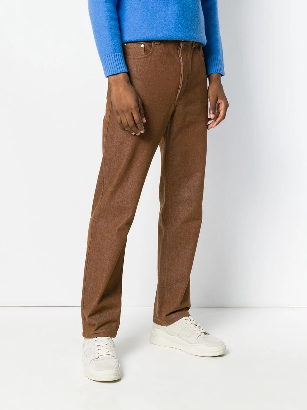 Jean droit en Natural (Veg)->Cotton Ami Alexandre Mattiussi avec taille haute, coupe droite, passants de ceinture à la taille, bouton et zip, coupe classique cinq poches et patch logo en cuir sur l’arrière. Couleur: .