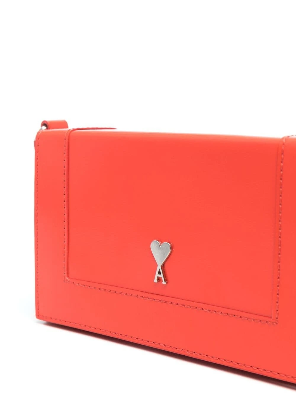 Logo Ami de Coeur signature, bride porté épaule détachable, rabat sur le dessus à fermeture magnétique, compartiment principal, logo imprimé à l’intérieur, ornements argentés. Matière : cuir.