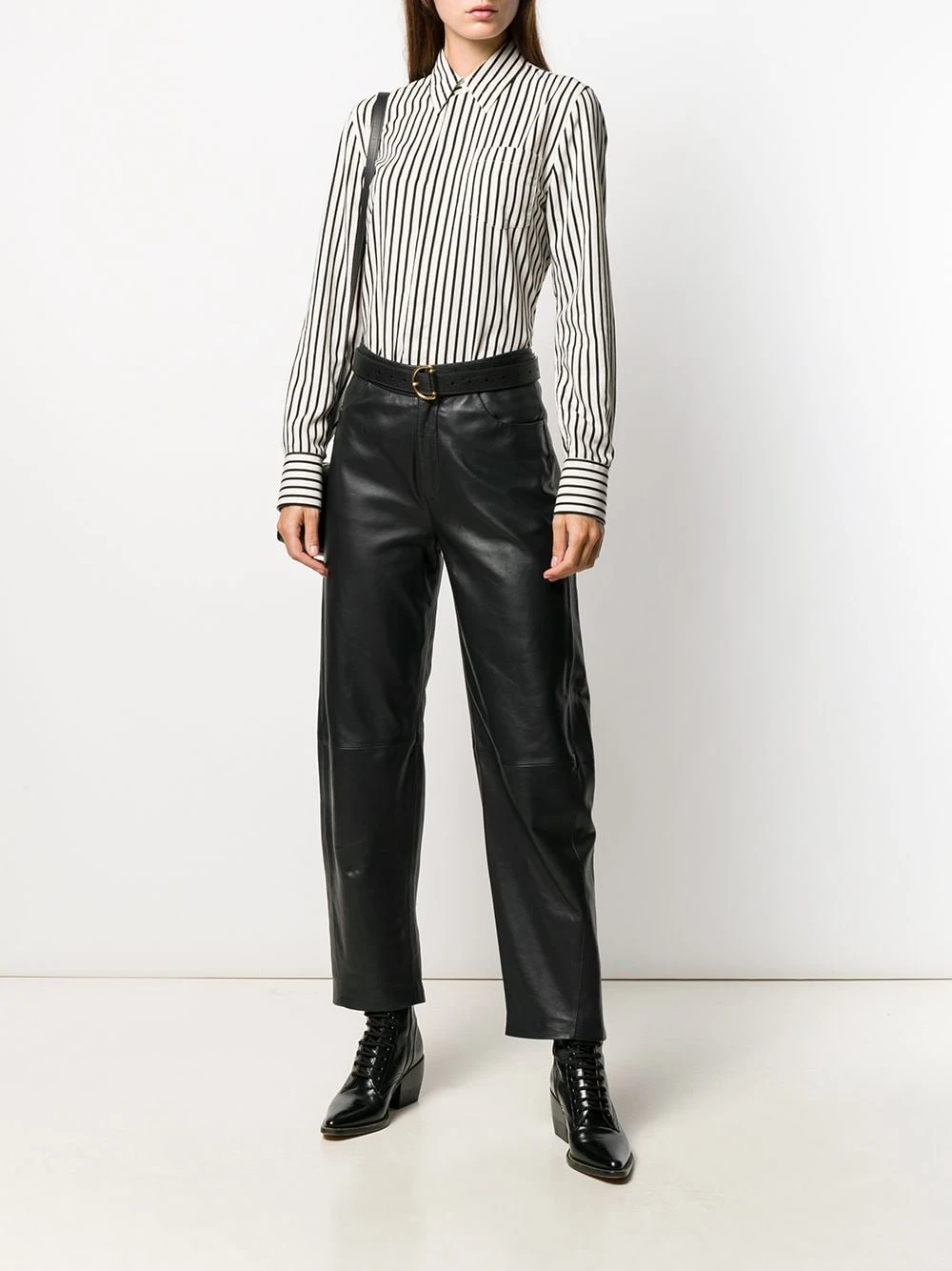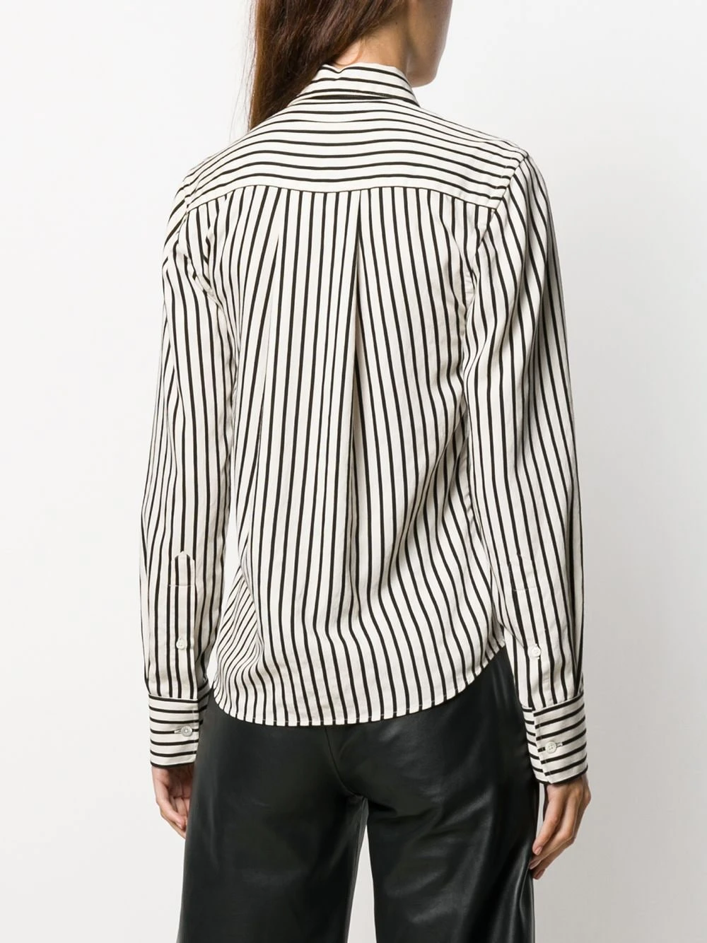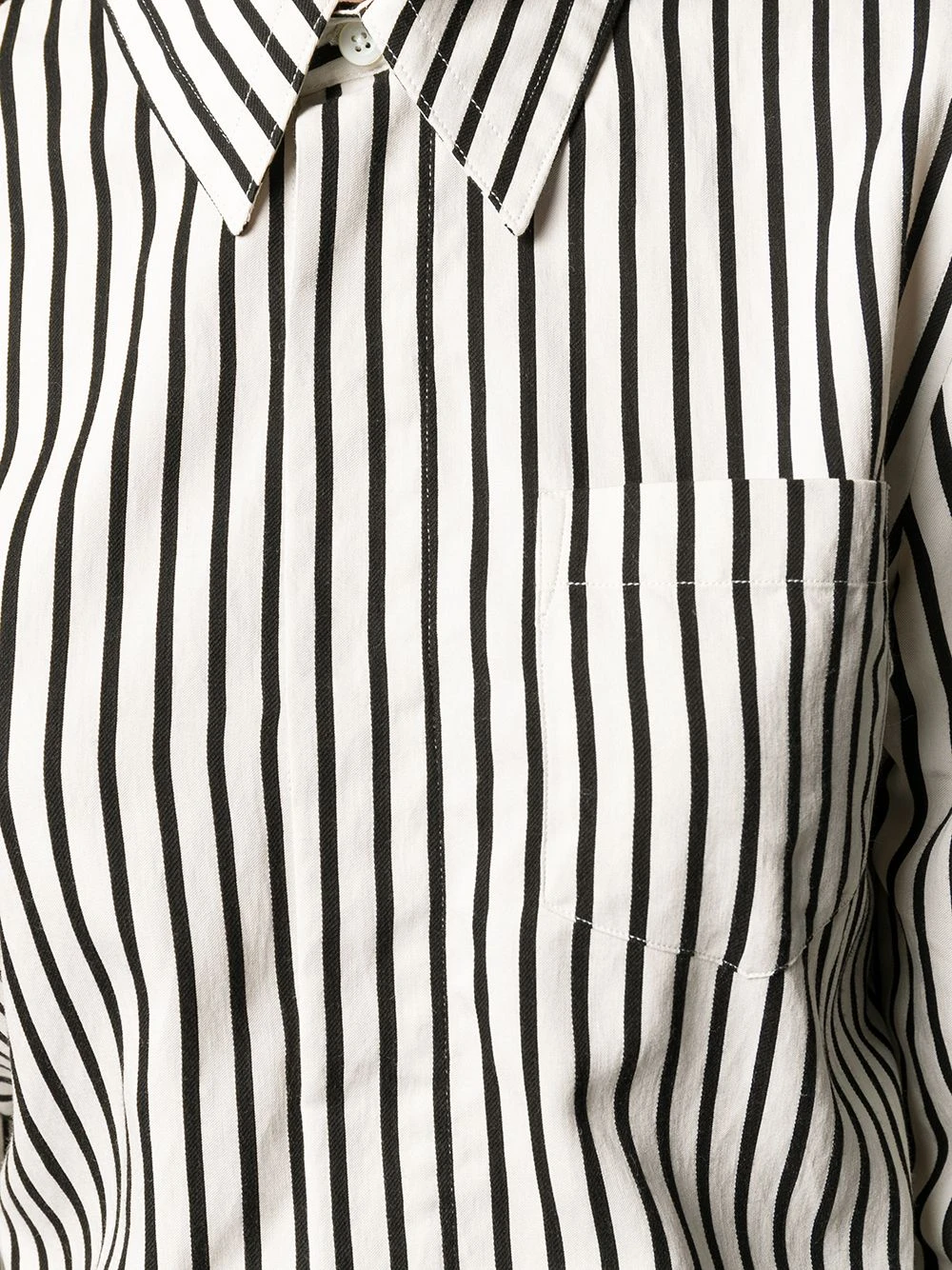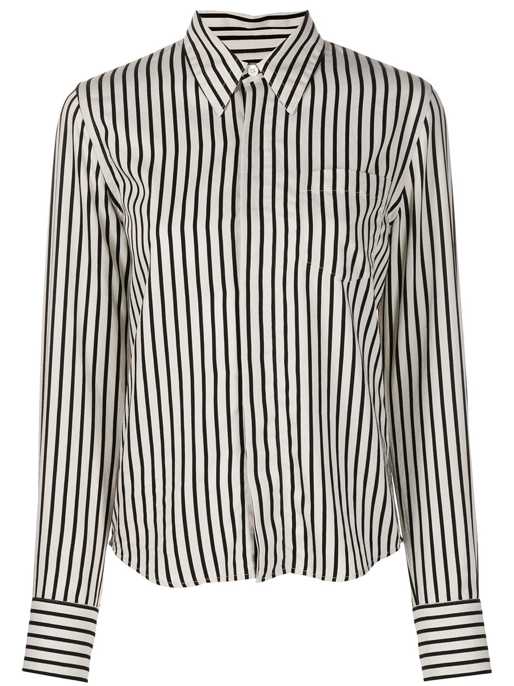 Chemise boutonnée à rayures AMI Paris avec col pointu, boutonnière sur le devant, manches longues, motif de rayures, ourlet incurvé et poignets boutonnés.