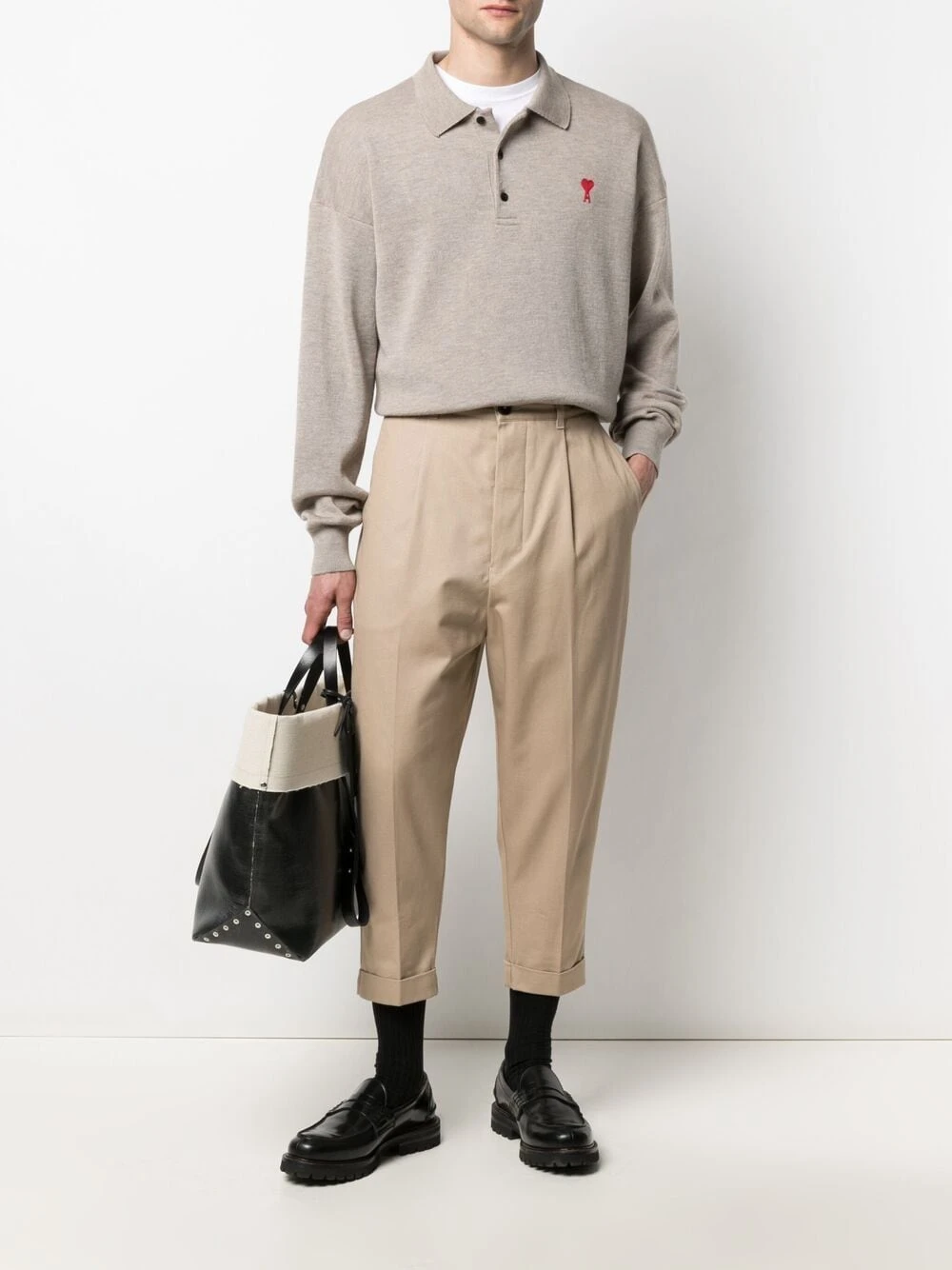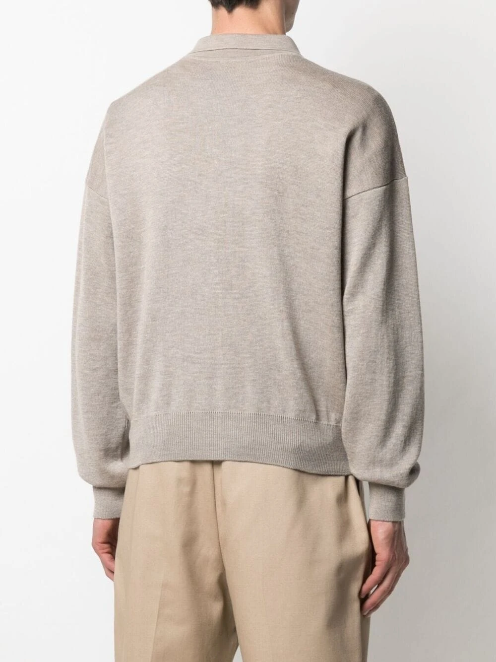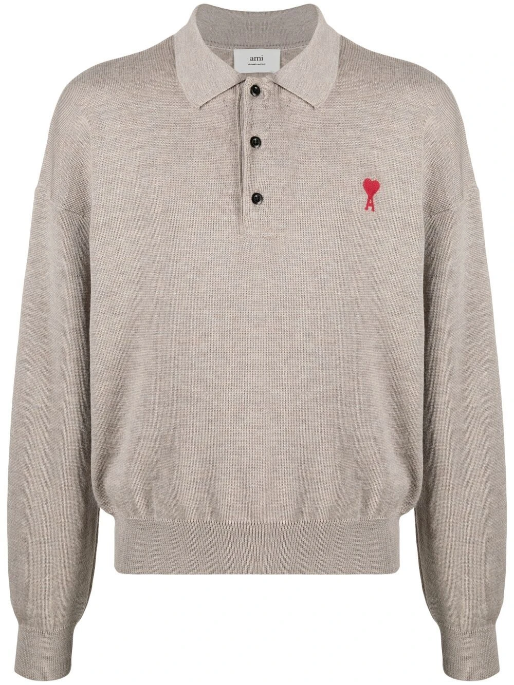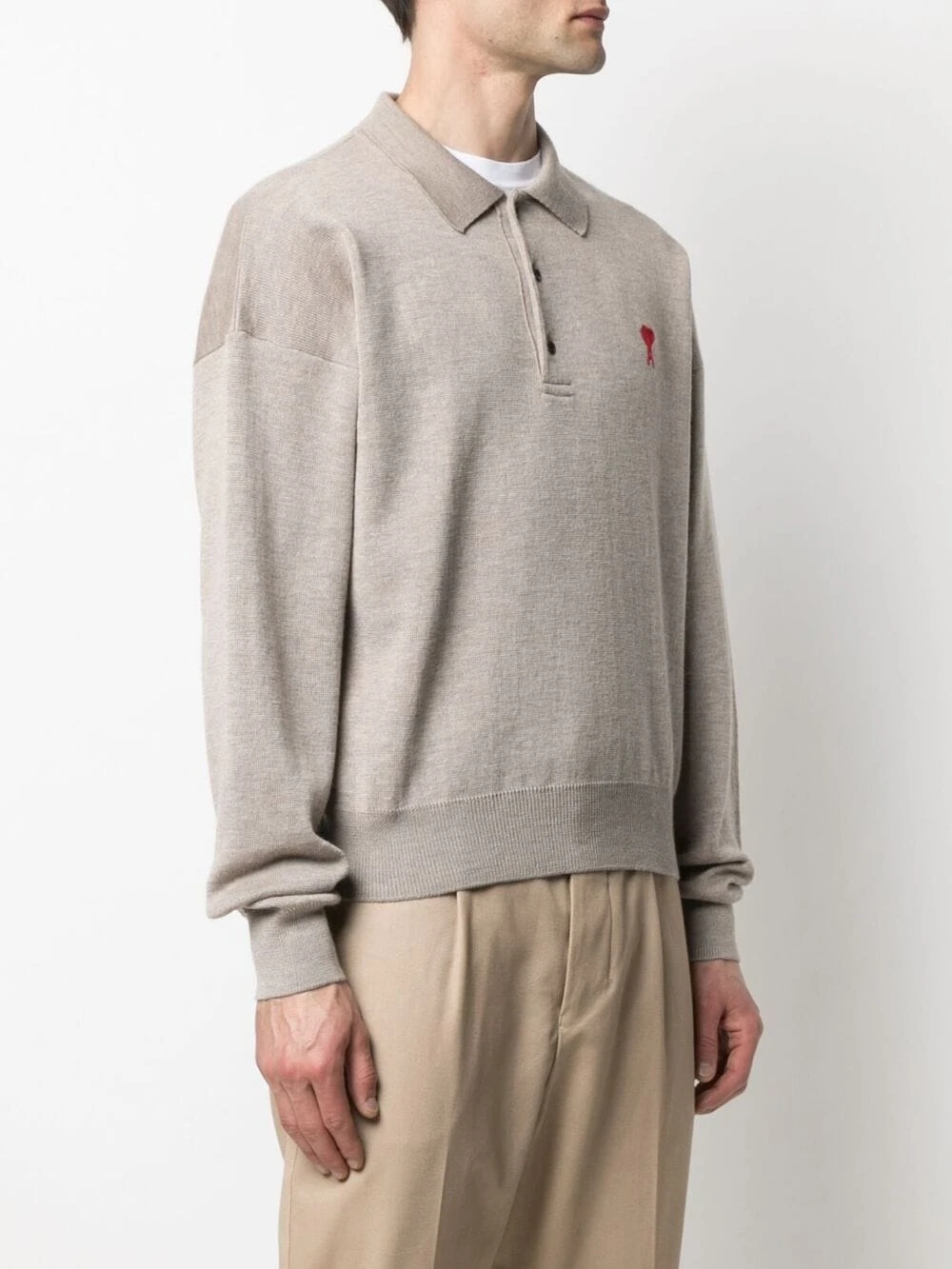 Logo Ami de Coeur signature, col polo, patte de boutonnage sur le devant, effet d’épaules descendues, manches longues. Matière : mérinos.