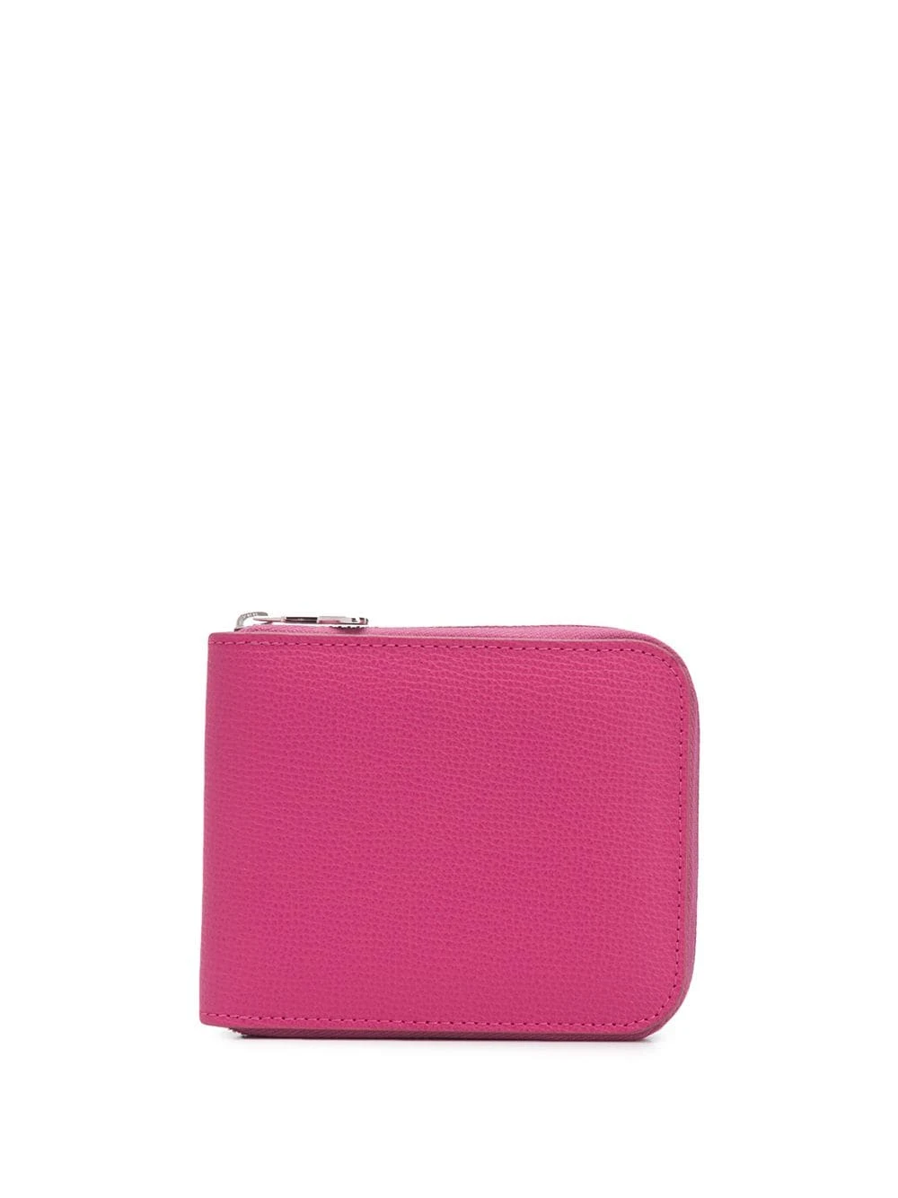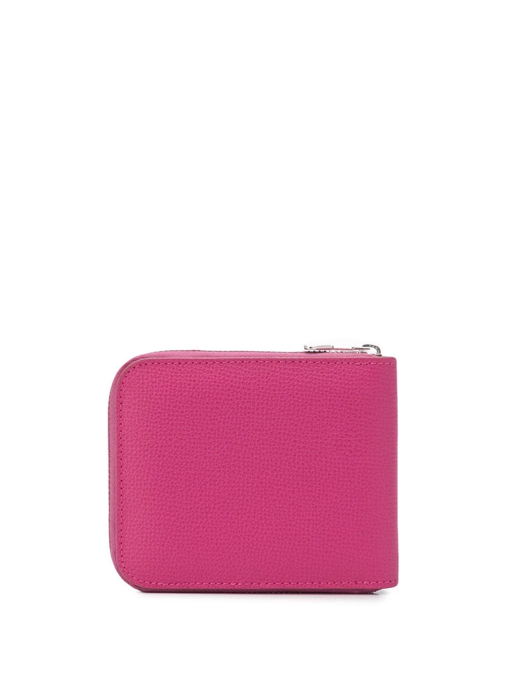 Ornements argentés, fermeture zippée, logo argenté, compartiments intérieurs pour carte. Couleur : rose. Matière : Cuir de veau.