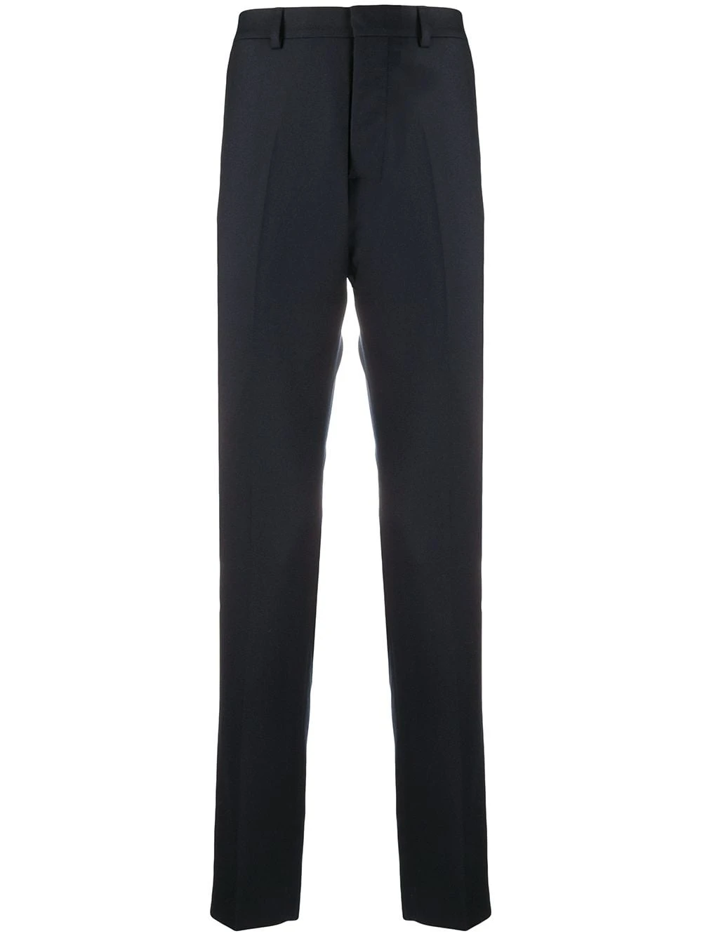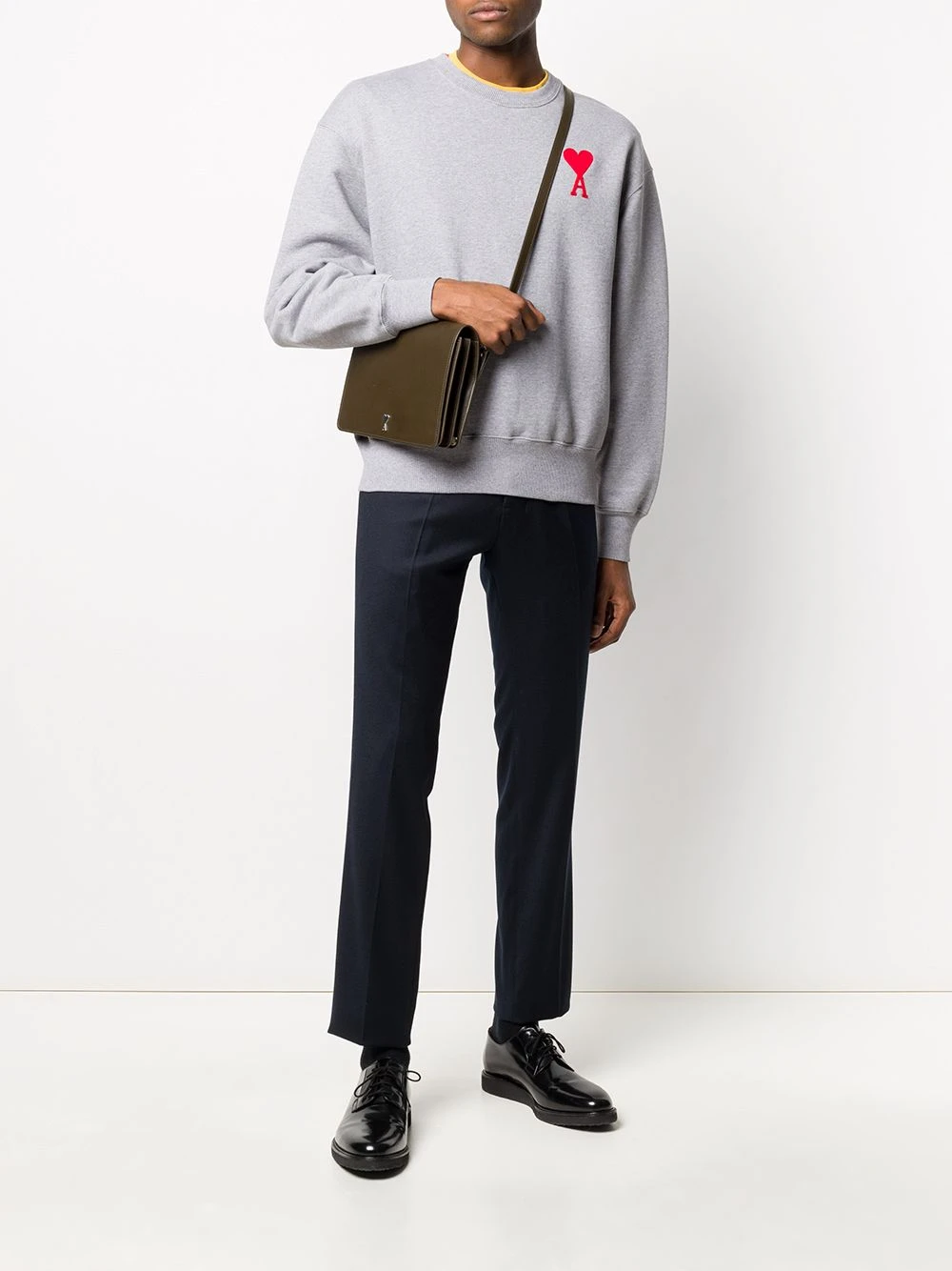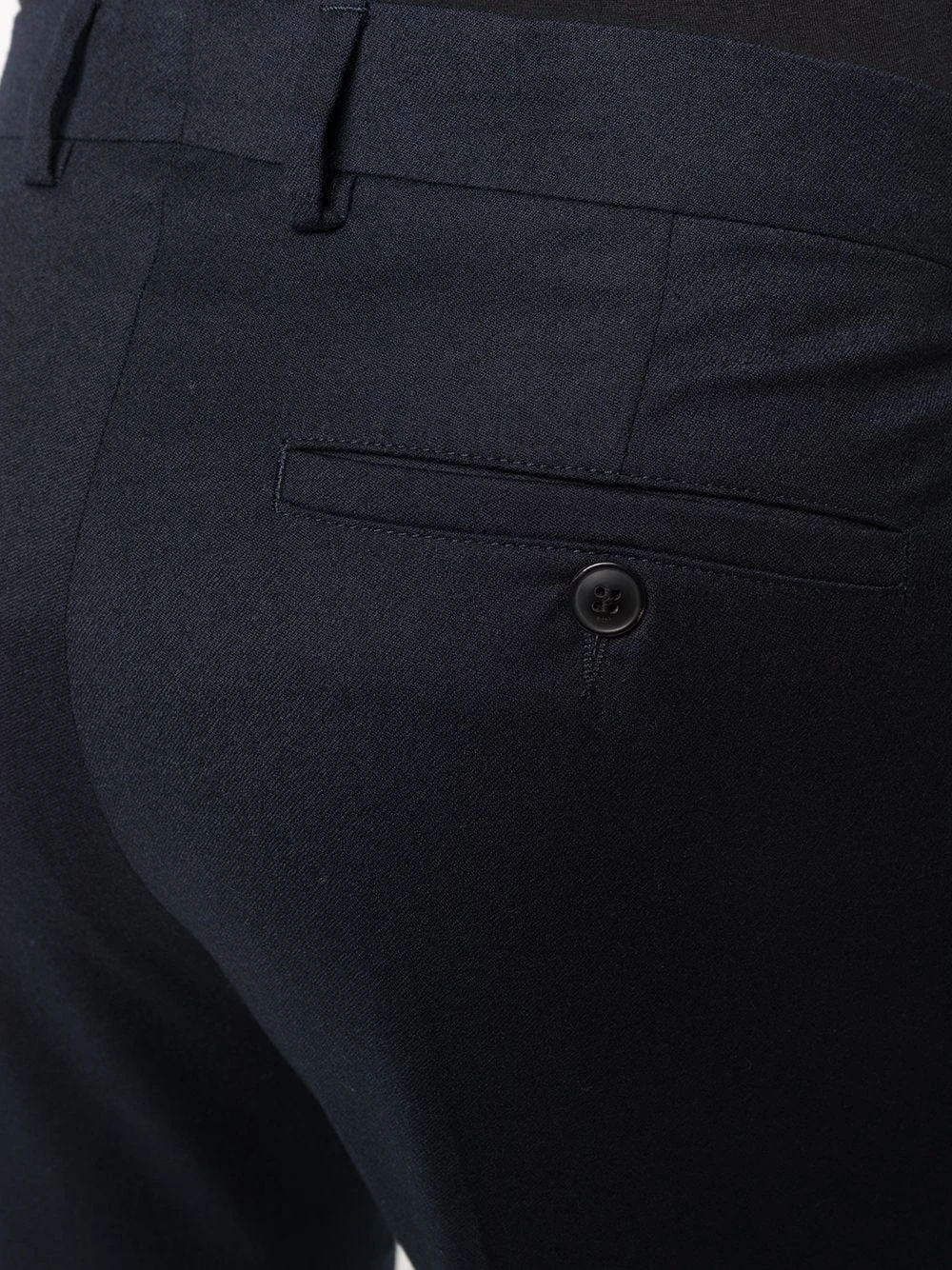 Pantalon slim crop en laine AMI Paris avec taille haute, passants de ceinture, fermeture sur le devant, deux poches arrière passepoilées et boutonnées, coupe slim et longueur crop.