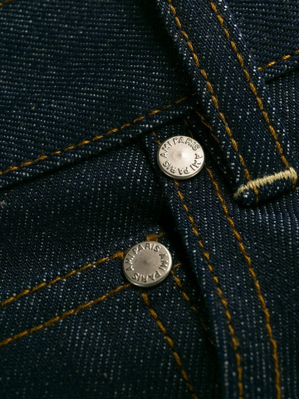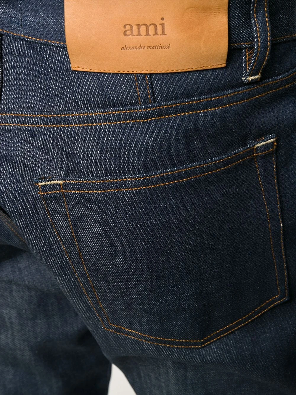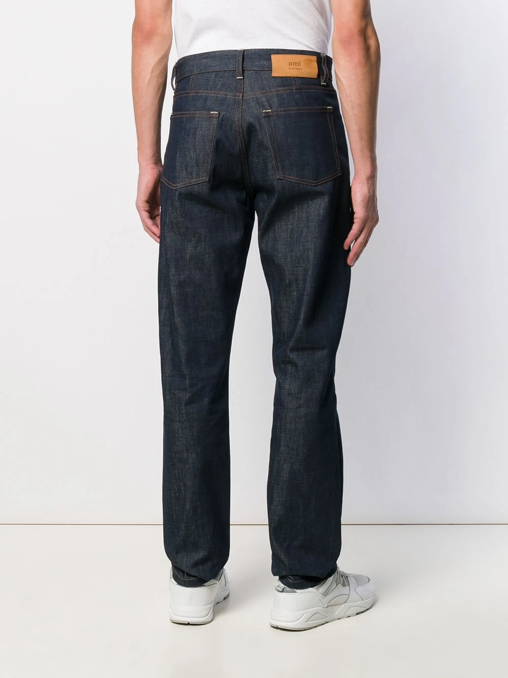 Jean à coupe droite en matériaux naturels (végétal)->coton AMI Paris avec passants de ceinture, coupe classique cinq poches et détails de surpiqûres.