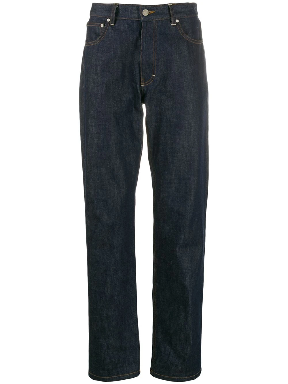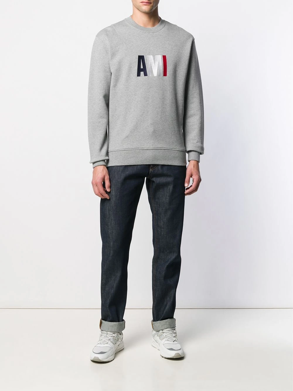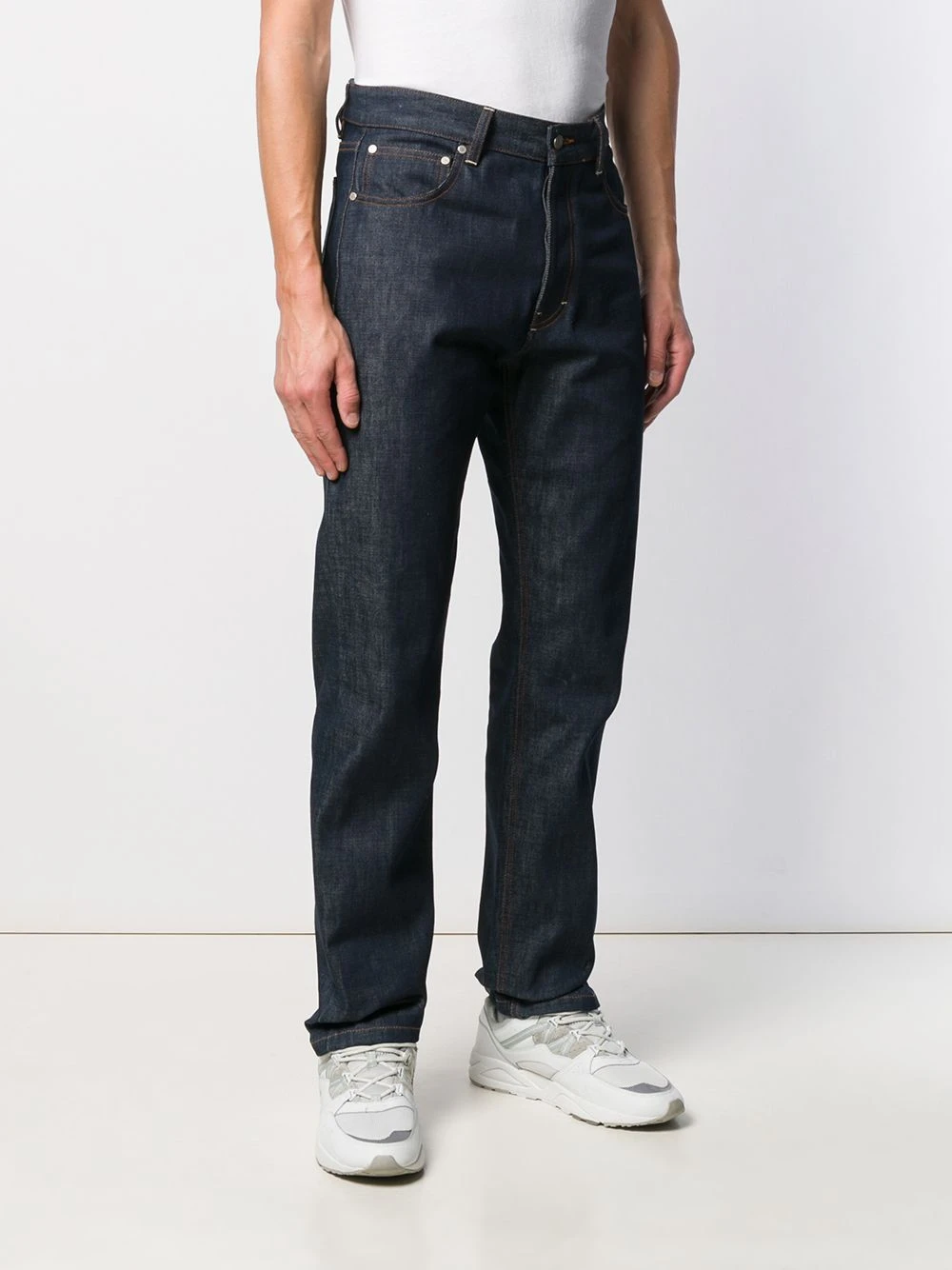 Jean à coupe droite en matériaux naturels (végétal)->coton AMI Paris avec passants de ceinture, coupe classique cinq poches et détails de surpiqûres.