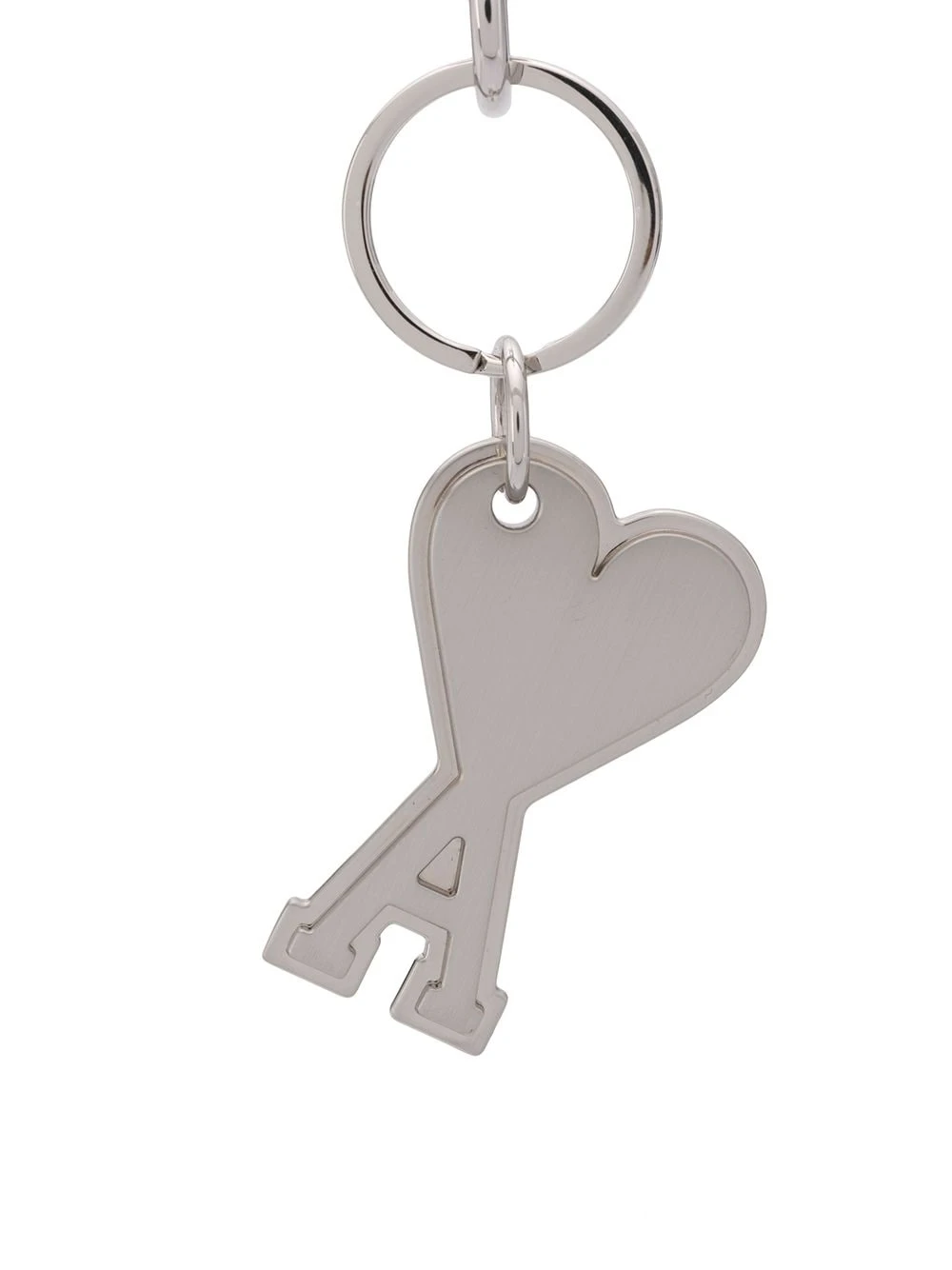 Porte-clés à breloque cœur AMI Paris avec finitions argentées et fermeture cliquet.
