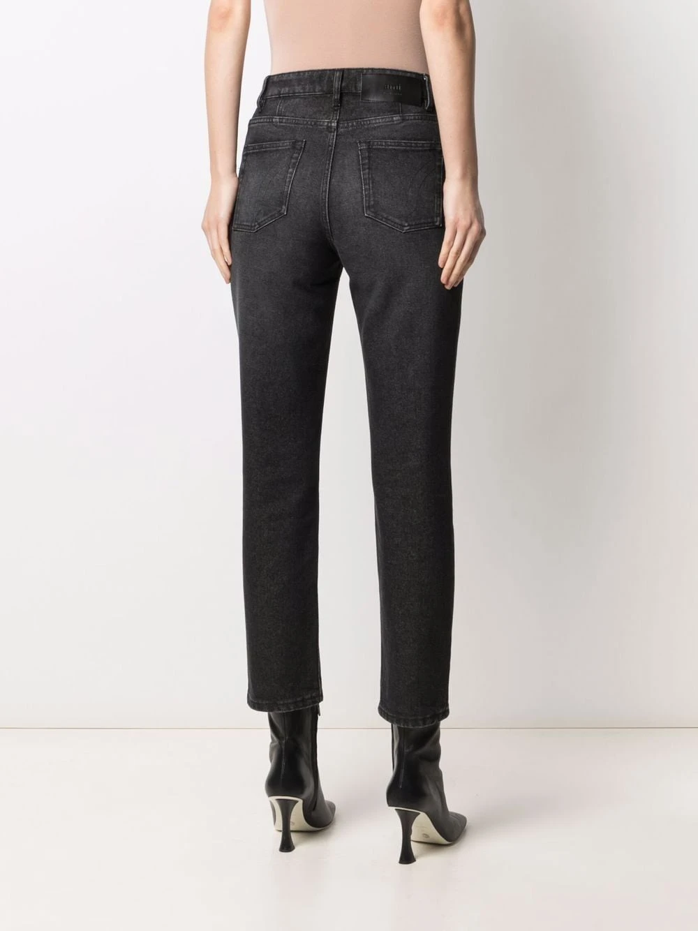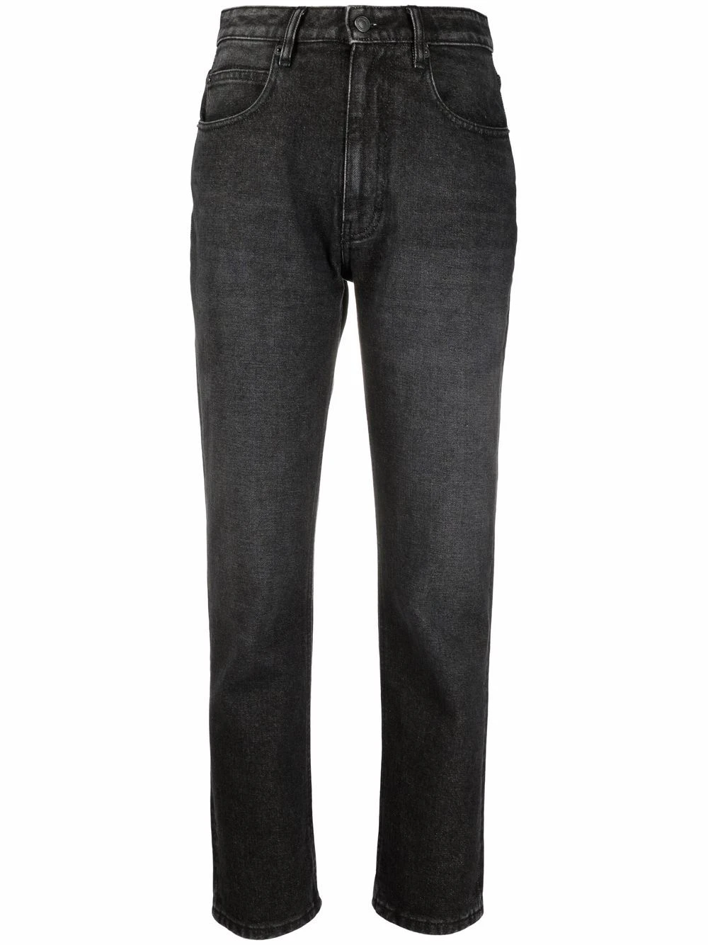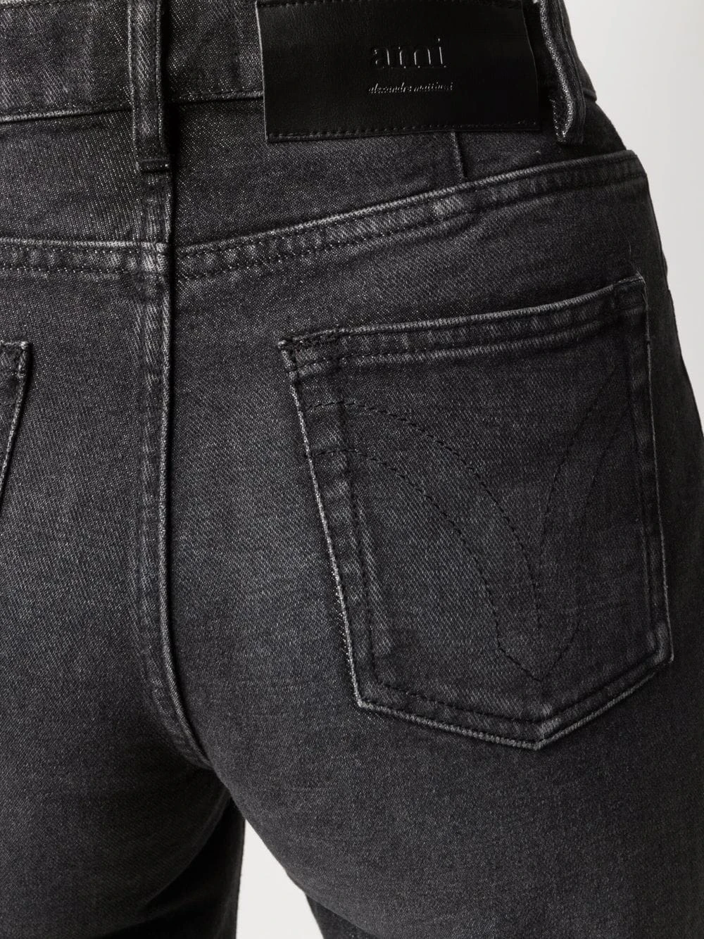 Taille haute, cinq poches classiques, fermeture à zip et boutons sur le devant, passants de ceinture, patch logo sur l’arrière, coupe droite, longueur crop. Couleur : noir. Matière : coton.