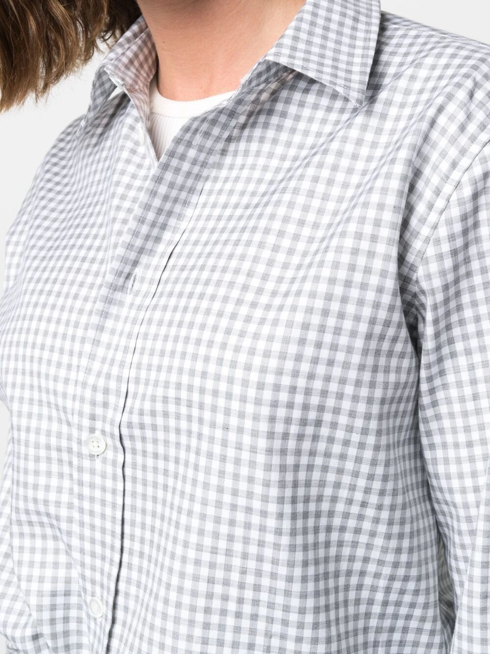 Col classique, boutonnière sur le devant, imprimé à carreaux, ourlet incurvé. Matière : coton.