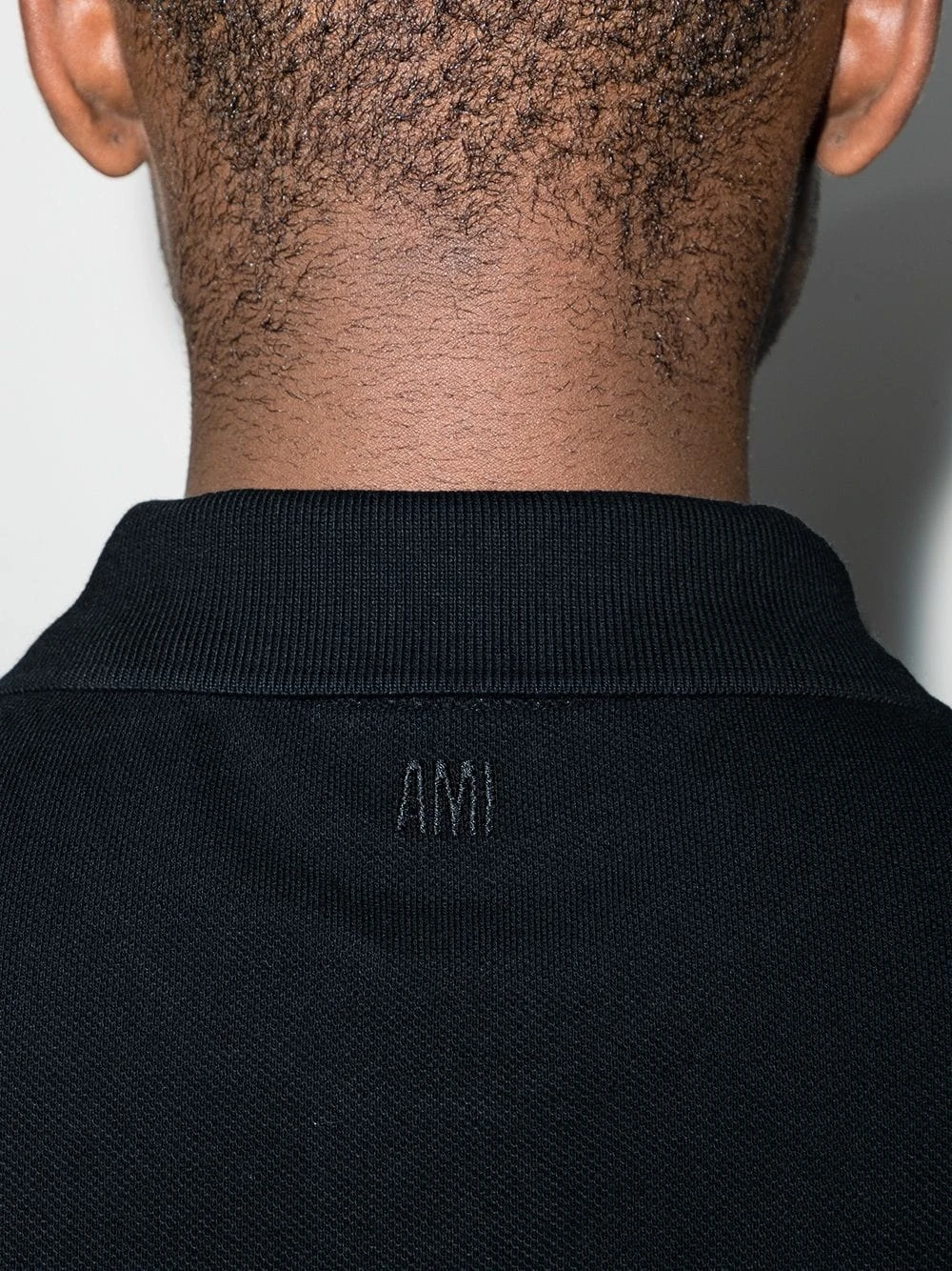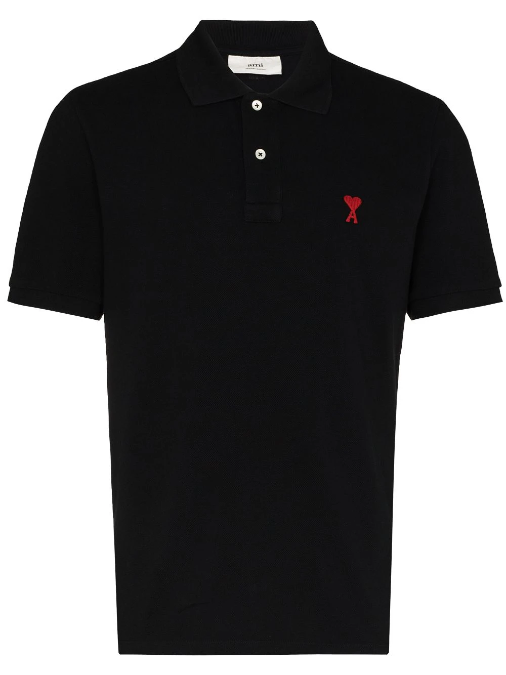 Col polo, logo Ami de Coeur signature, patte de boutonnage sur le devant, manches roulottées courtes, manches courtes, ourlet droit. Couleur : noir. Matière : coton.