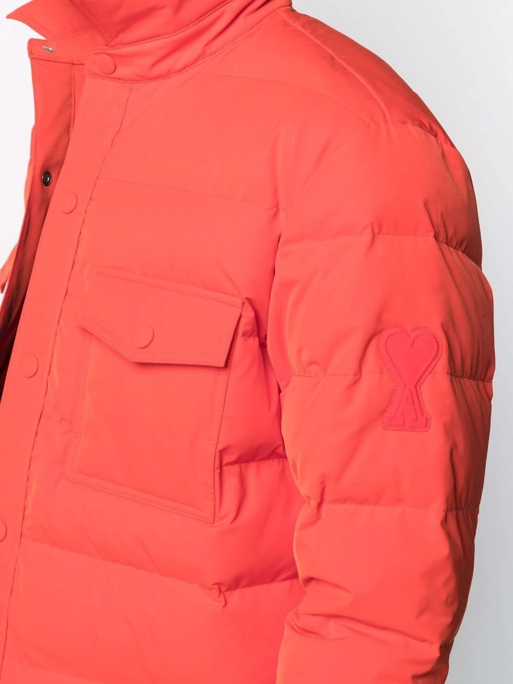 Design matelassé, design matelassé, col classique, logo Ami de Coeur signature, fermeture à boutons pression, deux poches poitrine à rabat, manches longues, ourlet droit.