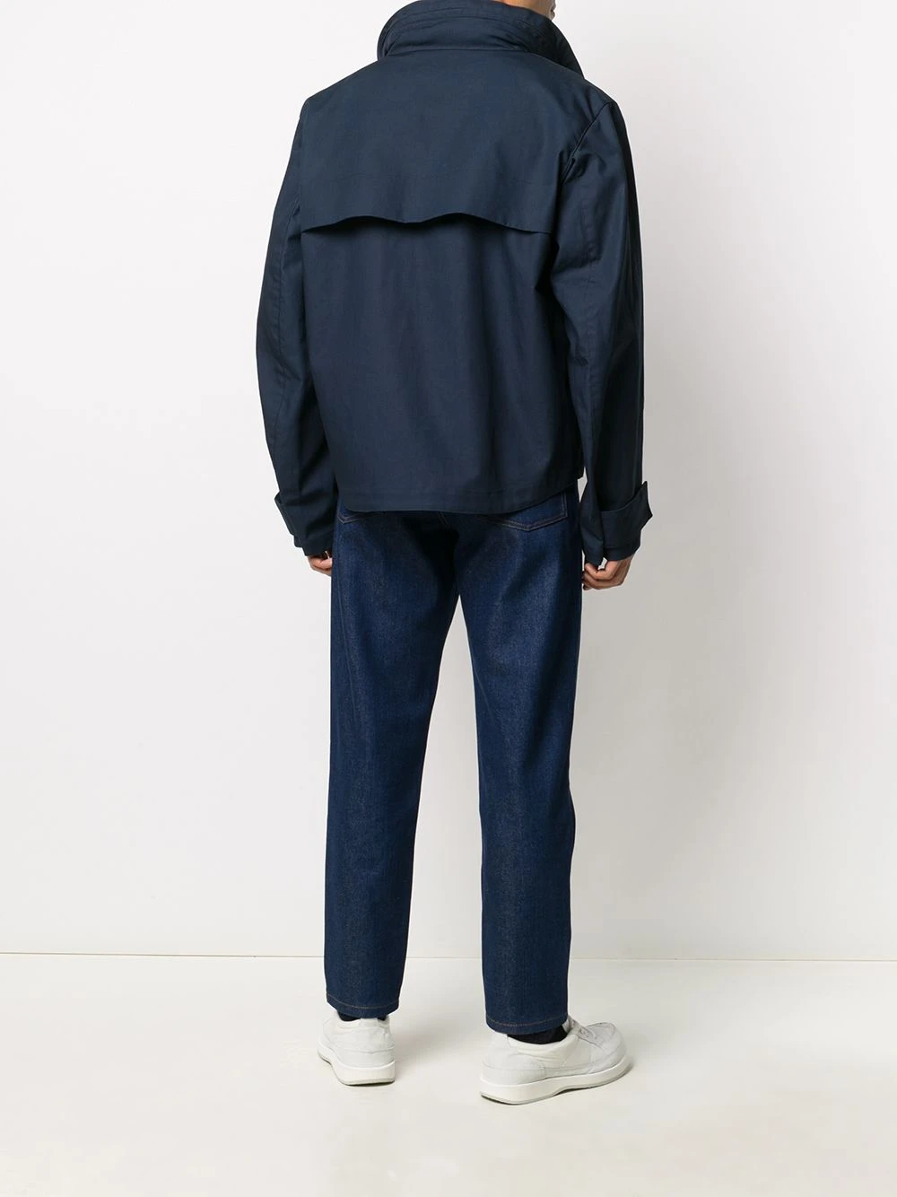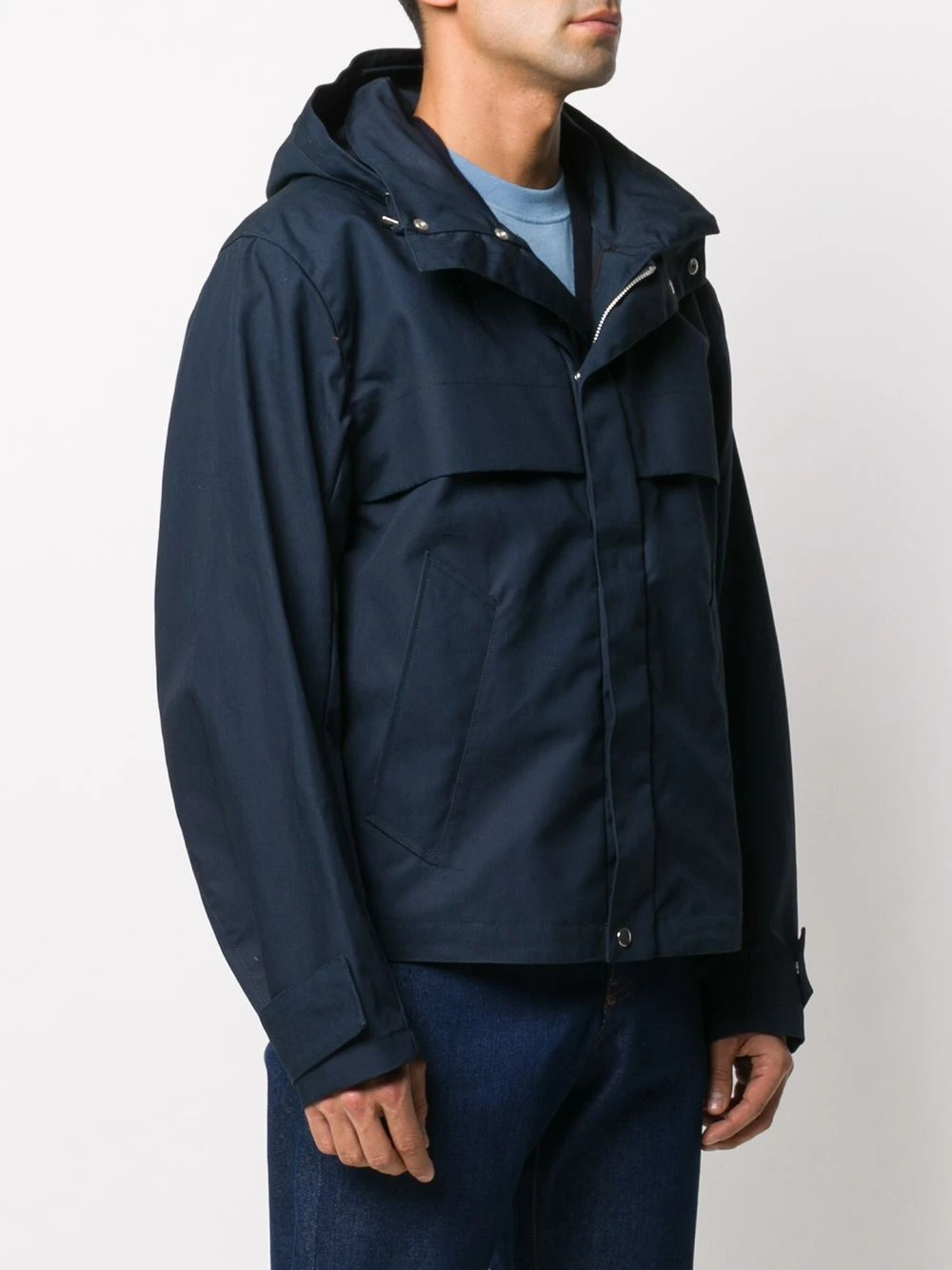 Capuche détachable, fermeture à zip et boutons sur le devant, poignets boutonnés, rabat tempête. Couleur : bleu.