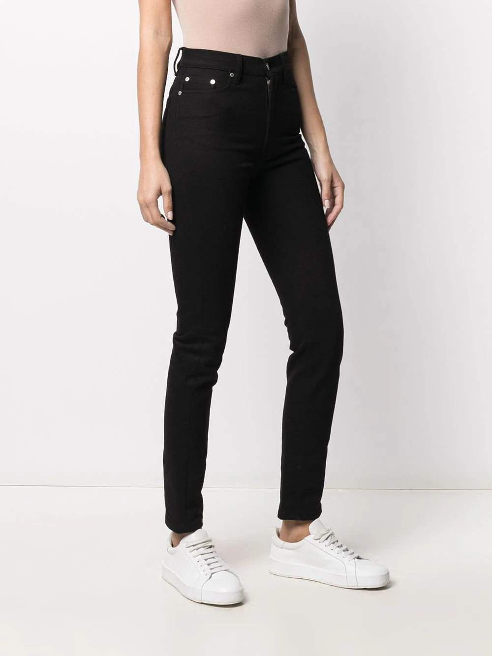 Patch logo sur l’arrière, taille haute, passants de ceinture, fermeture à zip et boutons sur le devant, 5 poches classiques, coupe ajustée. Couleur : noir. Matière : coton.