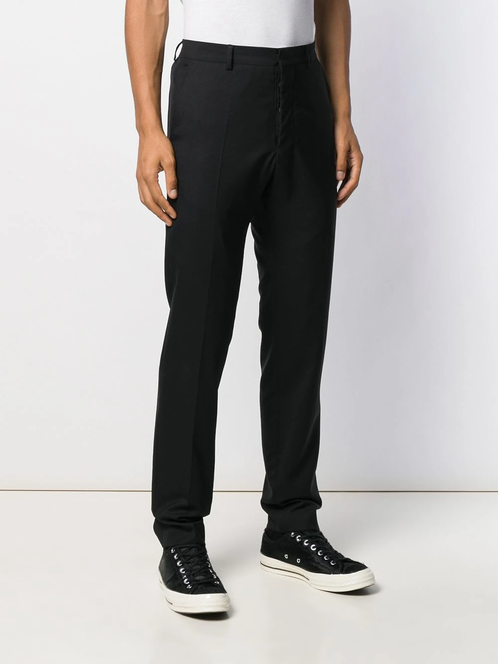 Pantalon droit à taille haute AMI Alexandre Mattiussi avec passants de ceinture, deux poches arrière passepoilées et boutonnées et pinces.