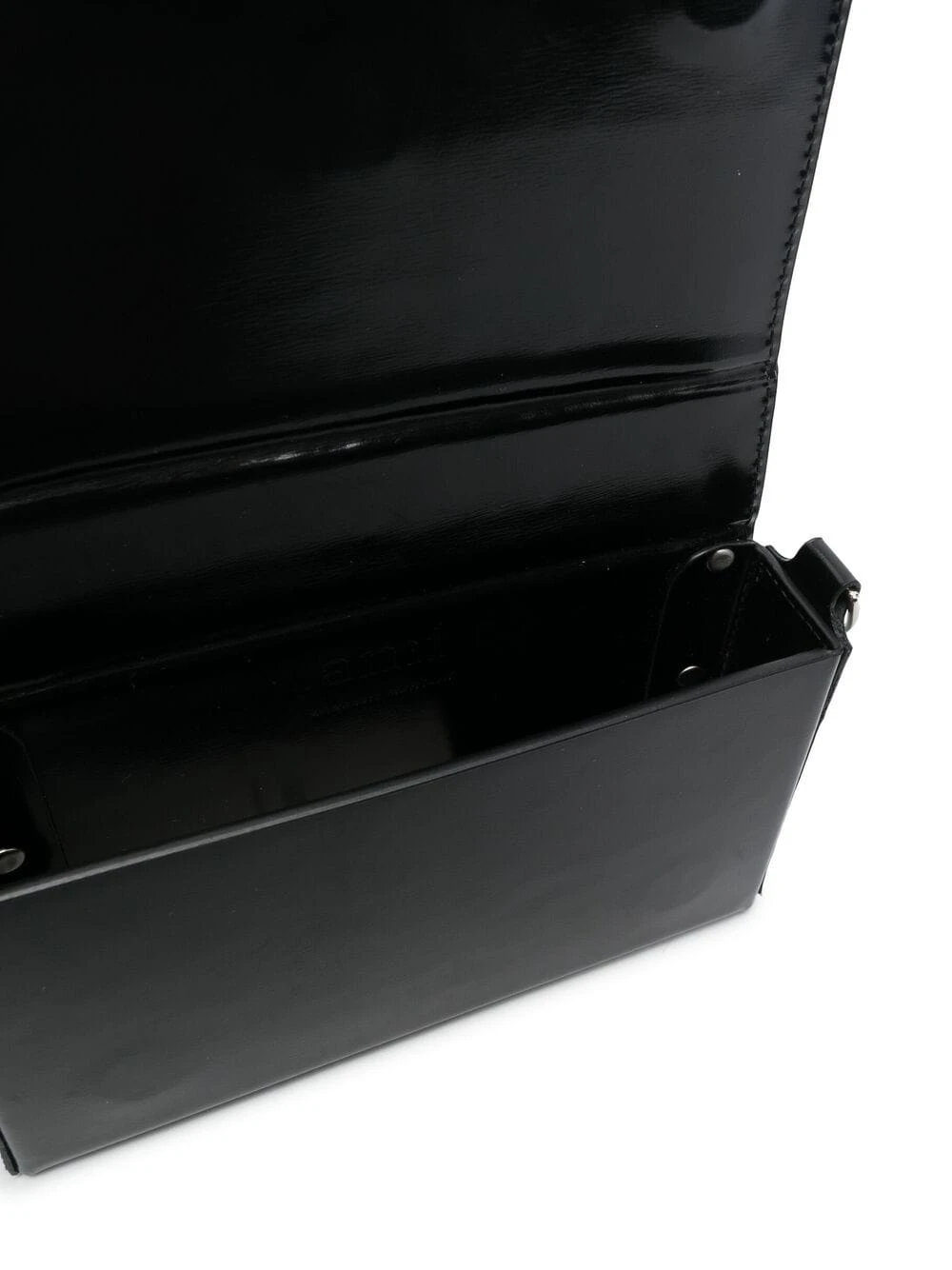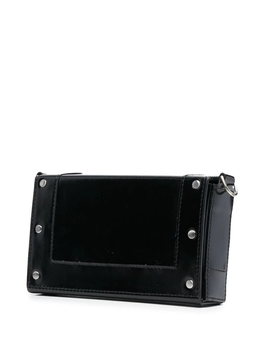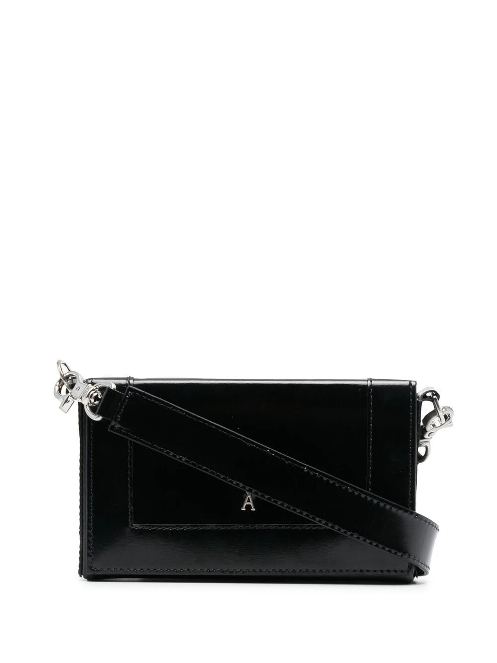 Logo Ami de Coeur signature, détails de clous argentés, rabat sur le dessus à fermeture magnétique, bracelet amovible, compartiment principal. Couleur : noir.
