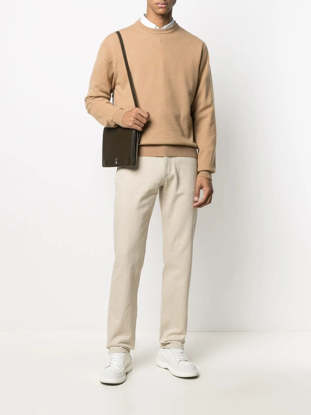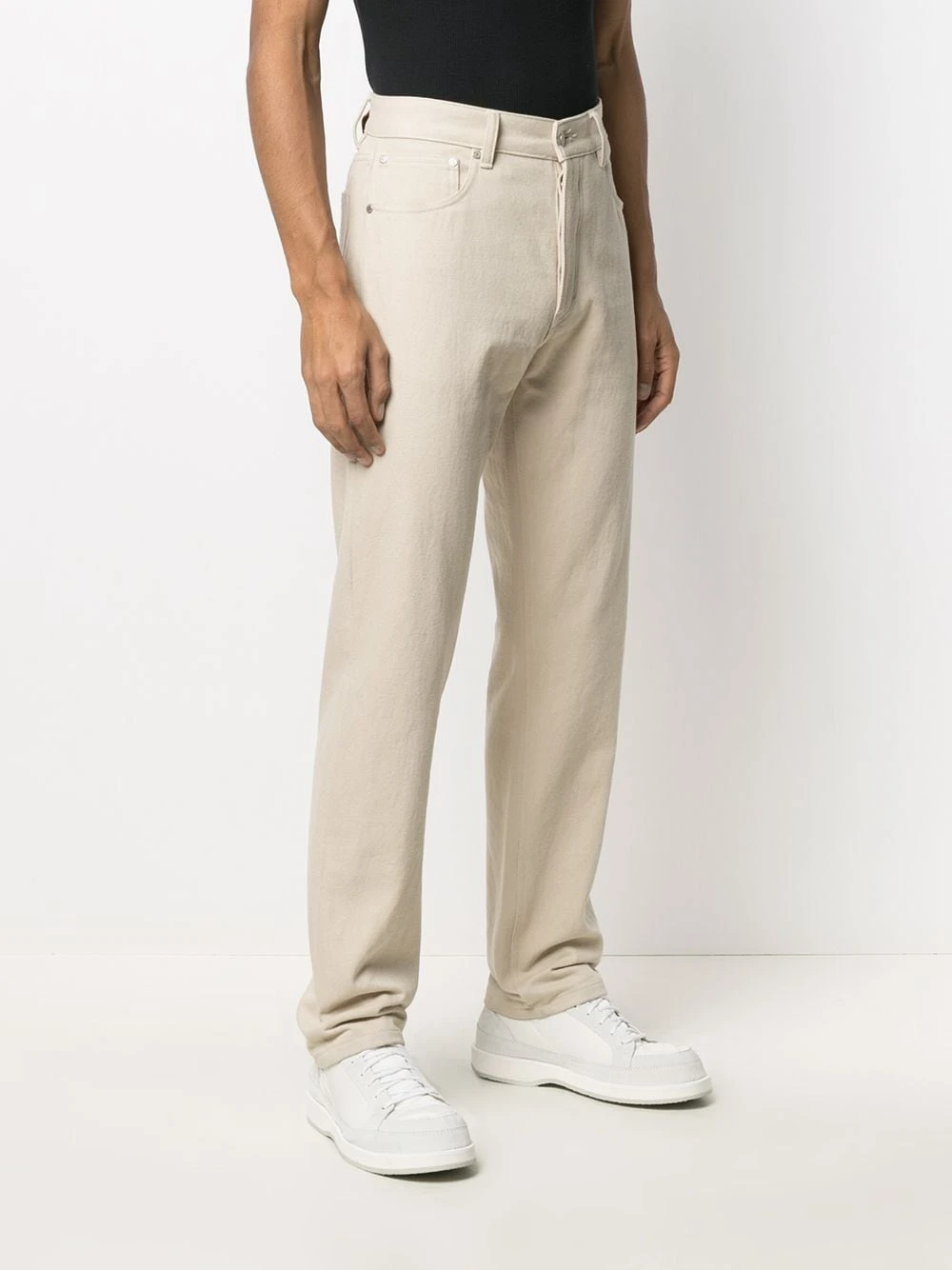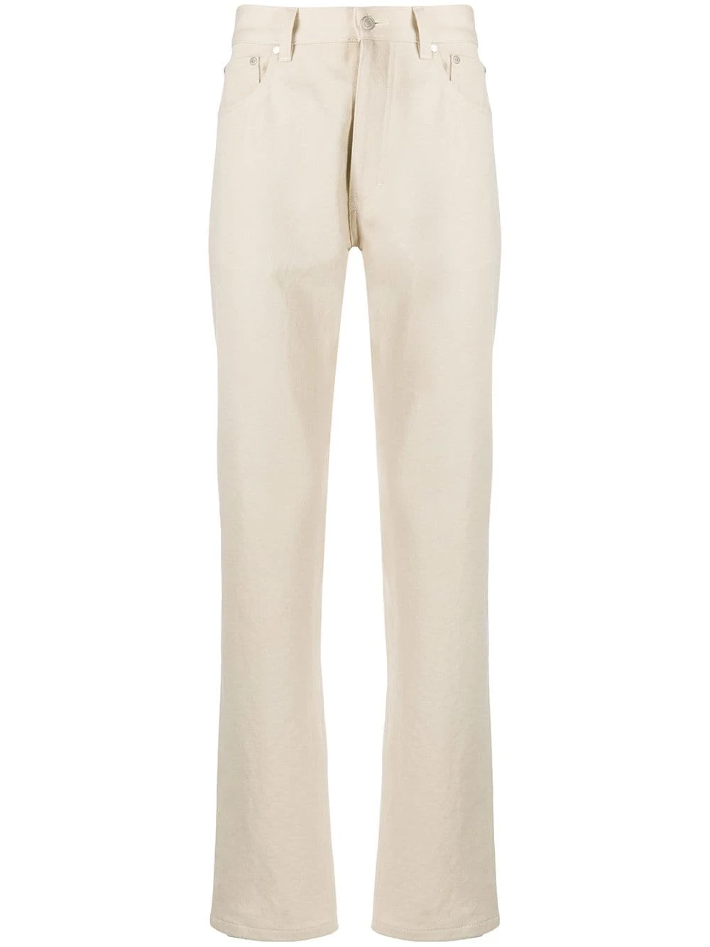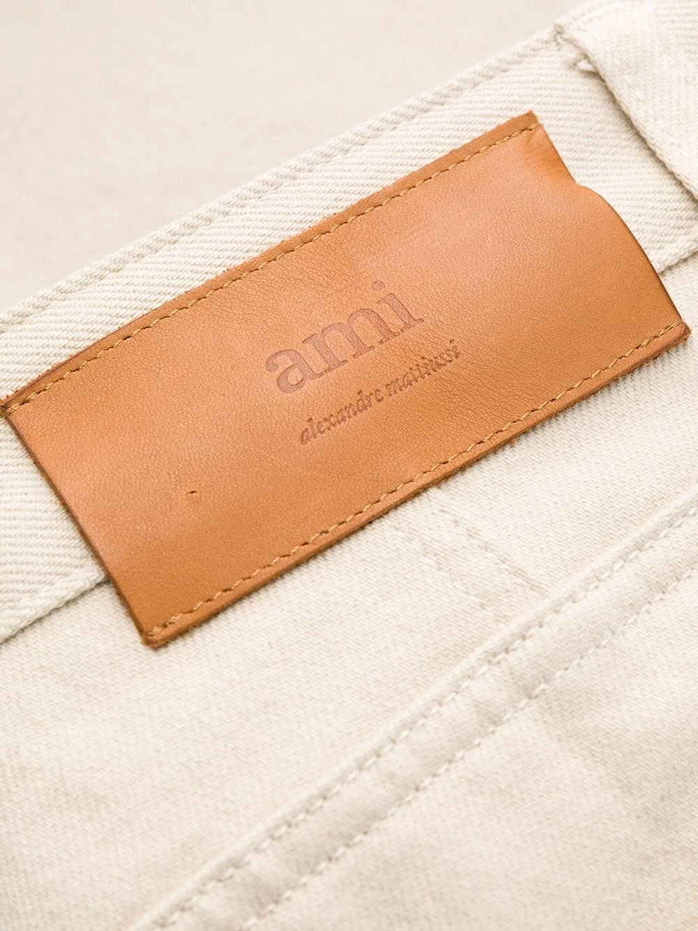 Patch logo sur l’arrière, coupe droite, fermeture à zip et boutons sur le devant, 5 poches classiques. Matière : coton.