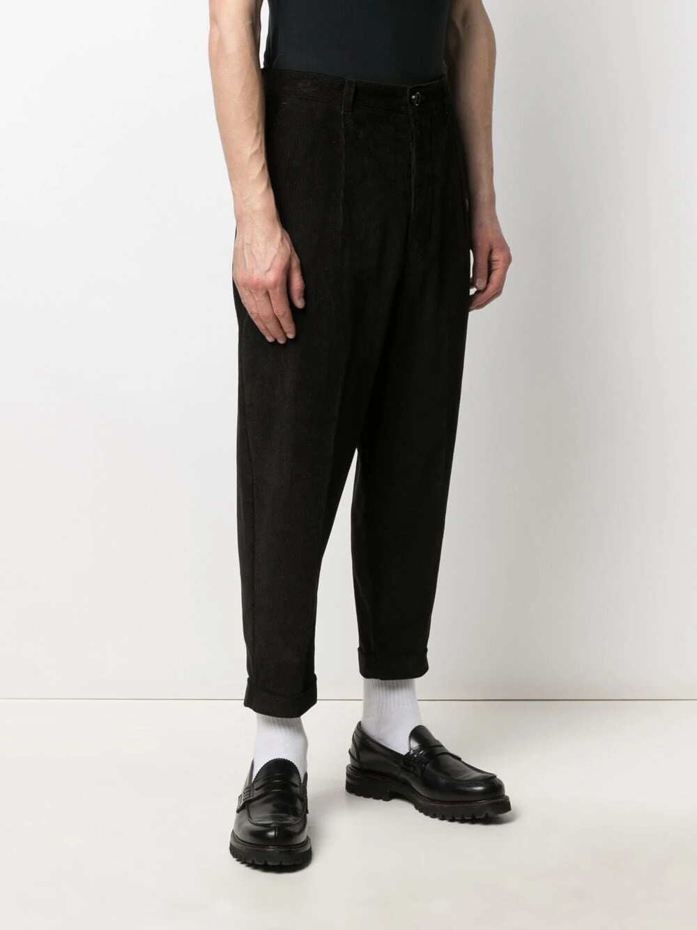 Logo brodé, fermeture à zip et boutons sur le devant, passants de ceinture, longueur crop, poches arrière à rabat. Couleur : marron. Matière : coton.
