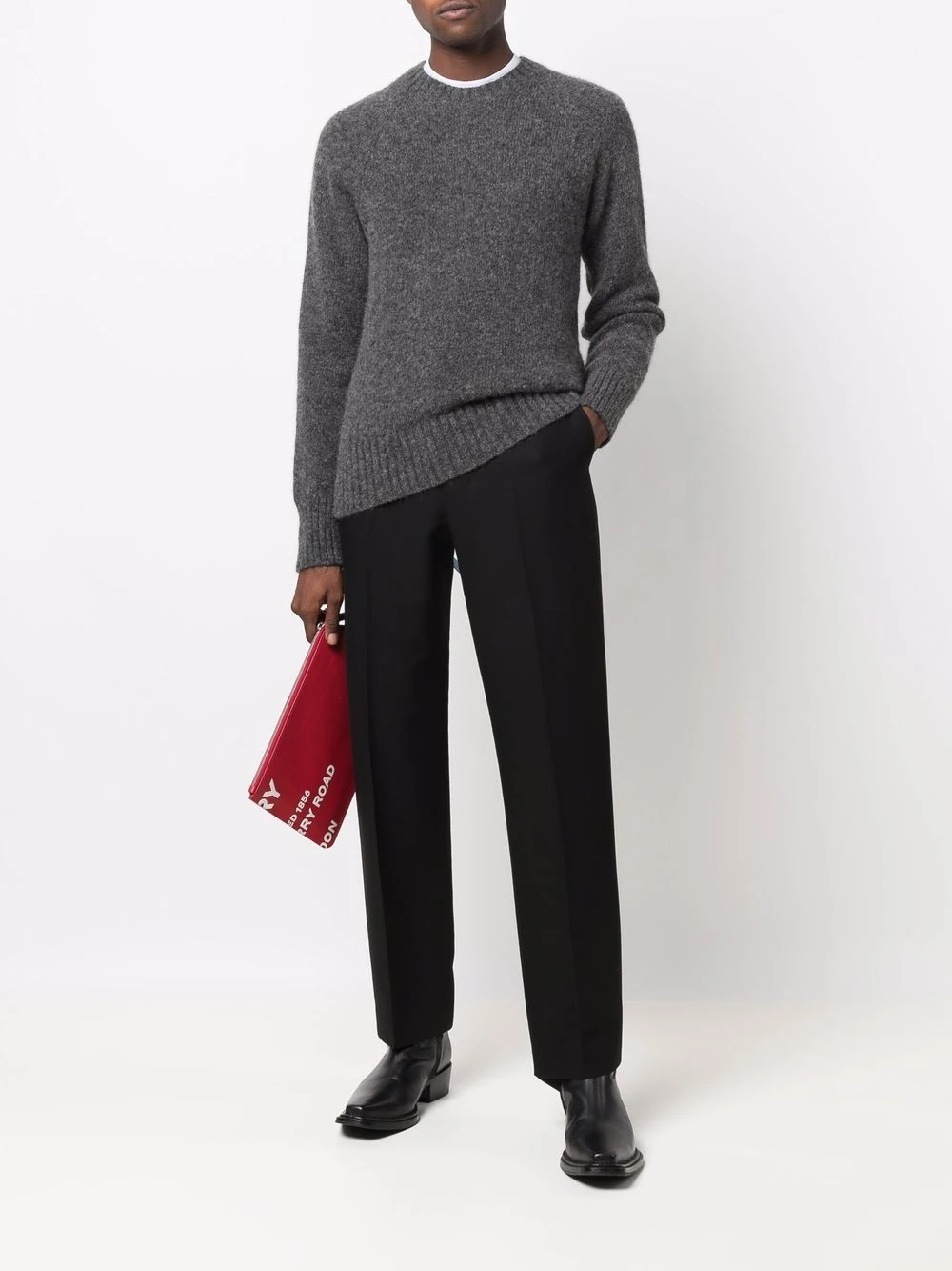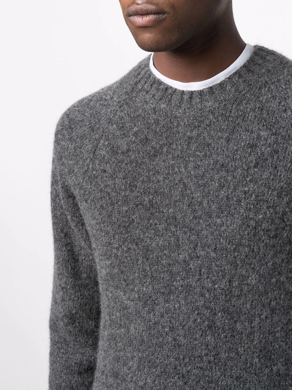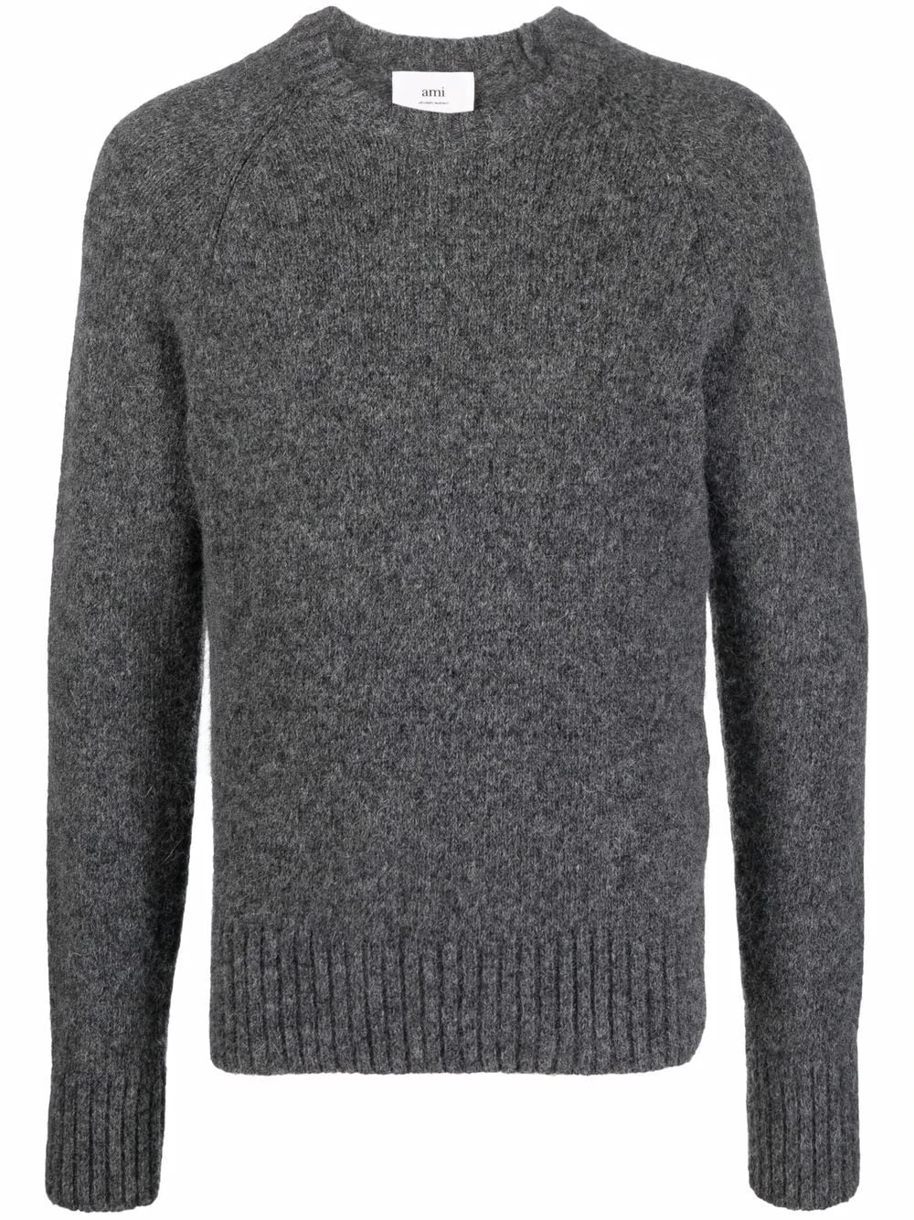 Design en maille, effet chiné, finitions nervurées, encolure ras du cou, manches longues.