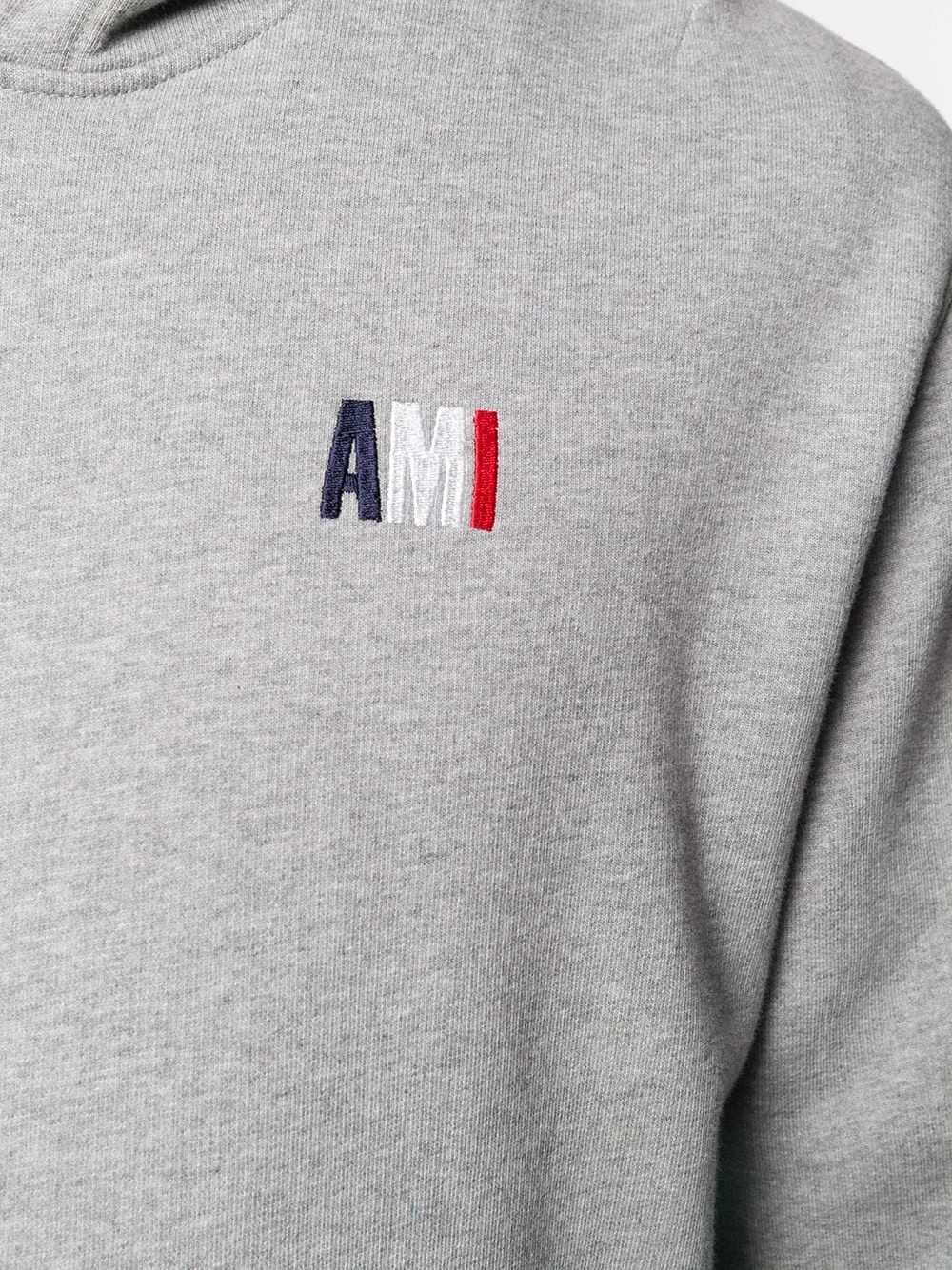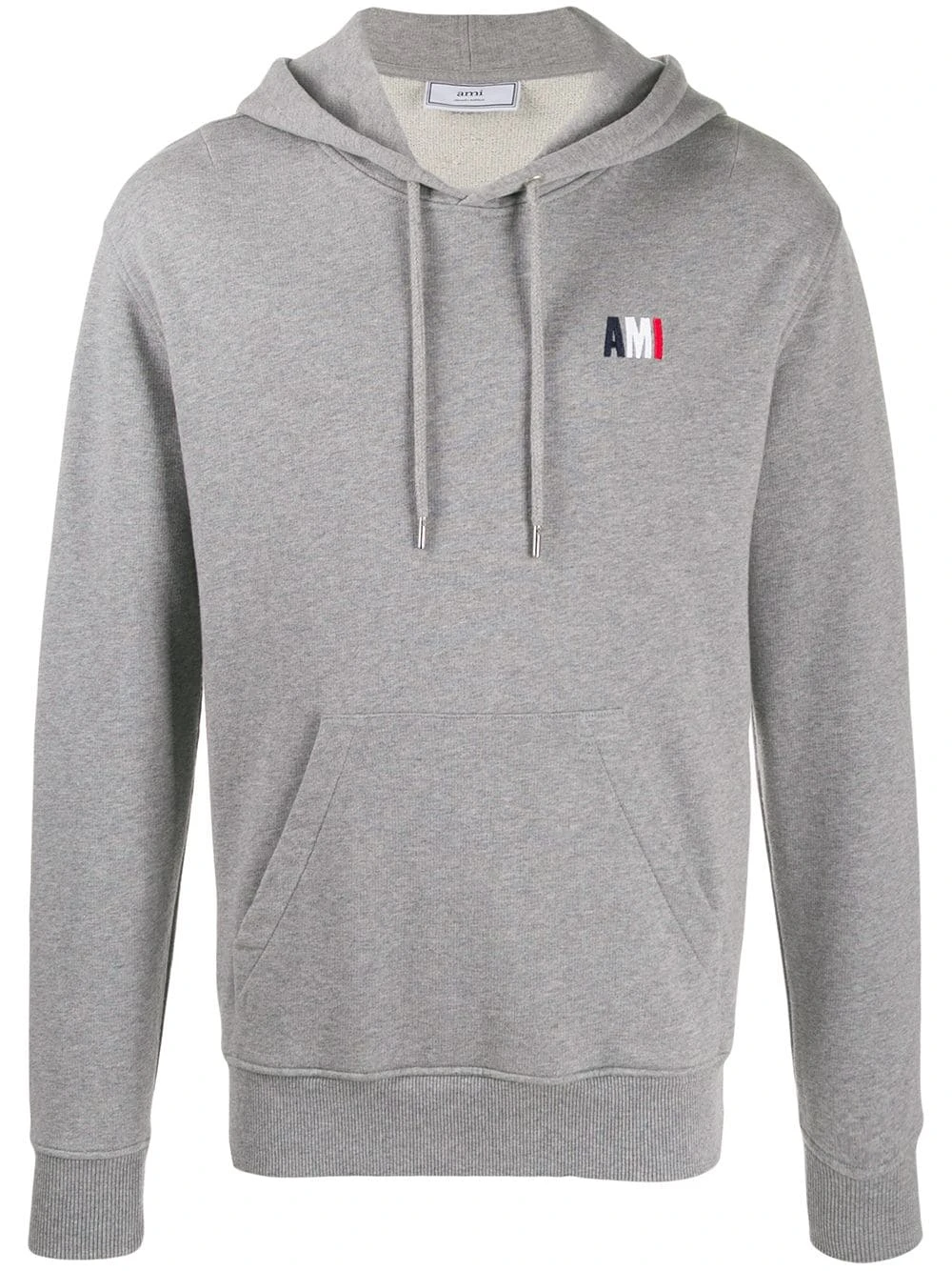 Sweat à capuche à logo en matériaux naturels (végétal)->coton AMI Paris avec logo poitrine, ourlet et poignets nervurés et capuche à lien de resserrage.