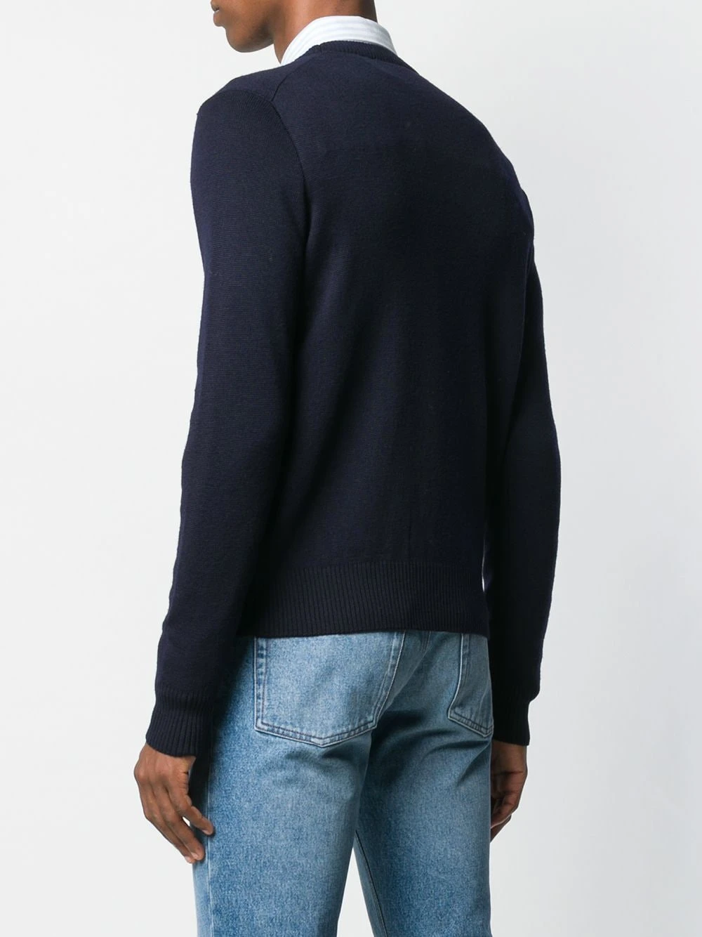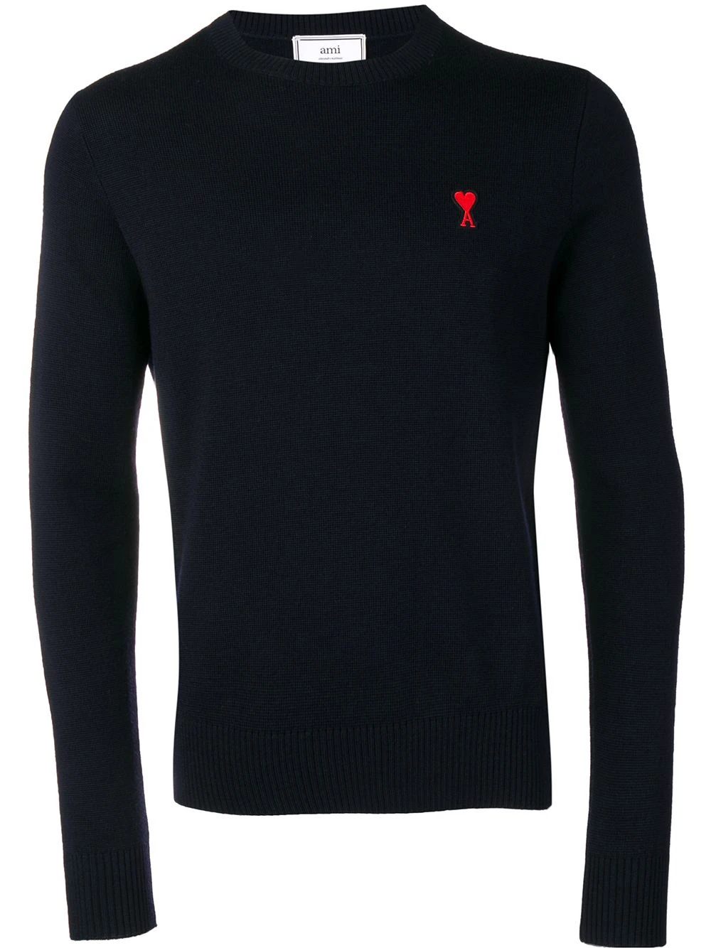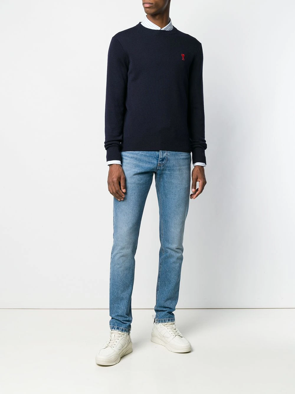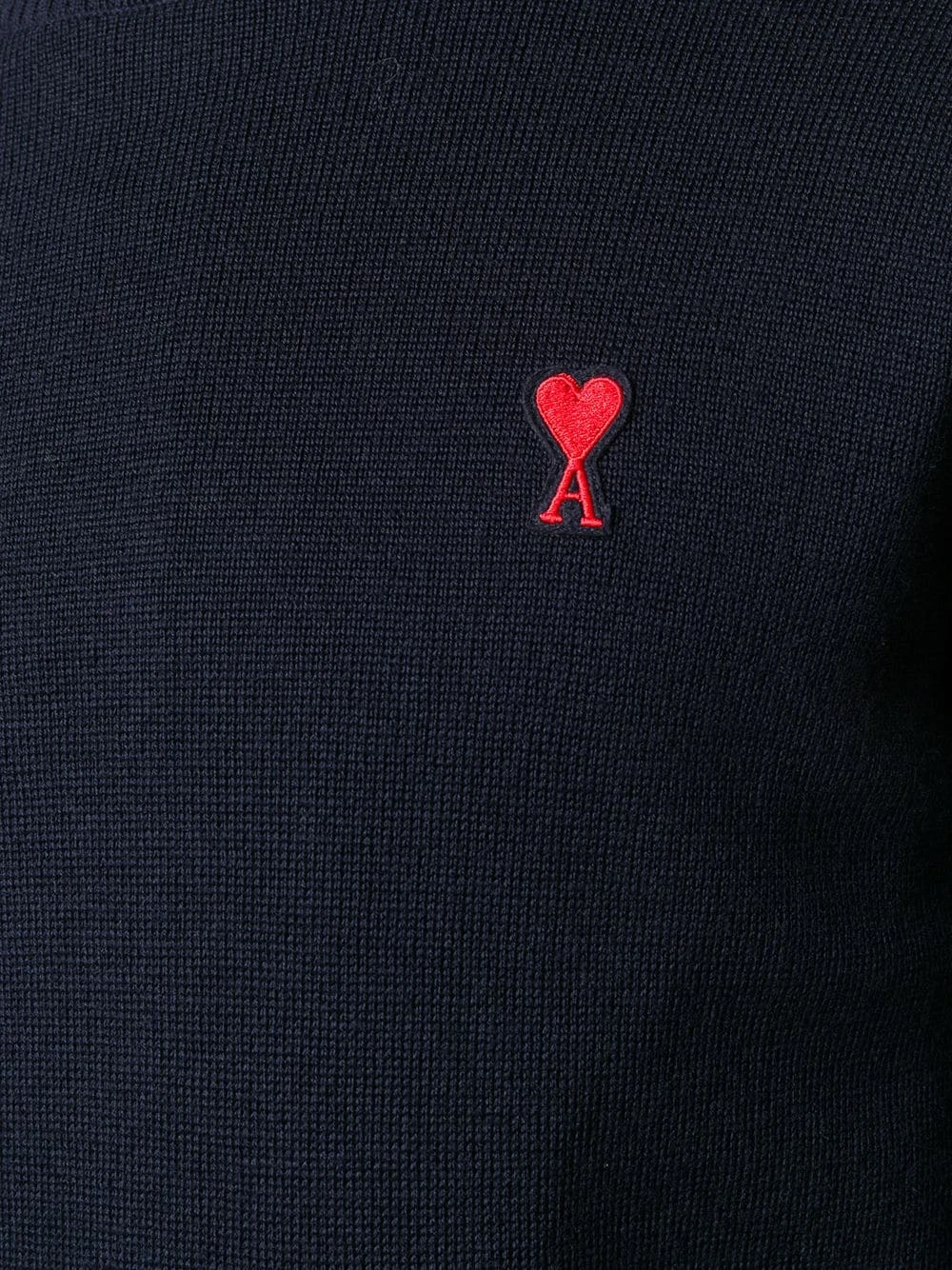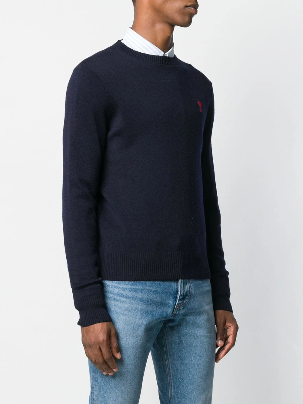 Pull à patch logo en mérino AMI Alexandre Mattiussi avec coupe slim, encolure ras du cou nervurée, ourlet et poignets nervurés et patch logo sur le devant.